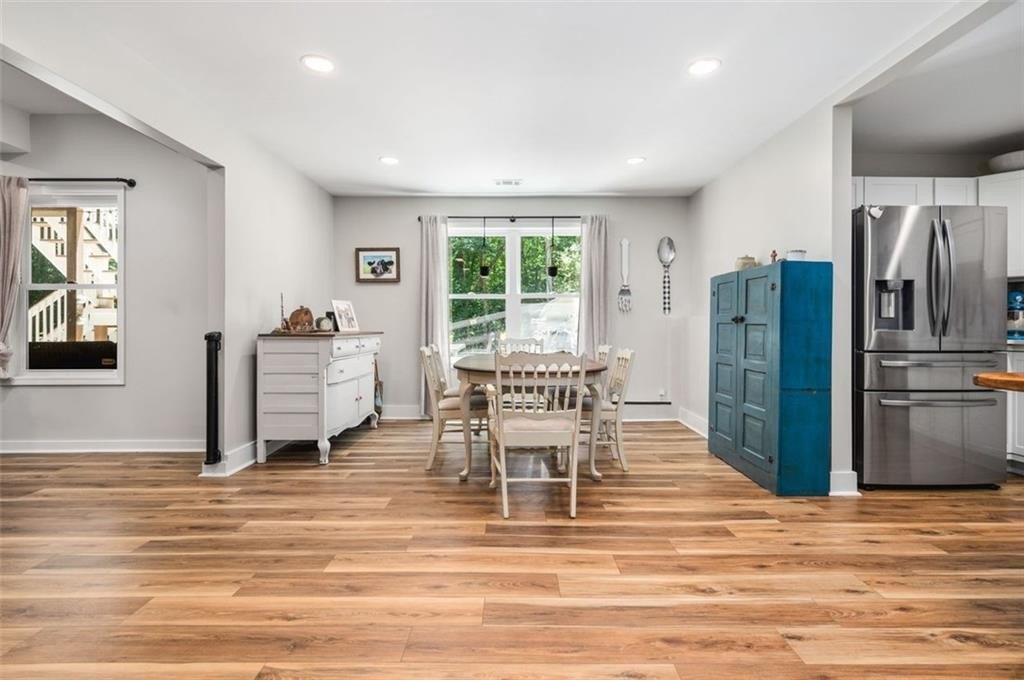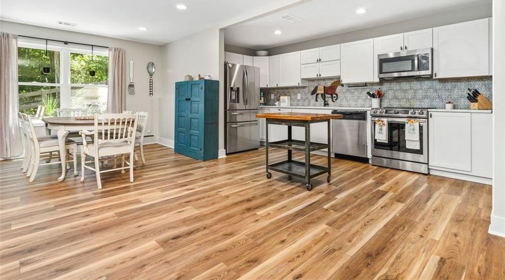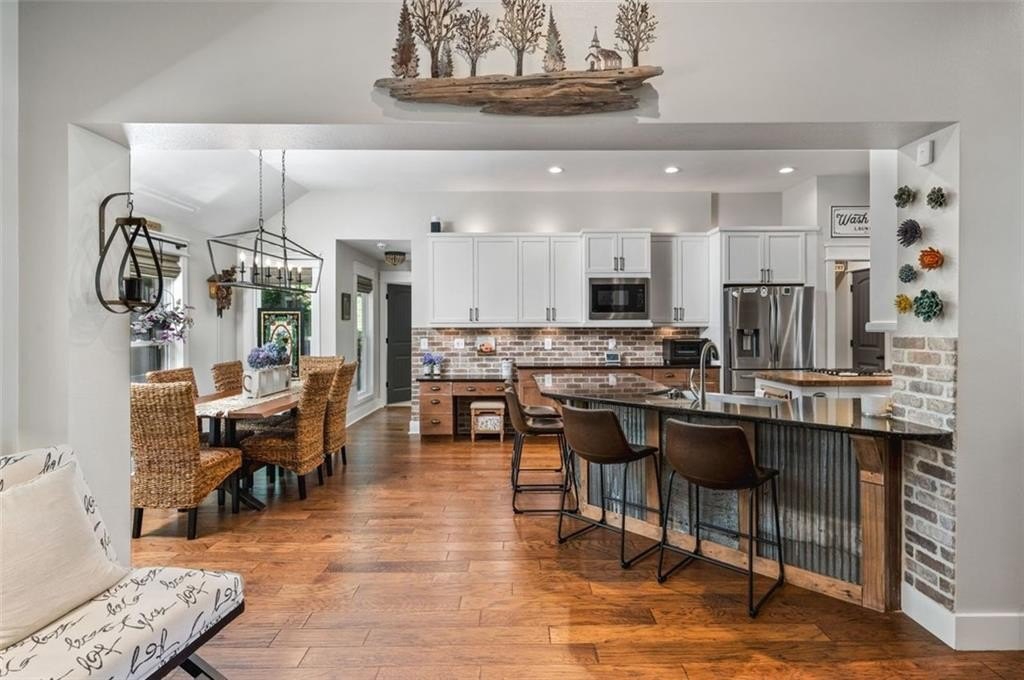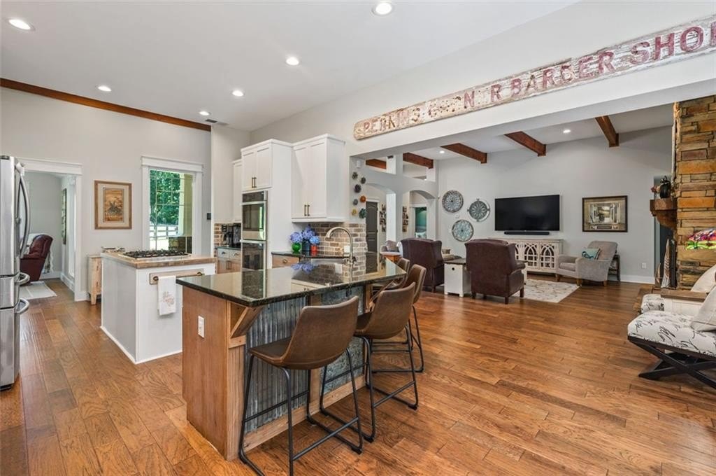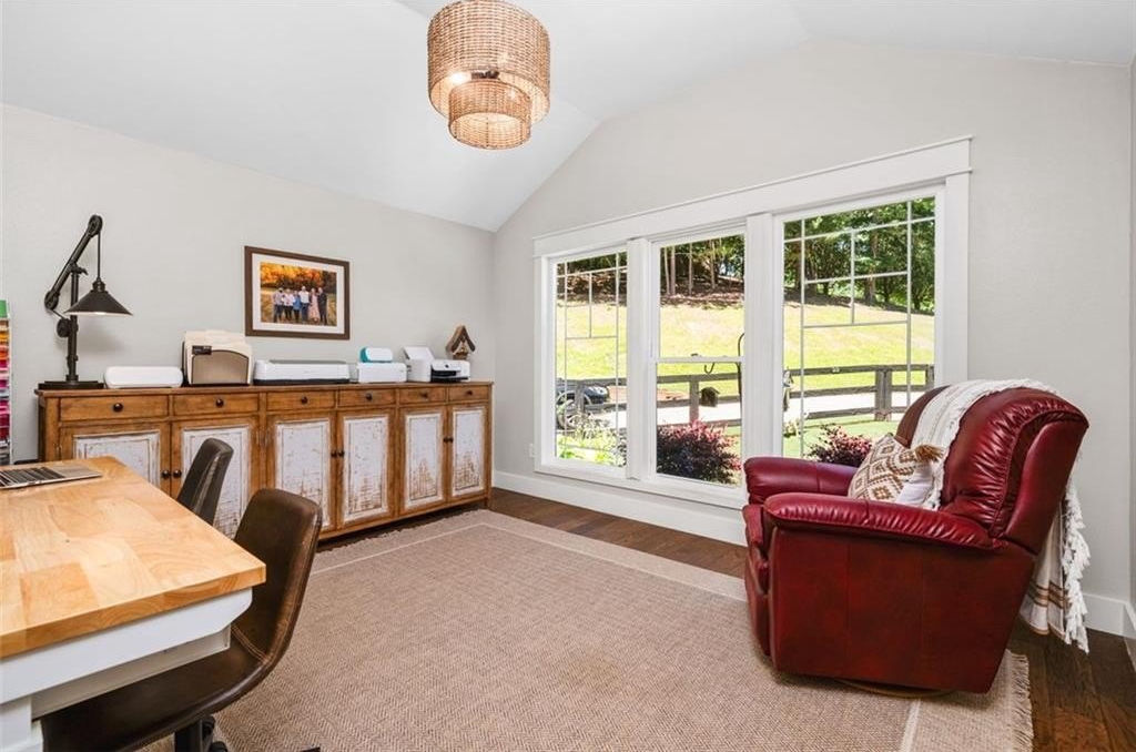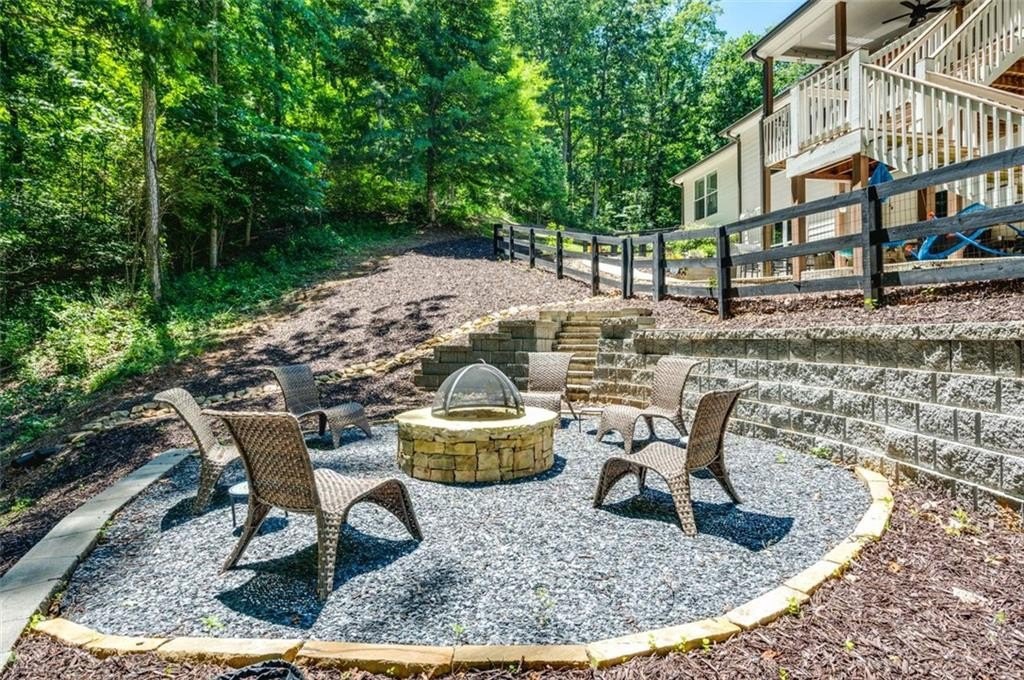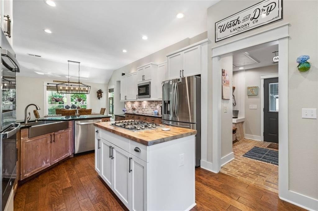 This Dreamy Ranch is Tucked away on a quiet, wooded lot, this Custom Ranch isn’t just a home—it’s a lifestyle. Picture yourself sipping morning coffee as deer wander through 2+ peaceful acres, the soft rustle of leaves replacing the noise of the city. Here, you’ll find the perfect balance of nature, luxury, and convenience—just minutes from Thriving Canton’s best shopping and dining, and top-rated Cherokee County schools. Inside, over 5,000 square feet of beautifully renovated living space blends rustic charm with modern elegance. Soaring beamed ceilings and a dramatic floor-to-ceiling stone fireplace set the tone, while fresh designer-selected finishes and newly painted interiors make every room feel warm and inviting.