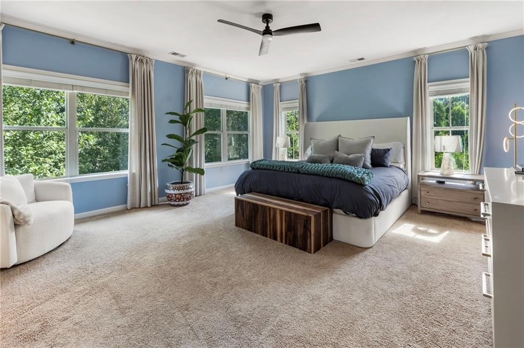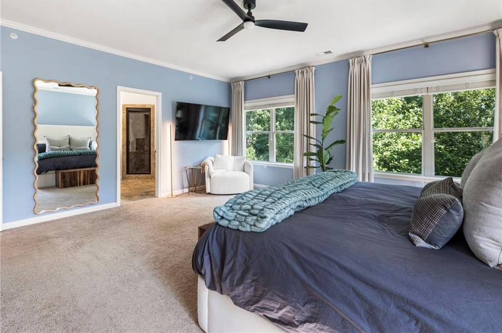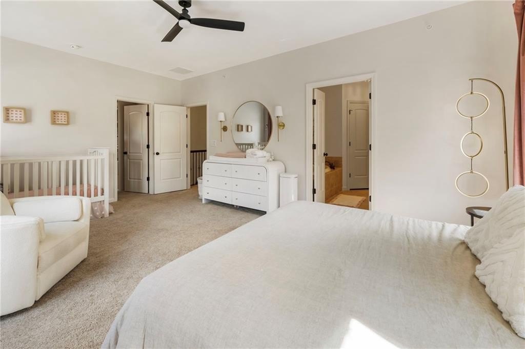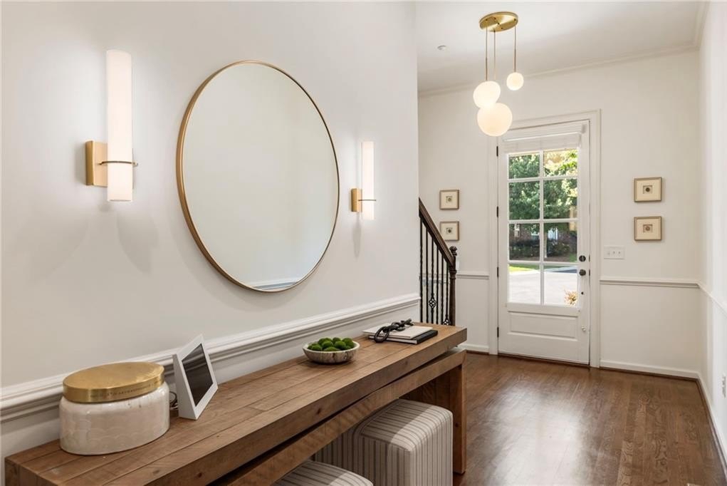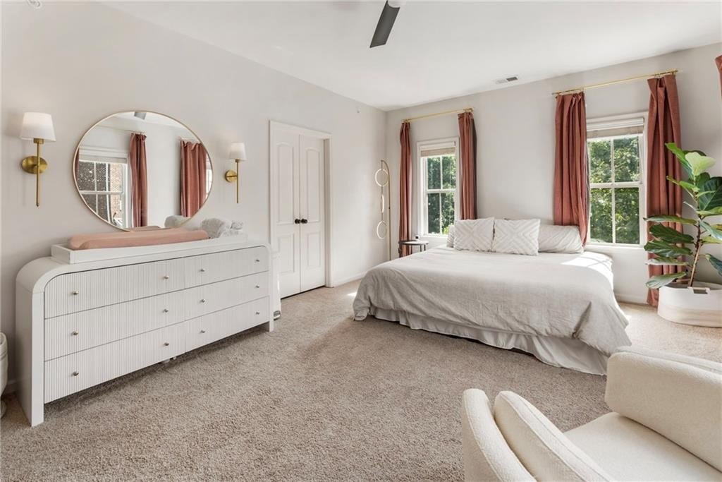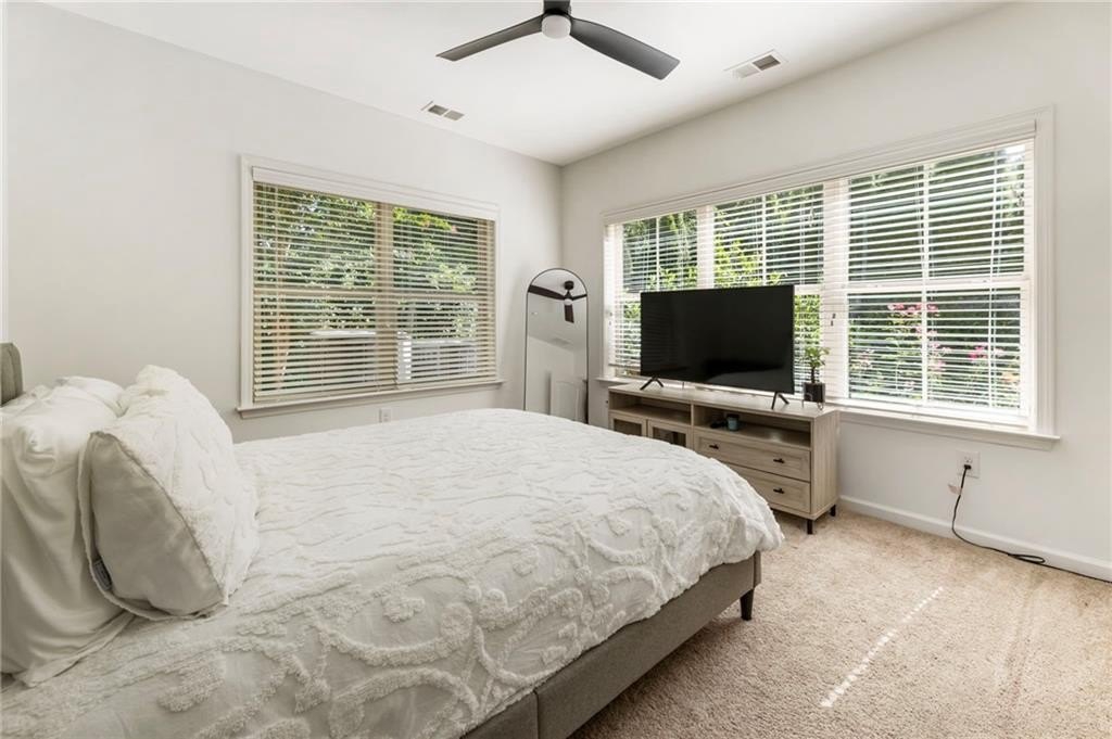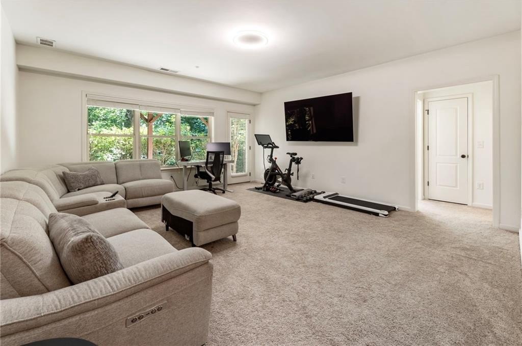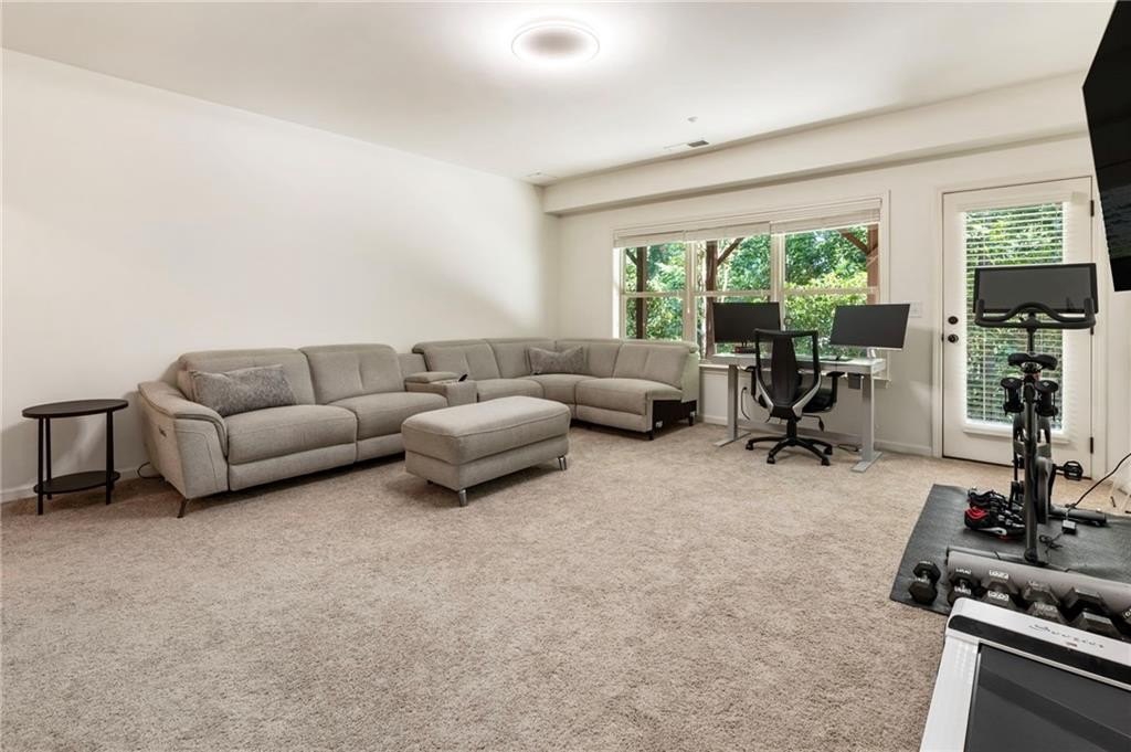 Beautiful End-Unit Townhome with Modern Upgrades and Exceptional Natural Light. This bright and spacious end-unit townhome offers garage parking conveniently located on the main living level and boasts a serene natural backyard view. With abundant windows throughout, this home is filled with natural light and features hardwood floors across the main level. The chef’s kitchen is equipped with a gas cooktop, double ovens, generous cabinetry, and an island with storage and room for addiitaonl seating making it ideal for cooking and entertaining. Step outside to a newly built (2025) entertainer’s dream deck with a built-in media cabinet. Upstairs, the primary suite features a large spa-style bathroom with a separate soaking tub and shower, dual vanities, and a walk-in closet with custom built-ins. A second upstairs bedroom includes its own ensuite bath and walk-in closet, also with custom shelving. The upper level also includes a laundry room with custom cabinetry. The fully finished terrace level offers a flexible family room, an additional bedroom, a full bathroom, and extra storage space, with direct access to a private, quiet patio. Located in a gated community, this townhome includes numerous recent upgrades: New Trane 2-speed high-efficiency HVAC condensers, Smart thermostats on all levels, New epoxy garage floor, High-lift garage door with side mount motor and remote access, EV charging cable infrastructure and pressure washer installed in garage, New cabinet hardware and kitchen sink, Updated lighting fixtures throughout,