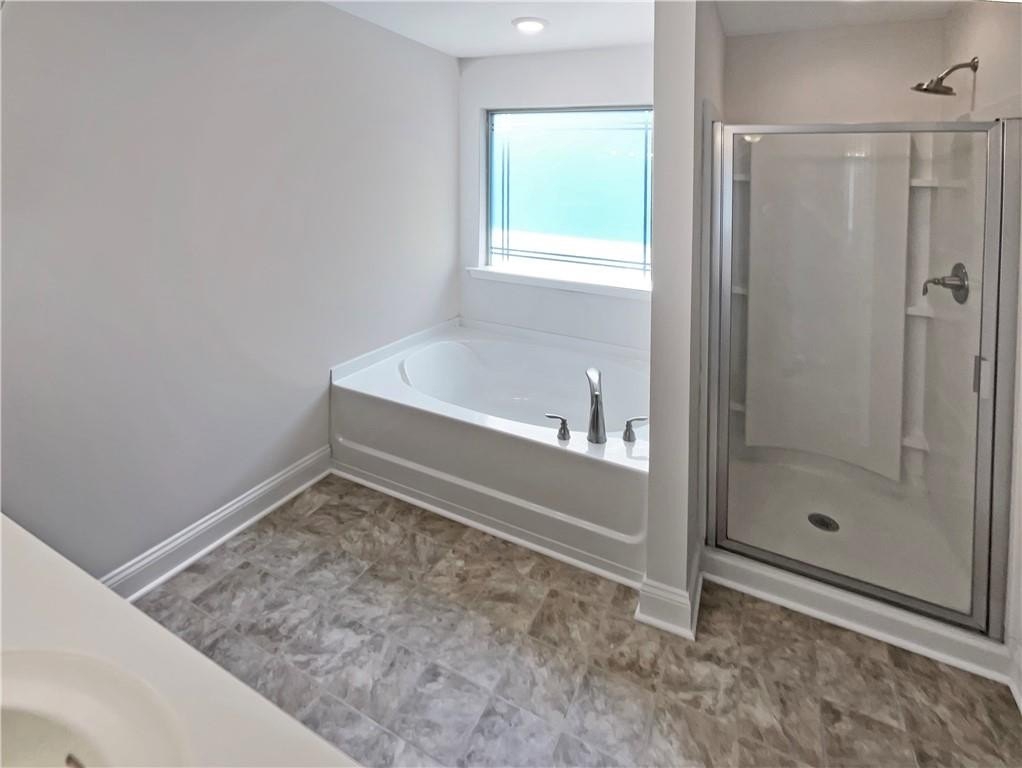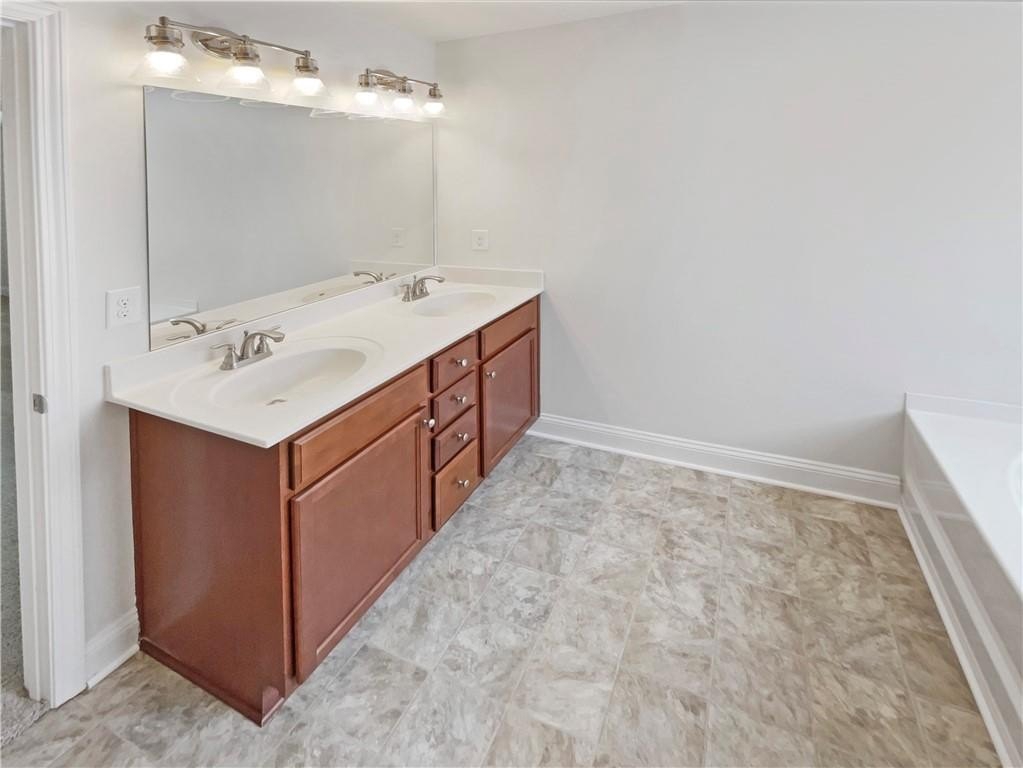 vanity, soaking tub, and separate shower. Two additional guest bedrooms share a full bath, and the upstairs laundry room