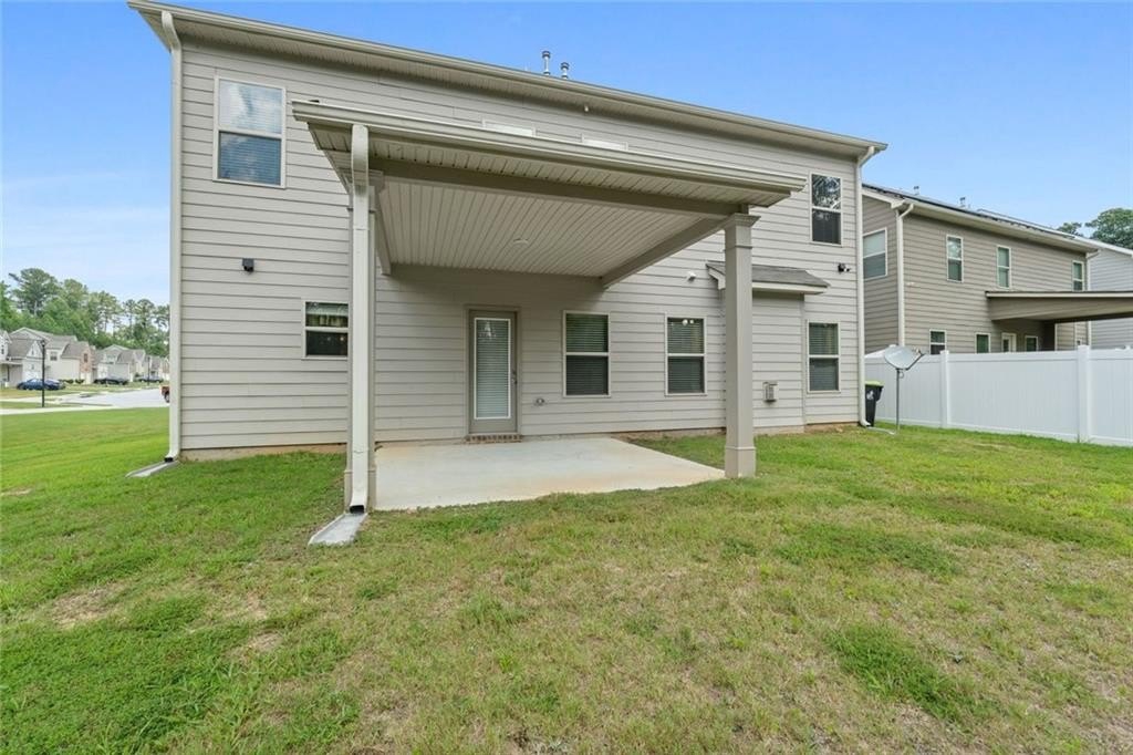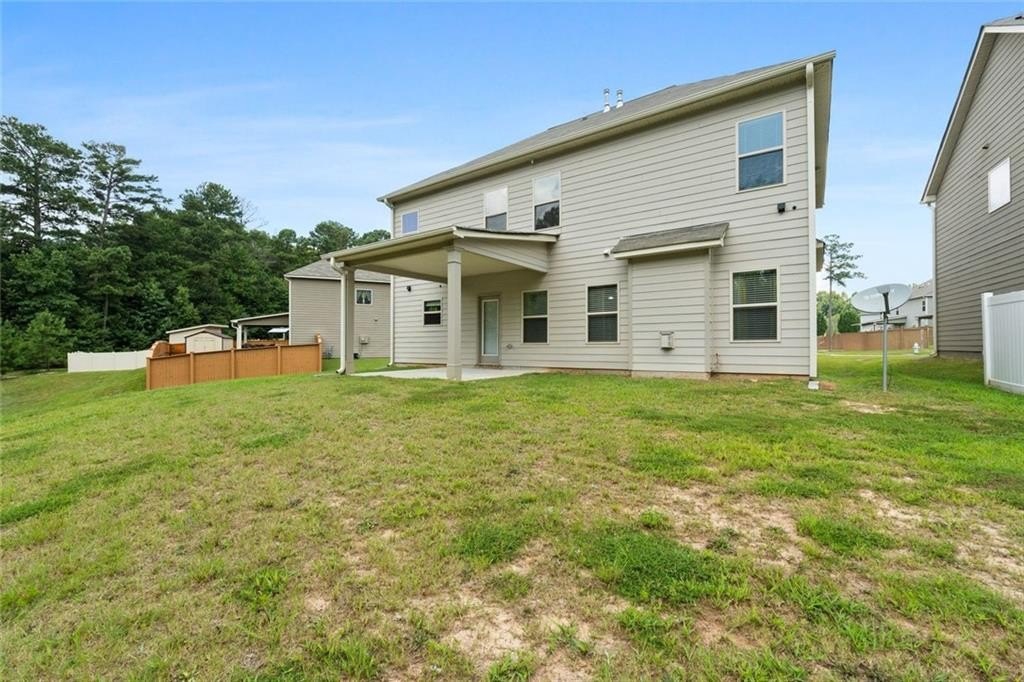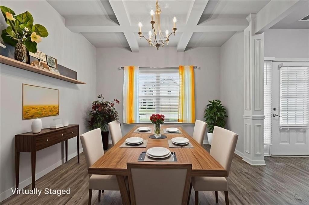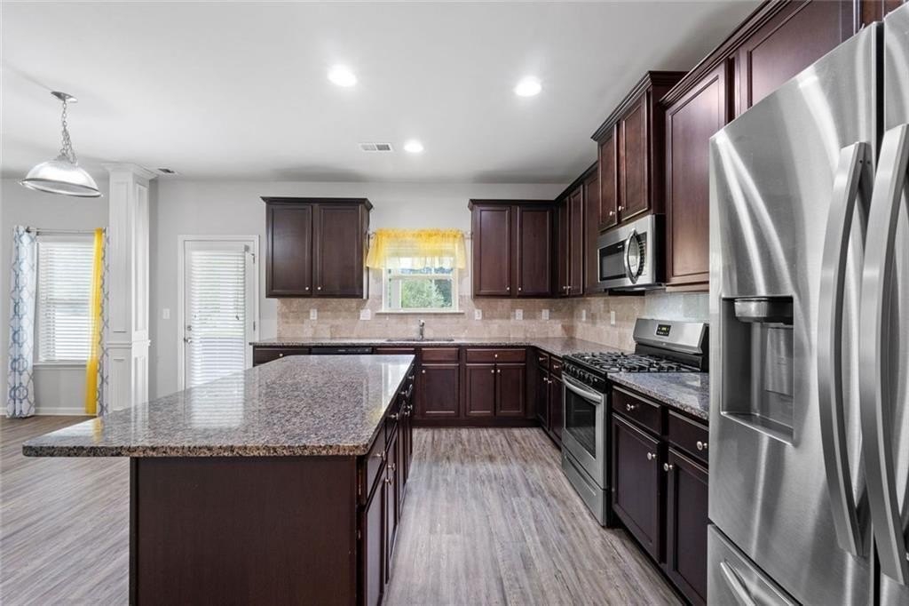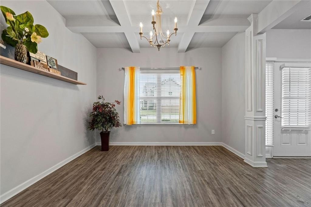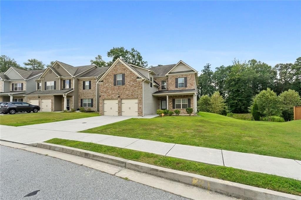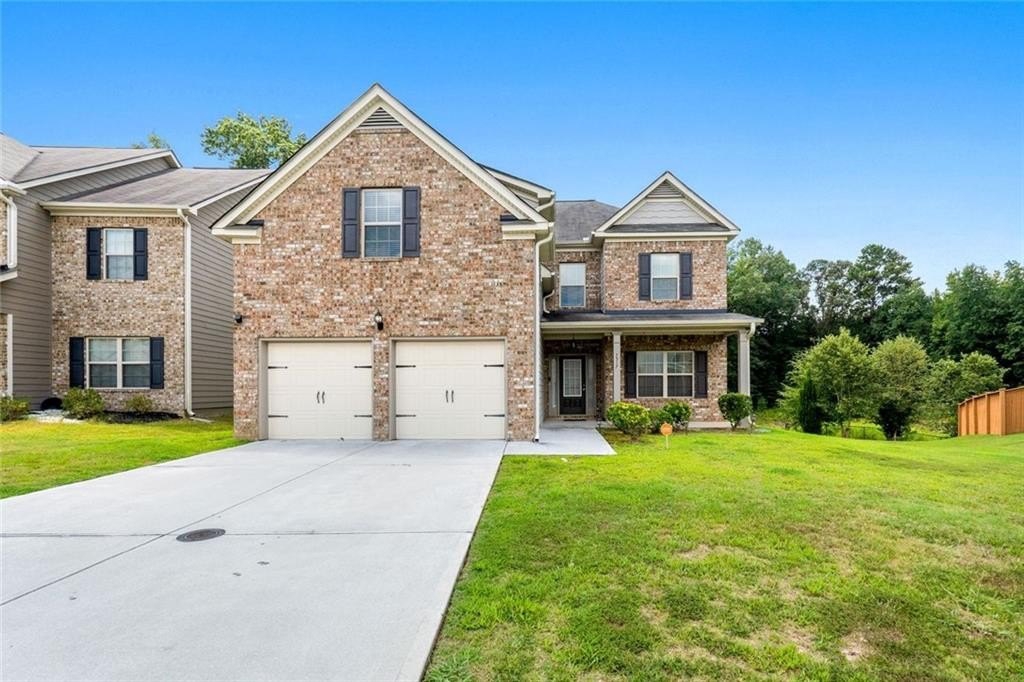 Welcome Home to Comfort, Style & Convenience! Step inside this beautifully maintained Thornton floor plan offering 5 spacious bedrooms and 3 full baths, perfectly designed for modern living. Built in 2020 with a classic brick front and a welcoming rocking-chair front porch that is perfect for your morning cup of coffee/tea or simply to relax in, this home has the curb appeal and comfort you’ve been looking for. The main level features luxury vinyl plank flooring throughout, combining elegance with easy maintenance. Real wood stairs lead to the second floor, adding warmth and character. Hosting in-laws or guests? The main-level bedroom offers privacy and convenience. You'll love the open-concept kitchen with recessed lighting, an abundance of cabinetry, a generous walk-in pantry, and seamless flow into the oversized family room with a cozy gas fireplace that's ideal for entertaining or relaxing. The separate formal dining room with coffered ceilings sets the stage for unforgettable dinners and celebrations, allowing more room for seating. A practical mudroom off the 2-car garage keeps things tidy and organized. Upstairs, retreat to your large owners suite with room to unwind in the sitting area. Need a playroom or a man cave? One of the oversized secondary bedrooms is the perfect flex space, big enough for a pool table, game room, or media lounge. Enjoy the outdoors year-round on the covered patio, which can easily be screened in for added comfort and privacy. All of this, and it’s just 19 minutes to Hartsfield-Jackson Airport and under 30 minutes to downtown Atlanta to catch a show or have dinner, a commuter's dream!