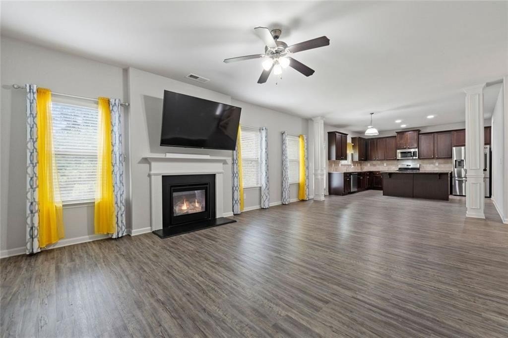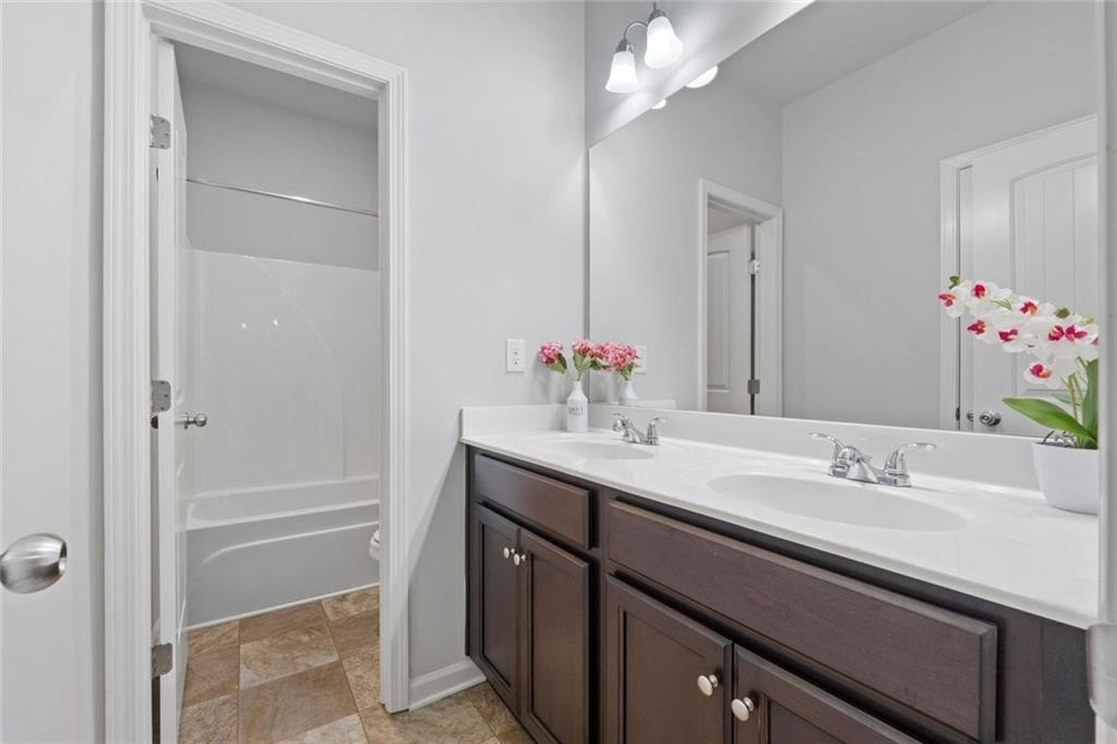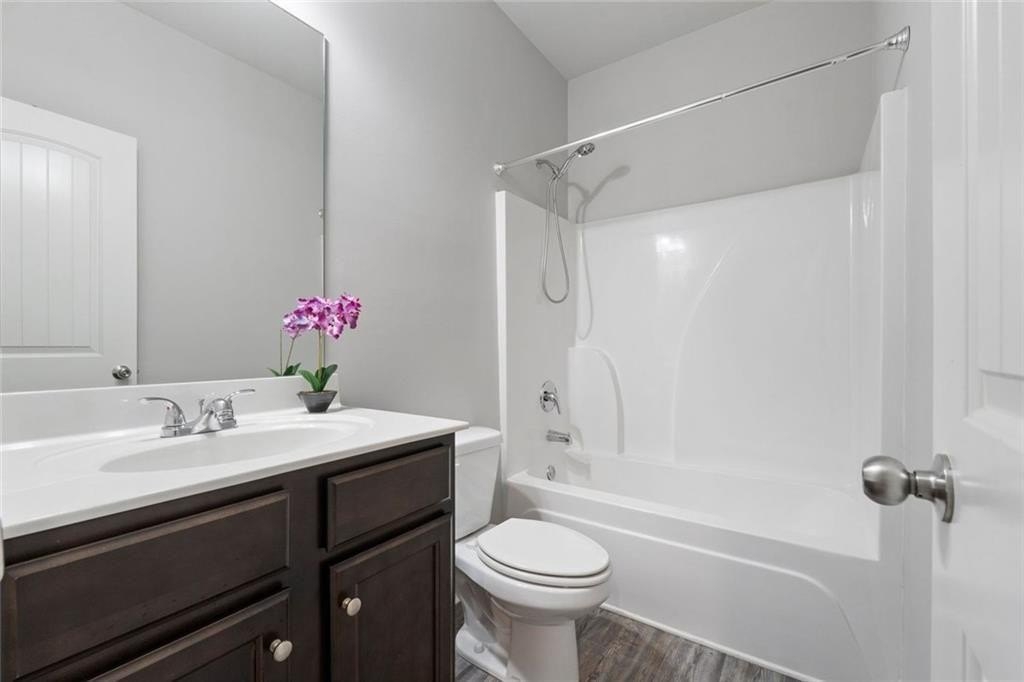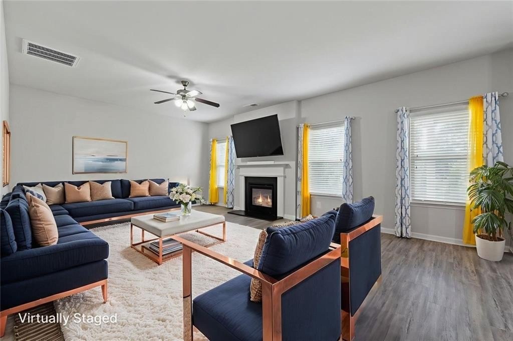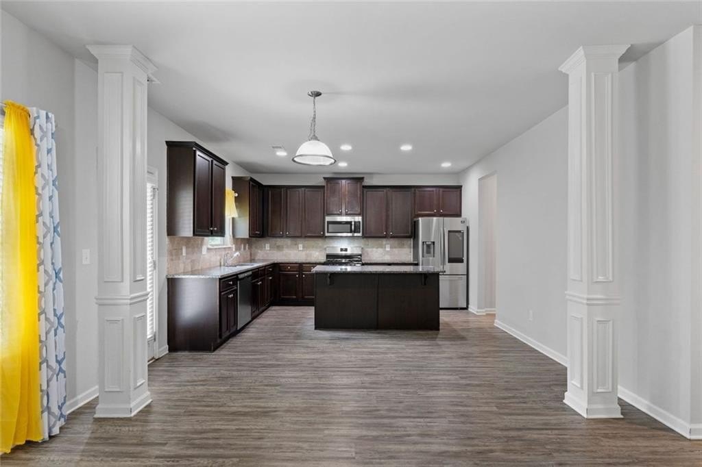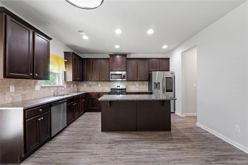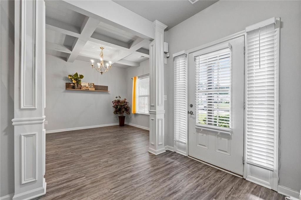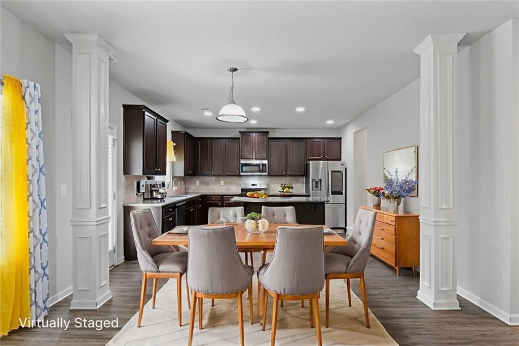 Welcome Home to Comfort, Style & Convenience! Step inside this beautifully maintained Thornton floor plan offering 5 spacious bedrooms and 3 full baths, perfectly designed for modern living. Built in 2020 with a classic brick front and a welcoming rocking-chair front porch that is perfect for your morning cup of coffee/tea or simply to relax in, this home has the curb appeal and comfort you’ve been looking for. The main level features luxury vinyl plank flooring throughout, combining elegance with easy maintenance. Real wood stairs lead to the second floor, adding warmth and character. Hosting in-laws or guests? The main-level bedroom offers privacy and convenience. You'll love the open-concept kitchen with recessed lighting, an abundance of cabinetry, a generous walk-in pantry, and seamless flow into the oversized family room with a cozy gas fireplace that's ideal for entertaining or relaxing. The separate formal dining room with coffered ceilings sets the stage for unforgettable dinners and celebrations, allowing more room for seating. A practical mudroom off the 2-car garage keeps things tidy and organized. Upstairs, retreat to your large owners suite with room to unwind in the sitting area. Need a playroom or a man cave? One of the oversized secondary bedrooms is the perfect flex space, big enough for a pool table, game room, or media lounge. Enjoy the outdoors year-round on the covered patio, which can easily be screened in for added comfort and privacy. All of this, and it’s just 19 minutes to Hartsfield-Jackson Airport and under 30 minutes to downtown Atlanta to catch a show or have dinner, a commuter's dream!