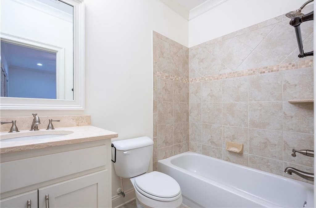 This elegant three-story brick townhome is ideally situated in Decatur, steps to Glenlake Park and the energetic Decatur Square. Enjoy the warmth of a freshly painted interior from the moment you arrive. The residence features three bedrooms and three and a half bathrooms, with hardwood floors and detailed moldings throughout the main living areas, and tile flooring on the terrace level. On the main level, you'll find a versatile living room that can serve as an office or playroom, a separate dining room, a powder room, and two closets for additional storage. The open kitchen, boasts a spacious island, high-end Viking appliances-including a six-burner gas cooktop, oven, and microwave-a Bosch dishwasher, ample cabinetry with custom pull-out drawers, granite countertops, and a walk-in pantry. An adjacent eat-in area overlooks the family room, which includes built-in shelving, a coffered ceiling, and a gas fireplace. A private deck extends from this space, providing a tranquil outdoor retreat. The upper level hosts a generous primary suite, complete with a bathroom that offers a separate tub, a glass walk-in shower with a tiled bench, and a double vanity with granite countertops. A dedicated laundry room equipped with cabinets and an additional closet is conveniently located in the hallway. The secondary bedroom suite on this floor is spacious, featuring a large walk-in closet and an updated bathroom with a granite vanity. The terrace level adds flexibility to the home, presenting a third bedroom with a full ensuite bathroom and access to a walk-out patio-ideal for guests or as a home office or den. The garage includes a substantial storage closet and opens into a mudroom on the terrace level, outfitted with custom cabinets for great storage. This townhome has been thoughtfully upgraded and offers abundant storage throughout. Its prime location allows for easy walks to a variety of restaurants and shops in Downtown Decatur and provides close proximity to the CDC, Emory University, downtown Atlanta, and more.