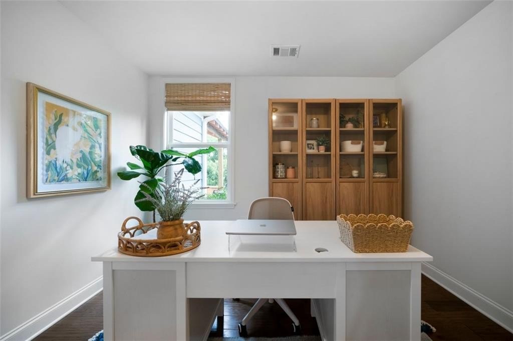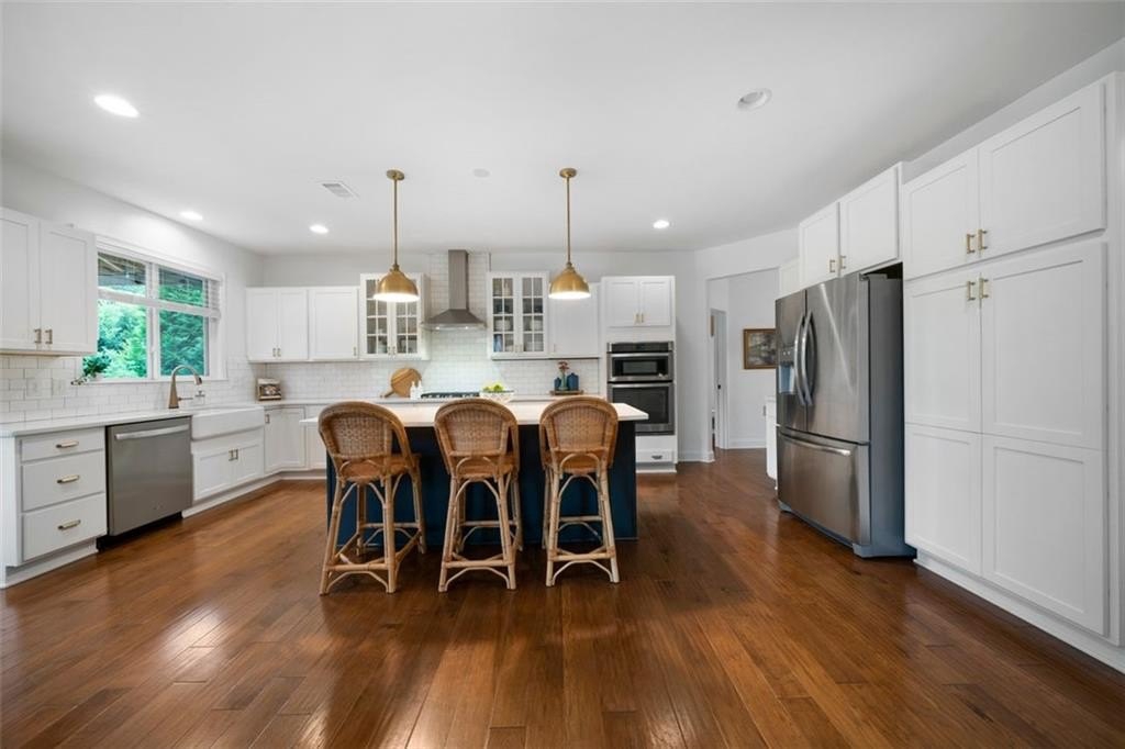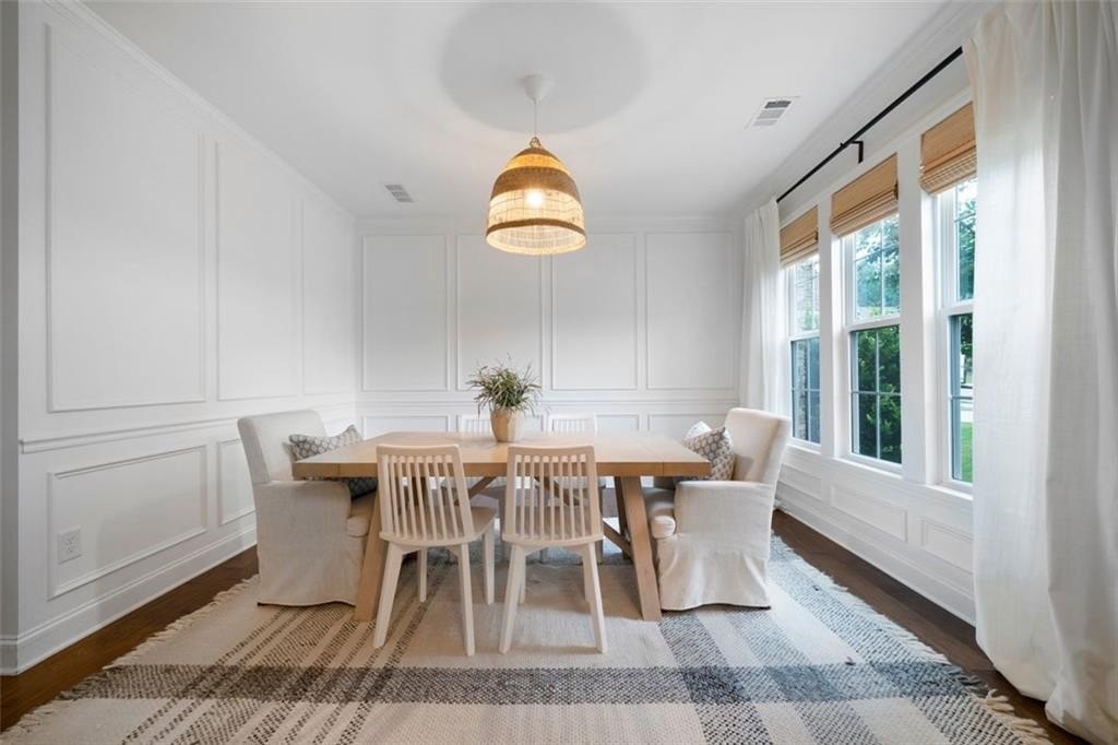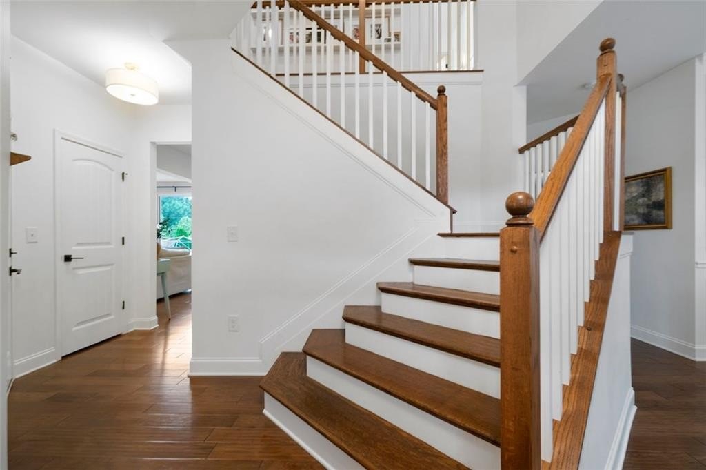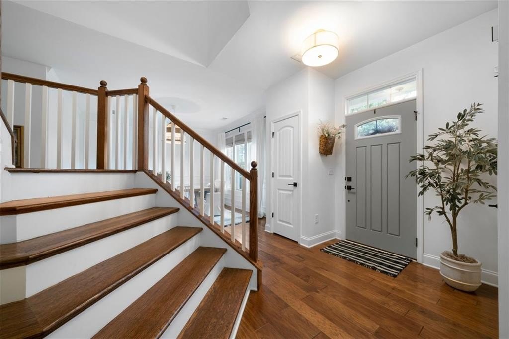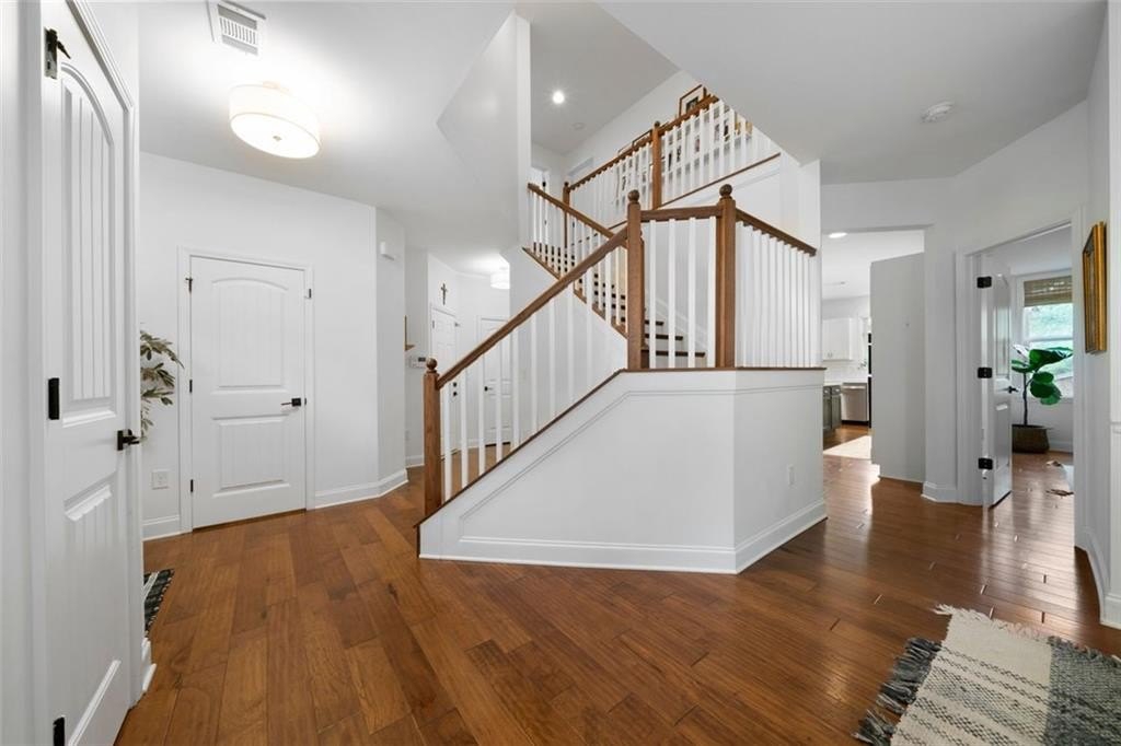 From the moment you walk in, you are greeted by rich engineered wood floors that flow through the main level, setting the tone for the home's welcoming and refined atmosphere. A dedicated formal dining room invites gatherings. A conveniently located powder room ensures comfort for visitors. The bedroom on the main floor with its own private ensuite bathroom offers flexibility and multi-generation living opportunities.