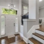 Natural light pours through elegant transom windows on the main floor, accentuating the open-concept layout. The gourmet kitchen is a chef’s dream, featuring granite countertops, modern stainless steel appliances, and a functional flow into the stylish butler’s pantry. This space includes a custom bar area with designer pull-out drawers and shelving by Closet by Design, seamlessly connecting to the formal dining room—perfect for entertaining.
