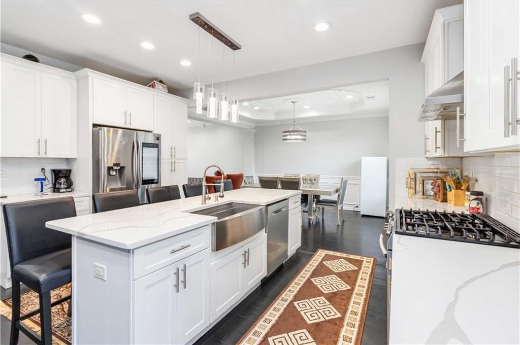 Step into a welcoming foyer that opens to a spacious family room and a large, open kitchen with plenty of room for cooking and gathering. The kitchen flows into a separate dining room, perfect for family meals or entertaining guests, and a private living room for more quiet, comfortable moments. From the kitchen, step out onto a spacious deck, ideal for barbecues, gatherings, or relaxing evenings outdoors.