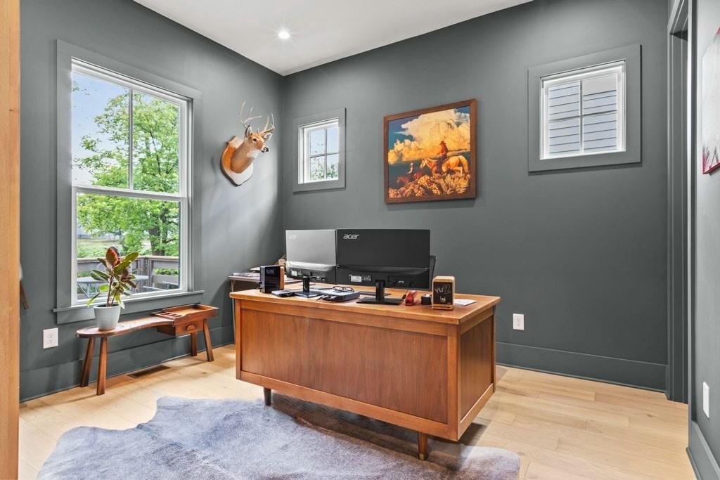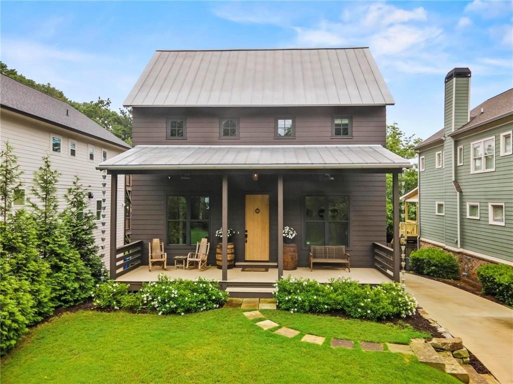 Serenbe vibe with a modern rustic aesthetic combining organic and contemporary, your buyers will fall in love with this builder's bespoke personal residence. Thoughtfully curated exterior design - Top of the line standing seam roof - - Gas lantern front porch opens into the foyer & two-story stairwell, coat-room & corner office, custom & hand-made wood elements throughout the home w/ soft & neutral/warm tones, open floor plan for entertaining, high-end window package w/tons of natural light - Kitchen w/Black River honed granite countertops & full backslash, modern cypress vent hood, walk-in pantry w/ built-in water line to coffee nook, custom Wet Bar w/ 2nd built-in dishwasher & beverage fridge spanning the Dining area - Study on main w/ stained bookshelves and sliding glass door - Living Room designed for extreme comfort w/ massive fireplace & black stone firewood stack, stained wood built-ins and mantle - Screened Porch off rear main level w/ outdoor living room surrounding the natural gas fire-pit table (w/ additional uncovered deck area) overlooking the private/fenced-in back yard - Vaulted Primary suite w/ sitting area and oversized custom built closet design, stained built-in cabinetry & covered balcony, primary lux bathroom including massive wet room w/ double shower system and pedestal tub, slate and marble floor - Laundry room with sink and cabinetry conveniently located upstairs - Unwind in lower level Home Theater room professionally sound engineered w/ stadium seating, 200 bottle wine cellar w/ frameless glass door & 2nd wet-bar, full bath w/ shower, massive 2 car garage w/ storage area & mudroom - pristine landscaping with fire-pit & firewood shed, sprinkler system front & back - Upgrades absolutely everywhere - Designed, built & owned by Obie Gold Award winning builder JW Hall Building Co. Walk to The Works, Beltline, Woodall Rail Trail, Twenty minutes to Truist Park, easy access to Midtown.