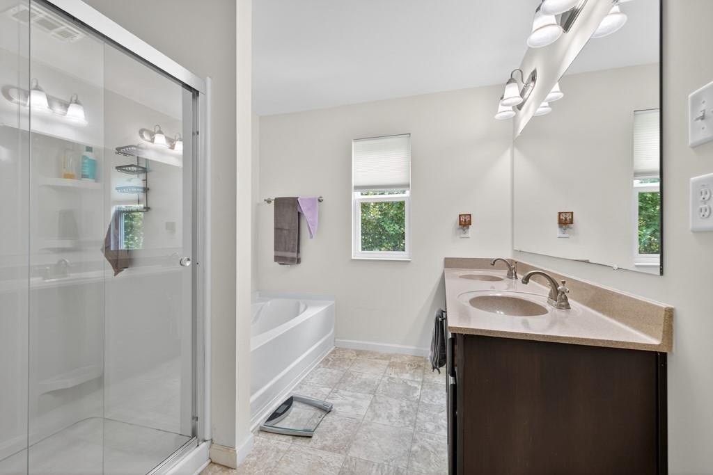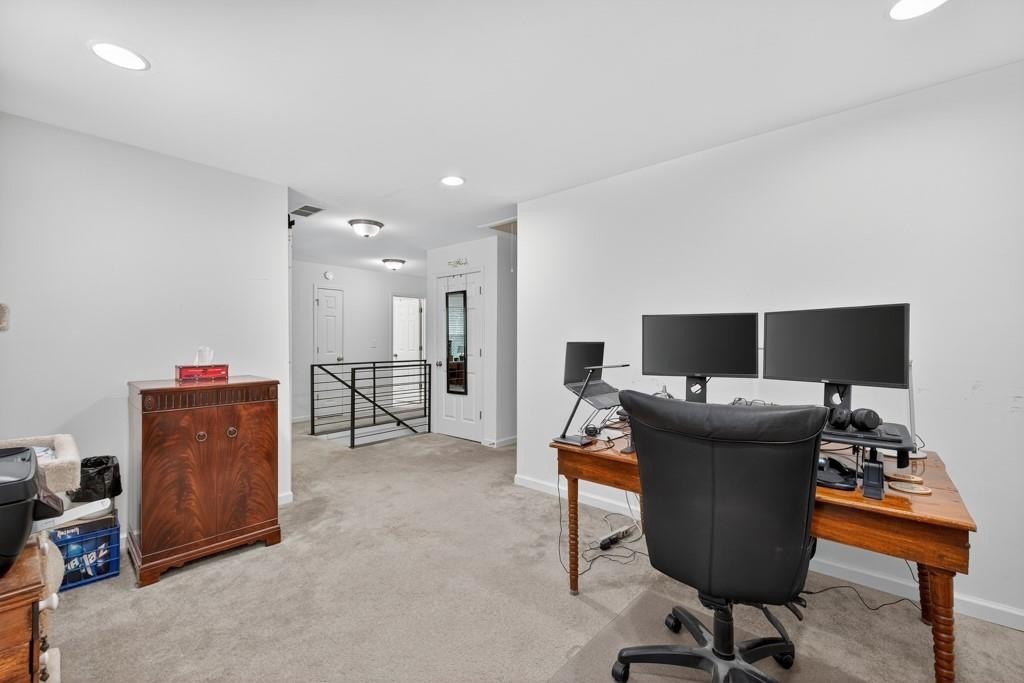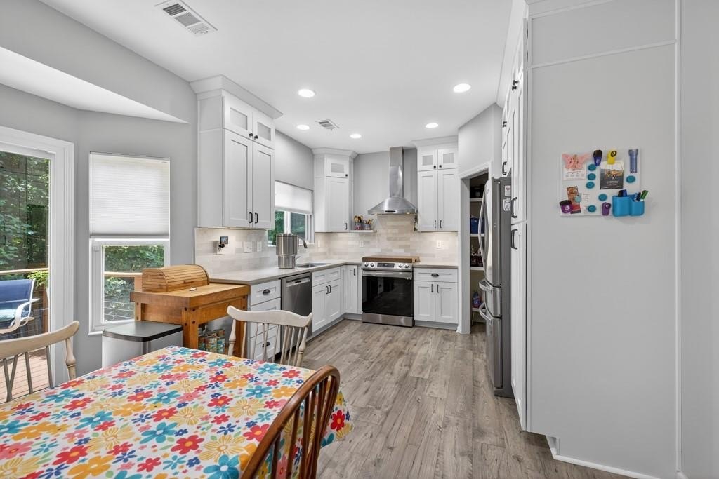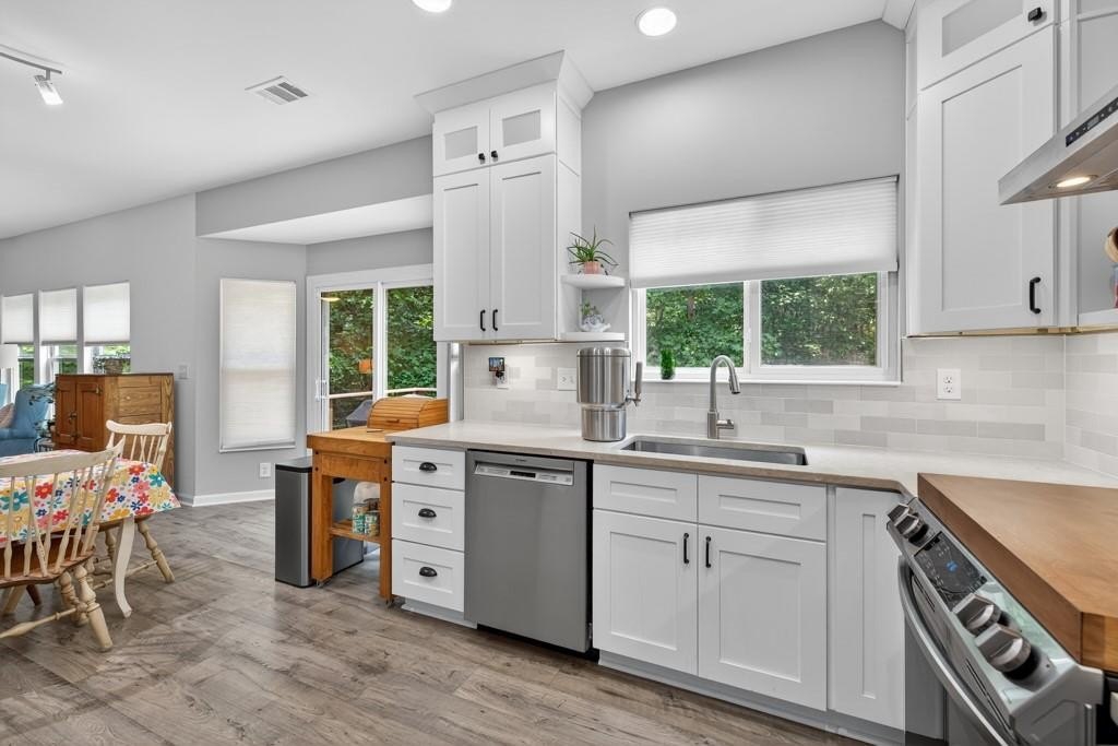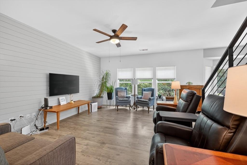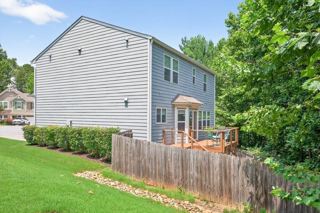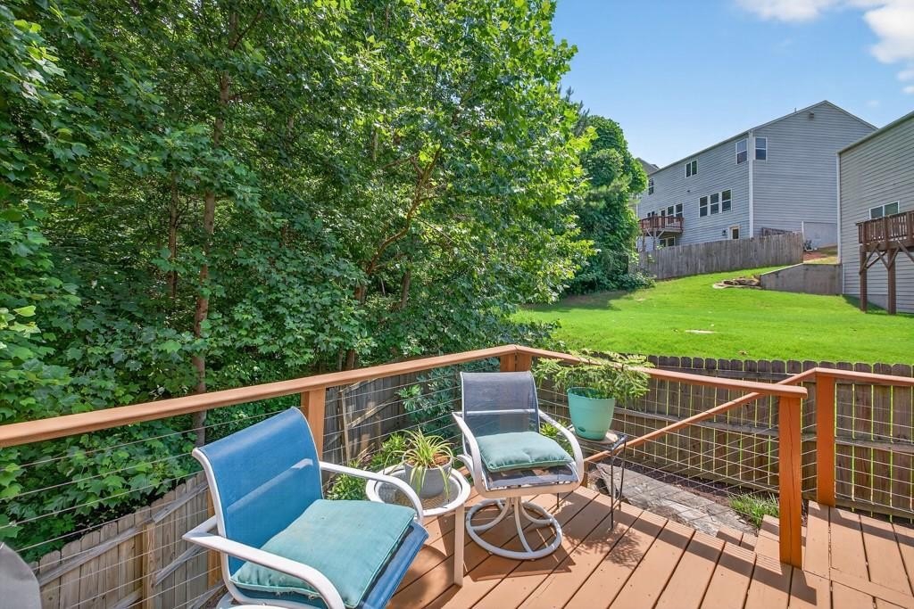 Located within walking distance of Sugar Hill's many entertainment options and activities, this home is not to be missed! Nestled on a wooded cul de sac in Rivendale Crossing, this 3 bedroom 2 and a half bath home on a partially finished full basement will not disappoint! Featuring a newly remodeled, bright white cabinets, solid countertops, stainless appliances, walk in pantry, tile backsplash and eat in area, kitchen opens to the great room, highlighted by a charming shiplap feature wall. Separate dining room with nearby half bath can flex as another living space, library or office. Updated durable LVP flooring throughout the main floor. Bay window and French door off the eat in kitchen lead out to a spacious deck, peacefully surrounded by mature growth trees. Head upstairs to enjoy a bonus loft area, great for an additional rec room, office or excercise area. Bright owners suite features ceiling fan, carpeted floors, spacious walk in closet with full en suite bath, complete with double sinks, separate tub and extended shower. Two sizable secondary bedrooms are also located upstairs, sharing a full hall bathroom. Continue to the basement and find a partially finished bedroom with en suite bath featuring shower, sink & toilet. Further unfinished heated space can be completed with a few finishing touches. Head outside to enjoy the quiet, private backyard, fully landscaped to allow for efficient water flow away from the home. Minutes away from the best downtown Sugar Hill has to offer...the e Center, Bowl at Sugar Hill, Eagle Theatre and more...as well as the Mall of Georgia. Great location,neighborhood and move in ready home make this property a must-see! SHOWINGS BEGIN SUNDAY AUGUST 10