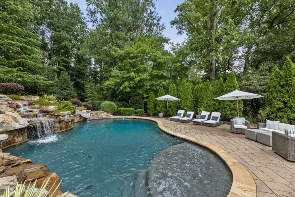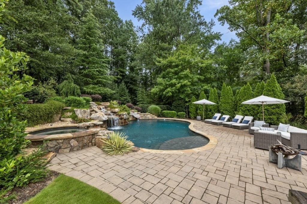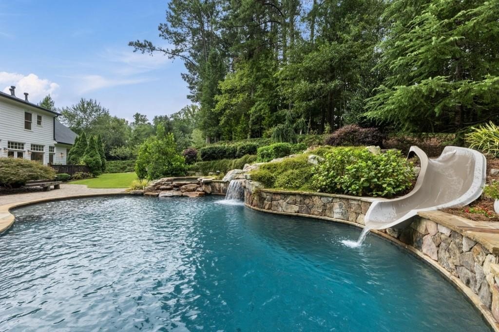 Nestled in the serene cul-de-sac of Milton's prestigious Marshalls Pond, this move-in-ready 6-bedroom, 8-full bathroom, and 2 half bath masterpiece spans a 1.26-acre lot, redefining luxury with timeless elegance and modern comfort. As you enter, large picture windows frame a breathtaking view of the sparkling pool waterfall, seamlessly blending the indoors with the walk-out main-level backyard. Designed for effortless living and grand entertaining, the open-concept layout exudes sophistication, centered around a gourmet kitchen with a large island that flows into a cozy fireside keeping room-one of four fireplaces throughout the home. Soaring vaulted ceilings and expansive windows showcase lush backyard vistas, creating an inviting ambiance. This space opens to a sprawling side patio with its own fireplace, perfect for morning coffee or hosting unforgettable evening gatherings. The private backyard oasis features a stunning pool and an expansive green lawn, enveloped by serene privacy and picturesque topography, ideal for play or relaxation. The beautiful neighborhood pond offers a tranquil retreat for residents, perfect for morning jogs, leisurely dog walks, or exclusive fishing. The main level continues to impress with a luxurious primary suite, complete with a fireplace, private deck access, a spa-inspired bathroom, and an oversized walk-in closet with abundant storage. A formal living room and elegant dining room, both with captivating outdoor views, elevate every hosting occasion. Upstairs, a versatile loft area complements three generously sized secondary bedrooms, each with its own en-suite bathroom. Above the garage, an expansive bedroom suite with a full bathroom offers flexibility such as a guest suite, office, gym, or apartment-style living. The terrace level is an entertainer's dream, designed for movie nights, game days, or lively gatherings, featuring a kitchenette and seamless access to the poolside outdoor living area. A sixth bedroom with an adjacent full bathroom ensures ample space for guests or family. Additionally, the 1,481 sq ft unfinished basement provides a blank canvas, ready to be transformed into a luxury wine cellar, state-of-the-art home theater, private fitness studio, or bespoke entertainment space tailored to your lifestyle. Vast unfinished storage areas ensure practicality meets luxury. Perfectly situated just minutes from the vibrant dining, shopping, and entertainment of Downtown Alpharetta, Avalon, and Downtown Crabapple, this extraordinary home offers unmatched convenience. Zoned for the highly desirable Milton High School, along with top-rated Northwestern Middle School and Birmingham Falls Elementary, this property ensures access to exceptional education. With five fireplaces, a sprawling lot, and endless opportunities for personalization, this Marshalls Pond estate invites you to move in and start living your dream today!