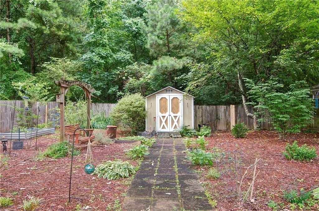 And speaking of outside — this FENCED-IN BACKYARD is a dream for both two- and four-legged family members. There's space to run, play, garden, swing, or simply soak in the serenity of the surrounding HOA-owned GREENSPACE. The STORAGE SHED keeps everything tidy and out of sight — from gardening tools to backyard toys.