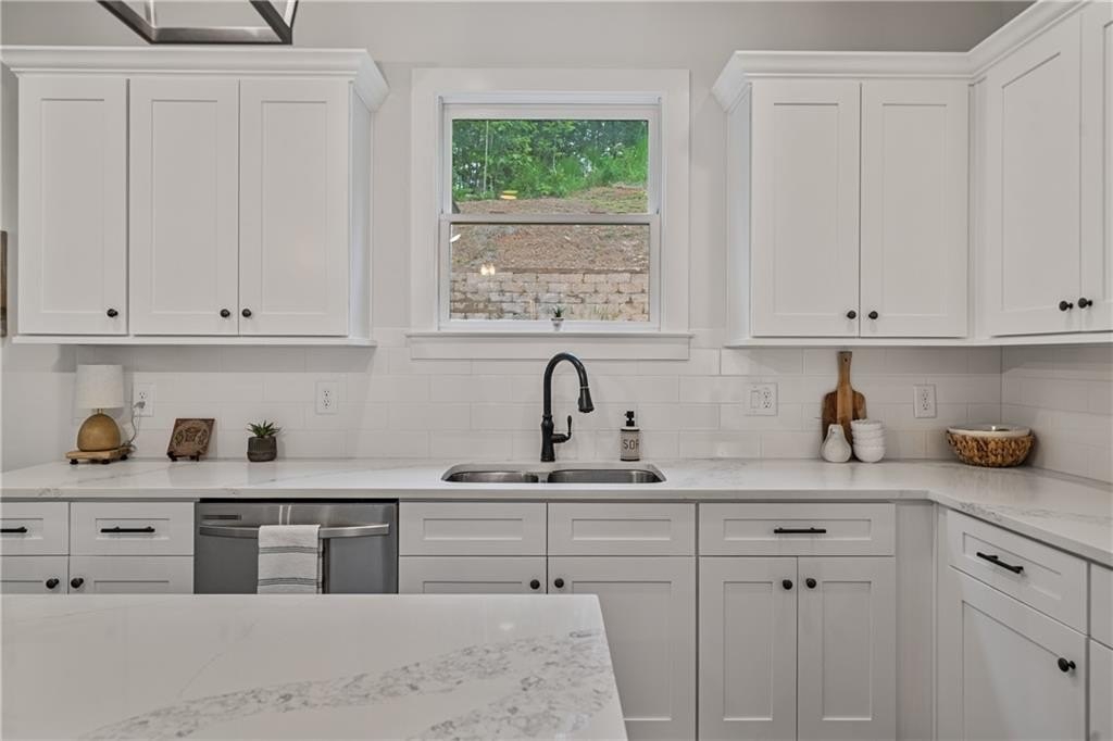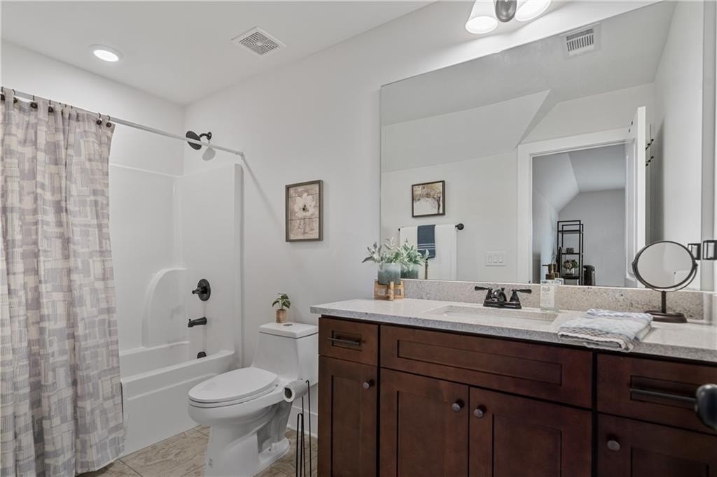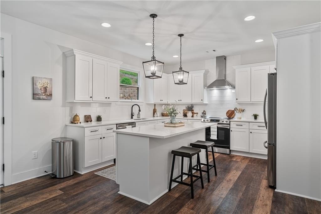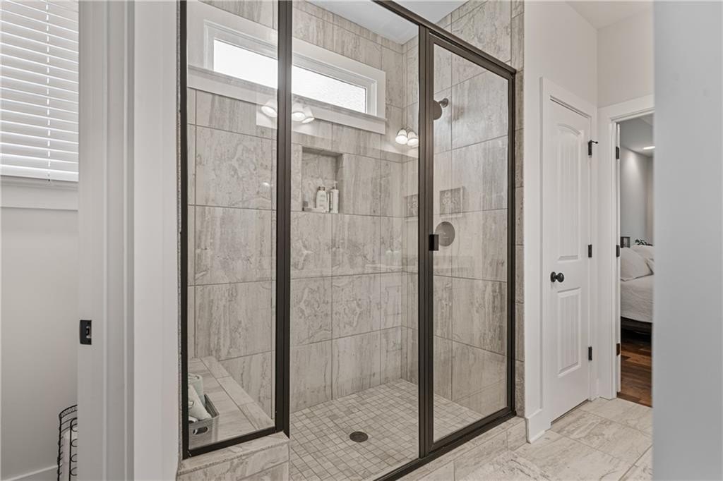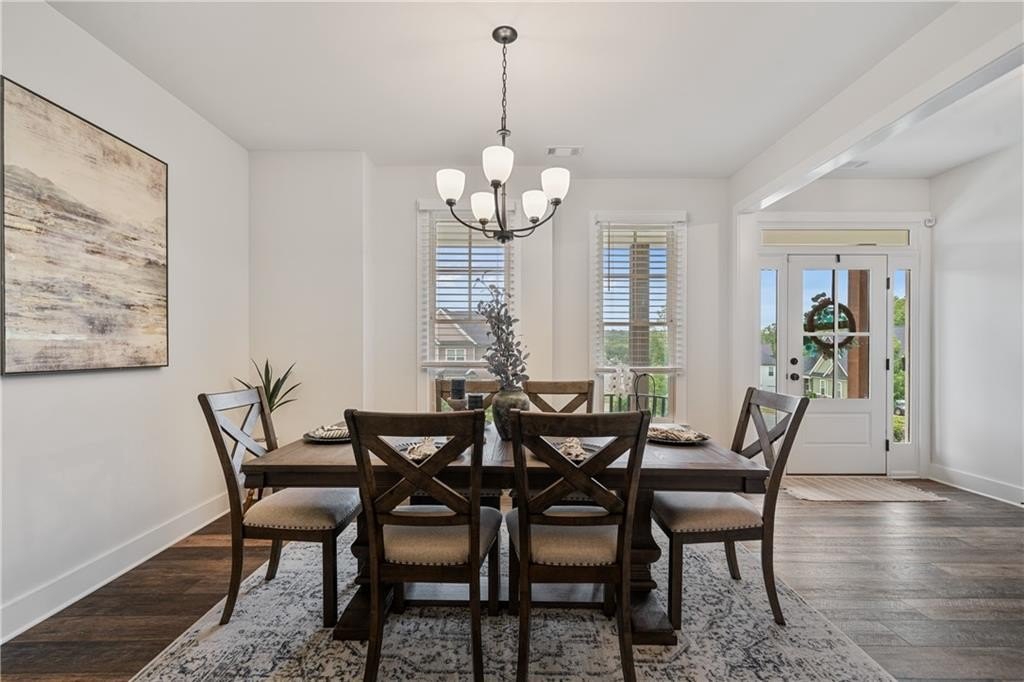 The main level is thoughtfully designed for convenience and sophisticated living. The gourmet kitchen is a chef’s delight, equipped with pristine white cabinetry, quartz countertops, a generous island, and high-end stainless-steel appliances. This space is perfect for preparing meals and hosting gatherings. Adjacent to the kitchen, a separate dining room provides a dedicated area for more formal meals and special occasions, adding to the home’s versatile appeal. The owner's en-suite, also located on the main floor, is a private retreat. It features a spacious bedroom with an elevated tray ceiling and an elegant bathroom with a double vanity, a large walk-in shower, and a substantial walk-in closet.