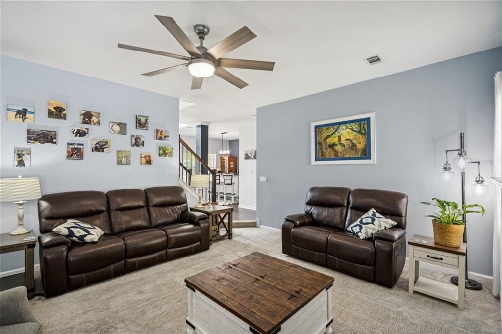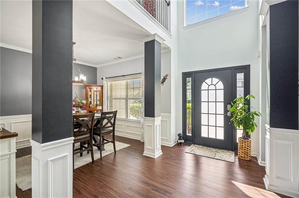 The entry welcomes you with a bright 2-story foyer finished in a modern color scheme.