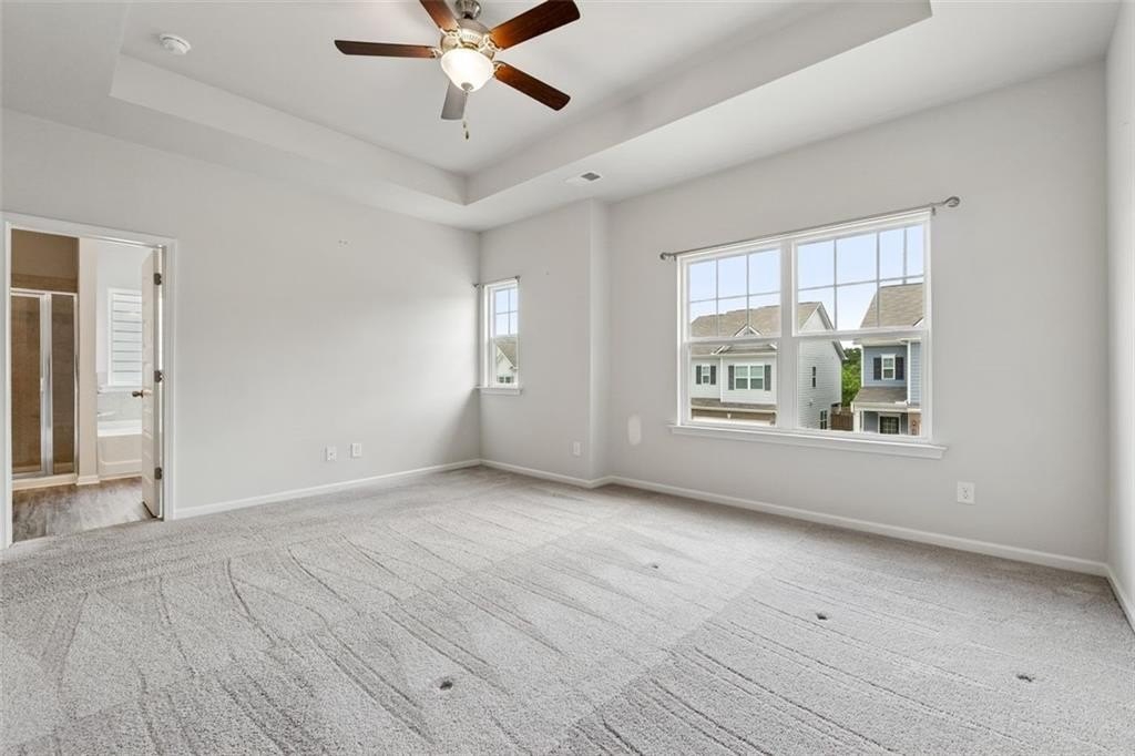 The dining/breakfast area overlooks a private, low-maintenance backyard with premium artificial turf—no mowing required! Upstairs, you’ll find an impressive owner’s suite along with three additional generously sized bedrooms, a full secondary bathroom, and a conveniently located laundry room—all on the same level.