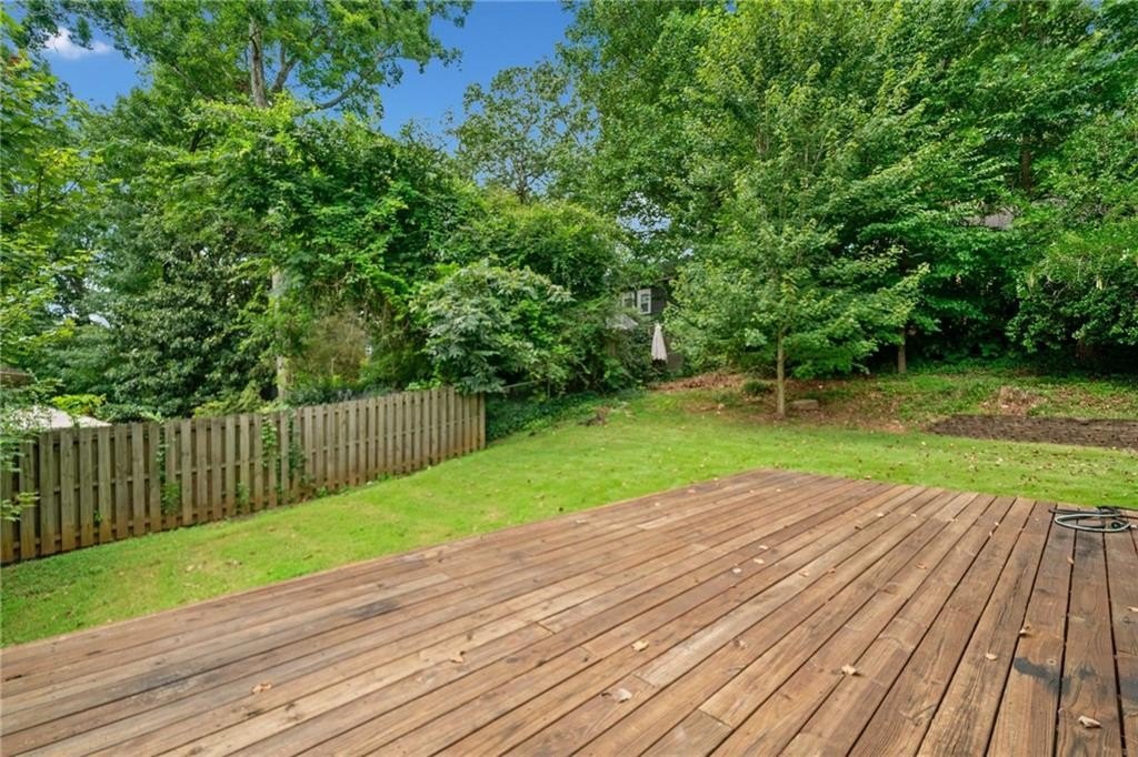 Nestled in the wonderfully whimsical, art-soaked haven of Pine Lake—Atlanta’s best-kept secret—you’ll find this delightfully versatile two-story home that’s full of surprises. Step in from the flat driveway into a light-filled kitchen with stone counters, modern appliances, and open space galore. The kitchen peers over a great room made for lounging, dining, and dreaming, and it all spills onto a sunny deck perfect for morning coffee or midnight star-gazing. Hardwood floors and soaring ceilings give the main level an airy feel, while a hidden gem awaits just beyond the front hallway—a cozy room with a secret closet tucked behind bookshelves (yes, really!) and a full bath nearby, perfect as a main-level bedroom, studio, second living room, or creative escape.