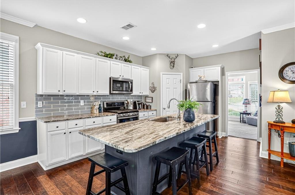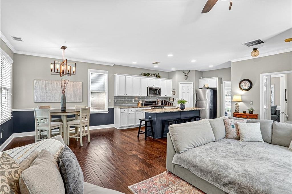 Discover this enchanting Craftsman-style home nestled just minutes from downtown Acworth’s inviting community and historic charm. Freshly painted inside, it welcomes you with warmth and character. The interior offers three spacious bedrooms upstairs and a basement with ample opportunity, fireplace, and two car garage. Step onto the covered back deck with sleek metal roofing—the perfect outdoor retreat. A covered terrace patio with a refined metal ceiling provides a bright and protected extension of living space. Venture into the landscaped backyard, where a stone fire pit and intimate sitting area make evenings magical and memorable. Combining architectural charm with thoughtful modern upgrades and an unbeatable location near shops, lakes, parks, and dining—this home is a rare find and a true gem. Charleston Park offers a quiet neighborhood with a full playground and nature trails perfect for exploring all that Acworth has to offer!
