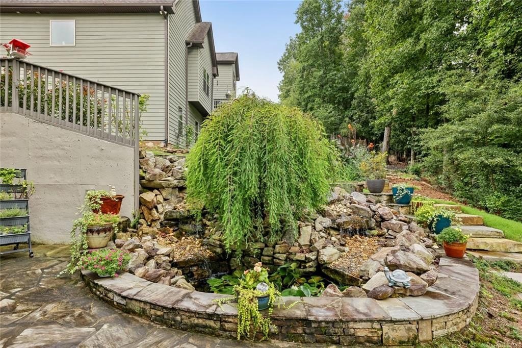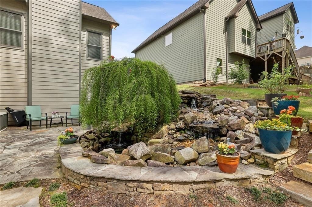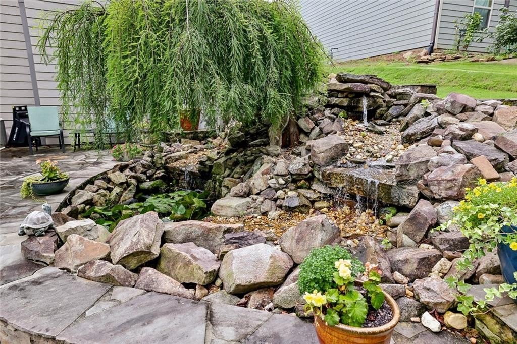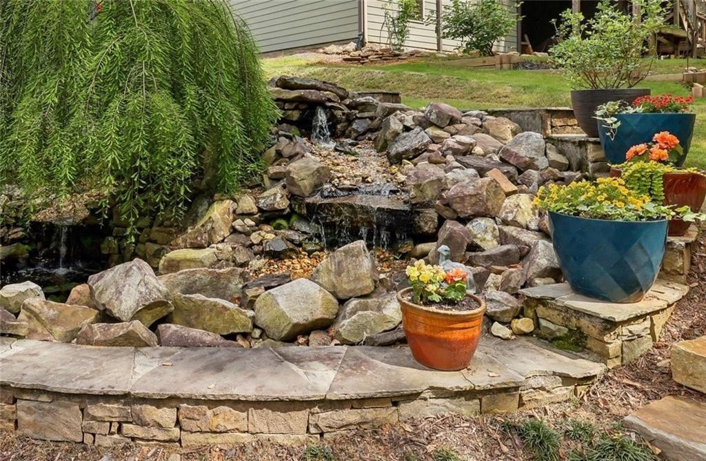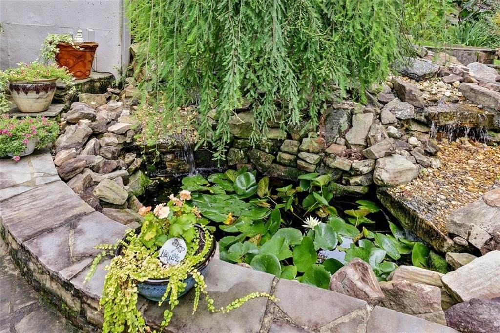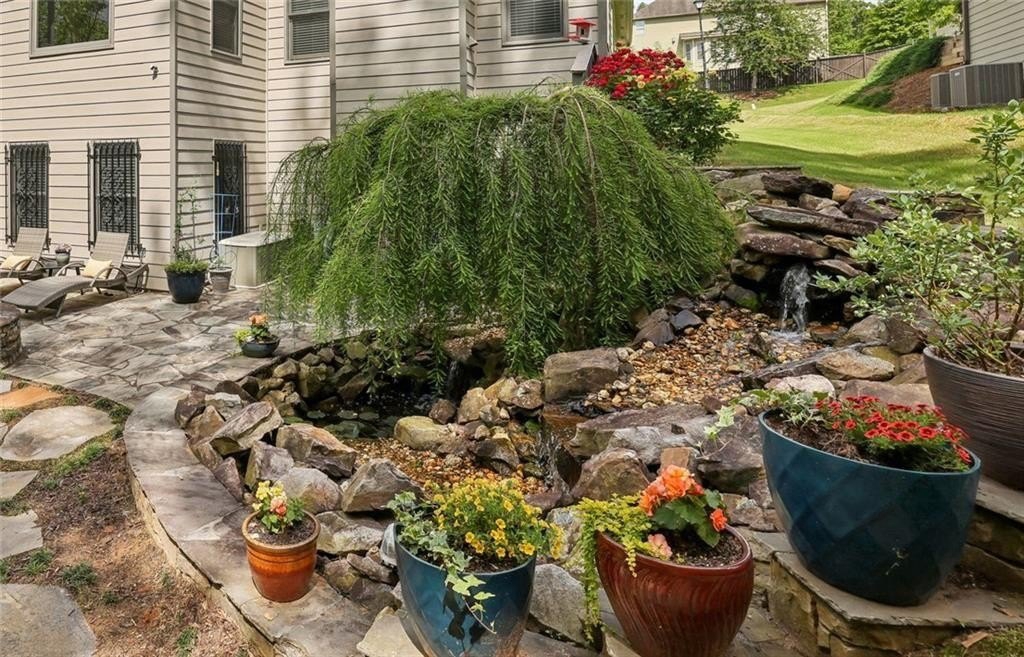 Major system updates include a 4-year-old roof and HVAC systems and a 2-year-old hot water heater, giving peace of mind for years to come. The landscaped backyard with waterfall pond and stone patio adds to the home's peaceful, private charm.