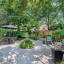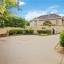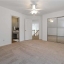 The primary bedroom, located on the main level, offers wood flooring, a walk-in closet, and a tray ceiling. It provides direct access to the expansive, fenced back patio—perfect for morning coffee or evening relaxation. The en-suite primary bathroom features double vanities, a soaking tub, and a separate shower.