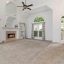 This elegant master-on-the-main home boasts an open floor plan that effortlessly integrates the living spaces, making it ideal for both entertaining and everyday living. Upon entry, you’ll be greeted by soaring ceilings and an abundance of windows that flood the great room with natural light. The eat-in kitchen is a chef’s dream, featuring stainless steel appliances, quartz countertops, custom shelving, freshly painted white cabinetry, and a convenient pantry. Large windows enhance the bright and welcoming atmosphere. The separate dining room overlooks the spacious fireside great room, creating a seamless flow between spaces.
