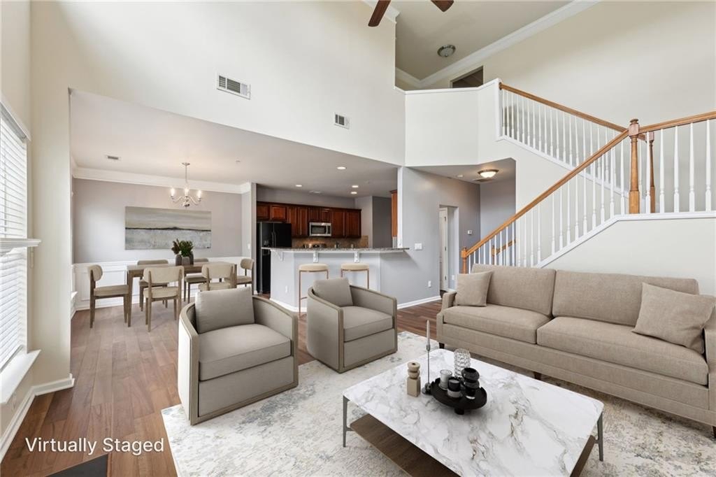 Perfect blend of style and convenience at this beautiful townhome just minutes from the heart of Downtown Woodstock. Nestled in a vibrant community, with easy access to your favorite Grocery stores (Publix, Kroger), Walmart, and over 30 local shops and dining destinations, and top-rated schools. This Light-filled Unit offers the ideal lifestyle for today's modern homeowner. This townhome boasts an open-concept floor plan, a two-story family room, an inviting kitchen featuring modern cabinetry, granite countertops, and plenty of space to entertain or to-simply unwind comfortably. The Kitchen appliances have all been updated by the seller!. Natural light pours through every room, accentuating the thoughtful design and airy ambiance. Refreshed with new paint, the downstairs flooring is covered with beautiful wood floors, and new carpet upstairs. You'll find three generously sized bedrooms upstairs, including an owner's suite with a spa-like bath and walk-in closet in the master bedroom for those who appreciate both luxury and functionality. Whether you're enjoying a peaceful evening at home or venturing out to the nearby Outlet Shoppes for designer finds, this location puts you in the center of it all, charming, connected, and incredibly convenient.