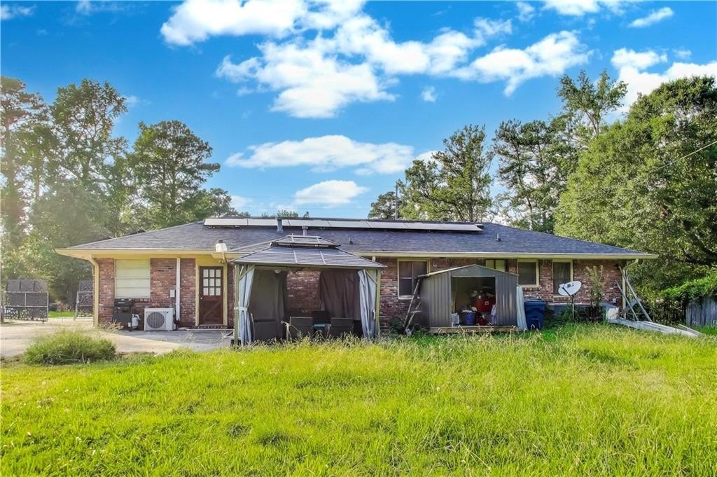 This beautifully maintained ranch style home offers 1,831 square feet of comfortable living space on a generous 0.74 acre leveled lot. With four sided brick construction, solar panels on the roof, and no front neighbors, you'll enjoy both durability and privacy while still being close to the city. Inside, the freshly painted interior features a remodeled kitchen with granite countertops, tile flooring, stylish backsplash, and painted cabinets, as well as updated light fixtures throughout. The hardwood flooring adds warmth, while the bedrooms offer cozy carpeting. The bathrooms have been beautifully remodeled with ceramic finishes for a modern touch. A new water heater ensures efficiency, and the spacious layout includes a long driveway, a huge front and back yard, and a fenced backyard for added comfort. Relax on the nice sized patio, take a short walk to English Park, or enjoy being minutes away from restaurants and stores. This gem is move in ready and waiting for you to call it home.