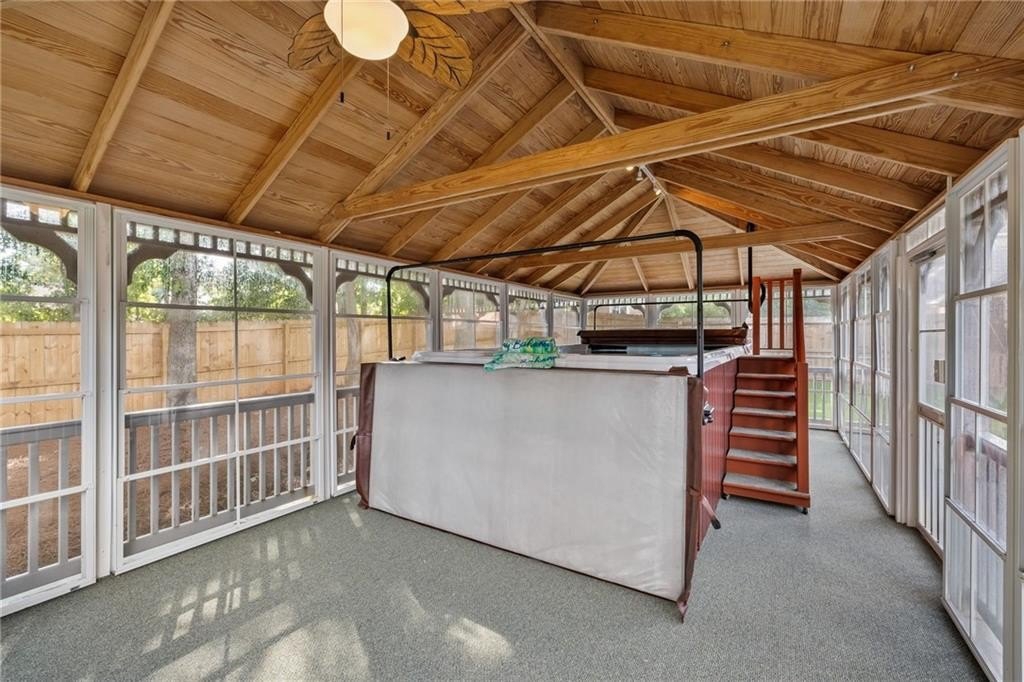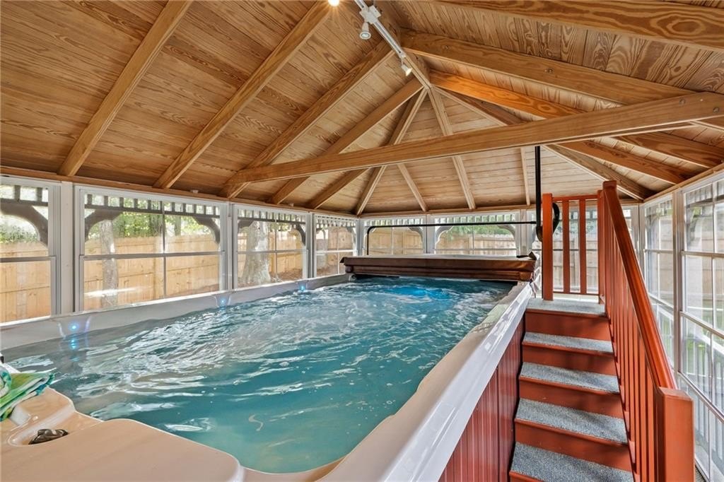Discover the perfect blend of modern elegance and timeless charm in this fully renovated 3-bedroom, 2.5-bath ranch home, ideally situated in one of Lawrenceville’s most peaceful and desirable neighborhoods. From the moment you step inside, you’ll be greeted by soaring ceilings, abundant natural light, and refined architectural details that give the home a sense of luxury and spaciousness. Every detail has been meticulously updated — fresh interior paint, plush new carpeting, designer light fixtures, and thoughtful upgrades in every room. The open floor plan flows seamlessly, creating inviting spaces for both everyday living and entertaining. The true crown jewel of this property is the private, fenced-in backyard retreat. Here, a grand gazebo encompasses a lap pool with a soothing jacuzzi water feature — the perfect setting for swimming laps, enjoying low-impact exercise, or simply unwinding with friends and family. The expansive patio and lush surroundings offer endless opportunities for outdoor dining, gatherings, and relaxation. This move-in ready home is not only beautiful but also functional, offering comfort, style, and a rare backyard escape just steps from your living room. Situated in a quiet, well-kept community, yet conveniently close to shops, dining, and top-rated schools, this Lawrenceville gem is truly one of a kind.