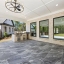 A private gated drive leads to a commanding façade adorned with brick, stone, and architectural metal roof accents. The grounds are equally impressive, with a large, pool-ready backyard and multiple outdoor living areas, including double covered decks that frame serene views and invite year-round enjoyment.