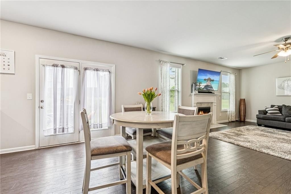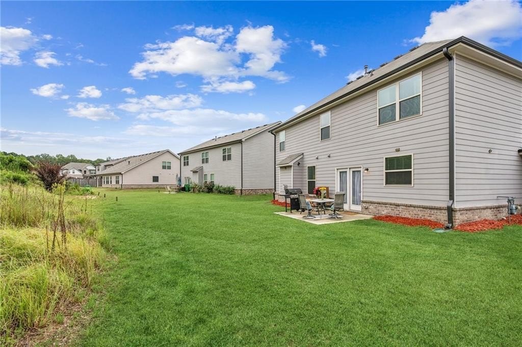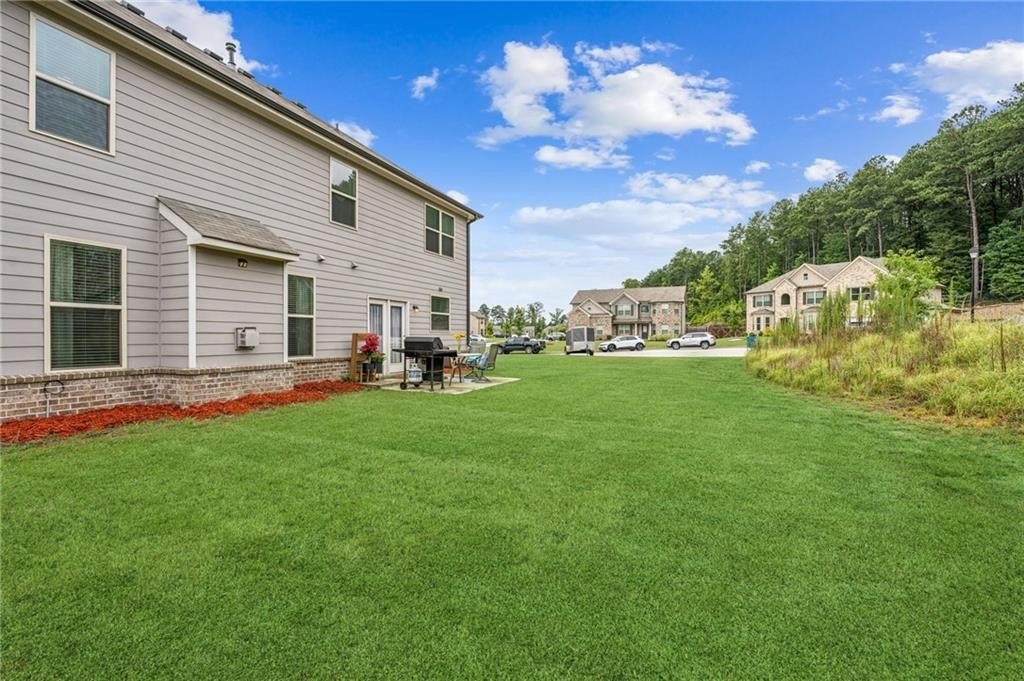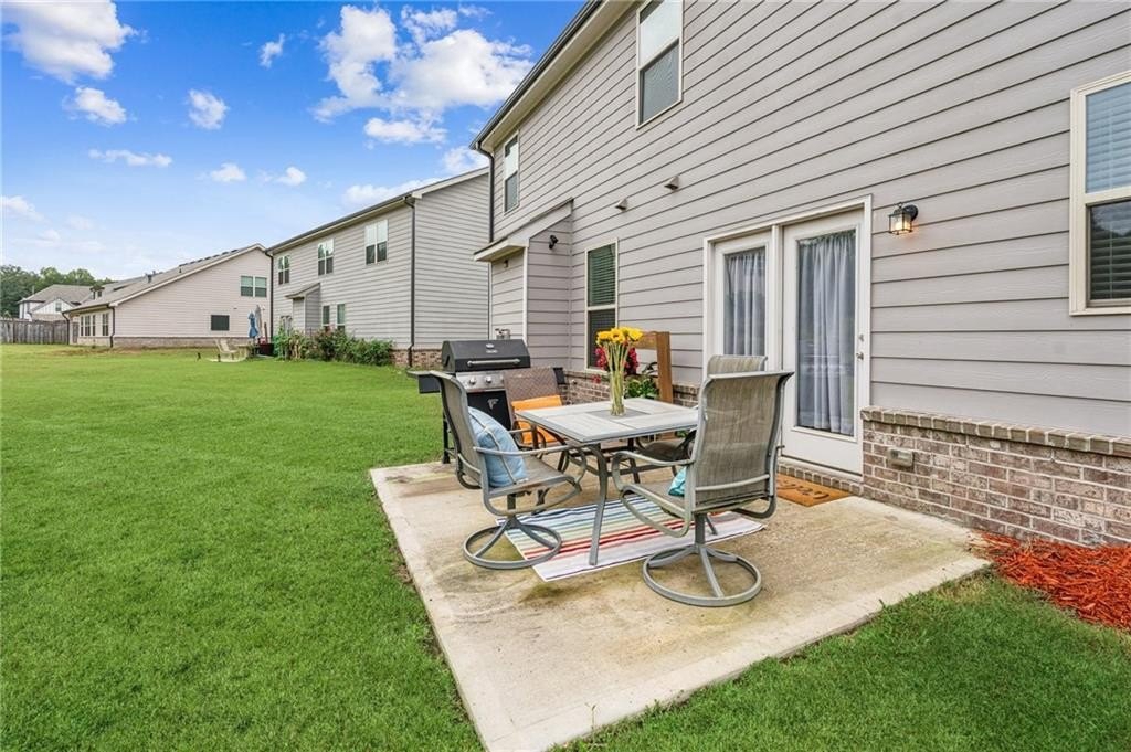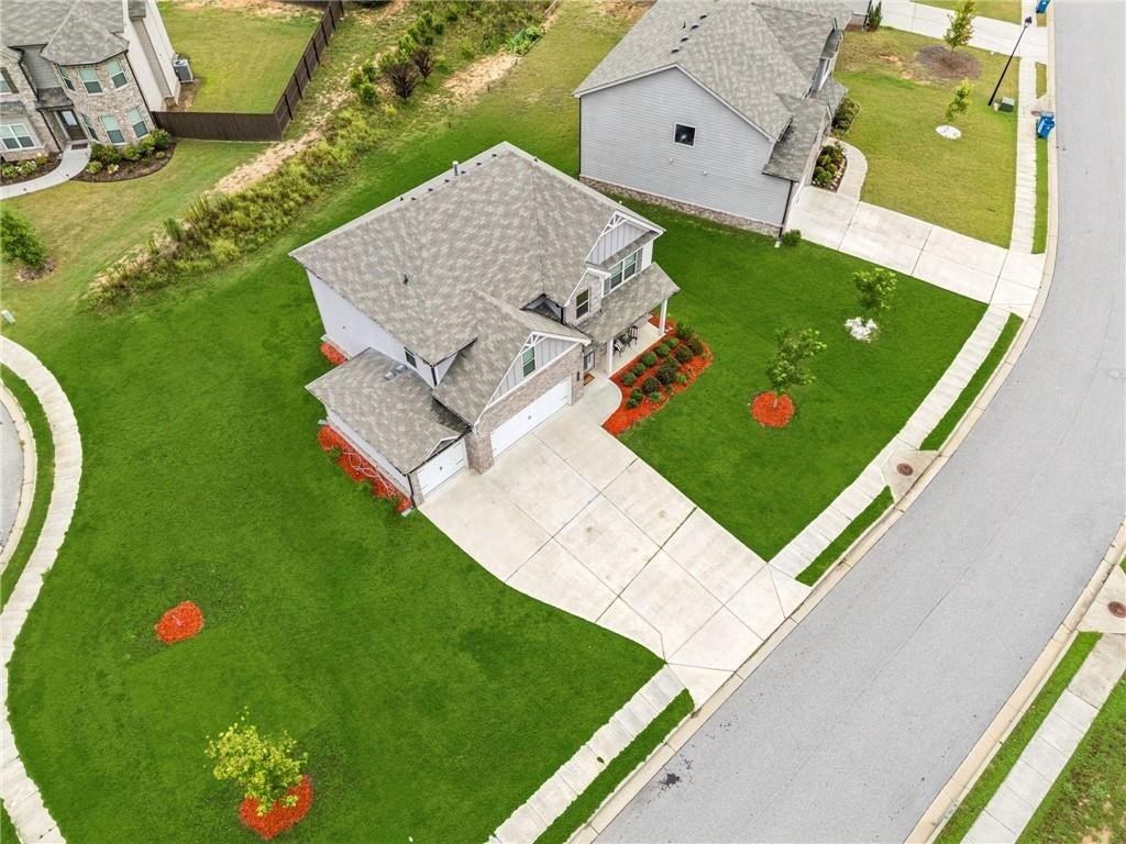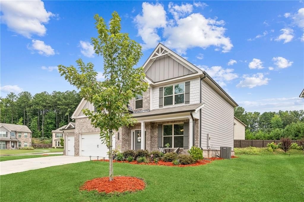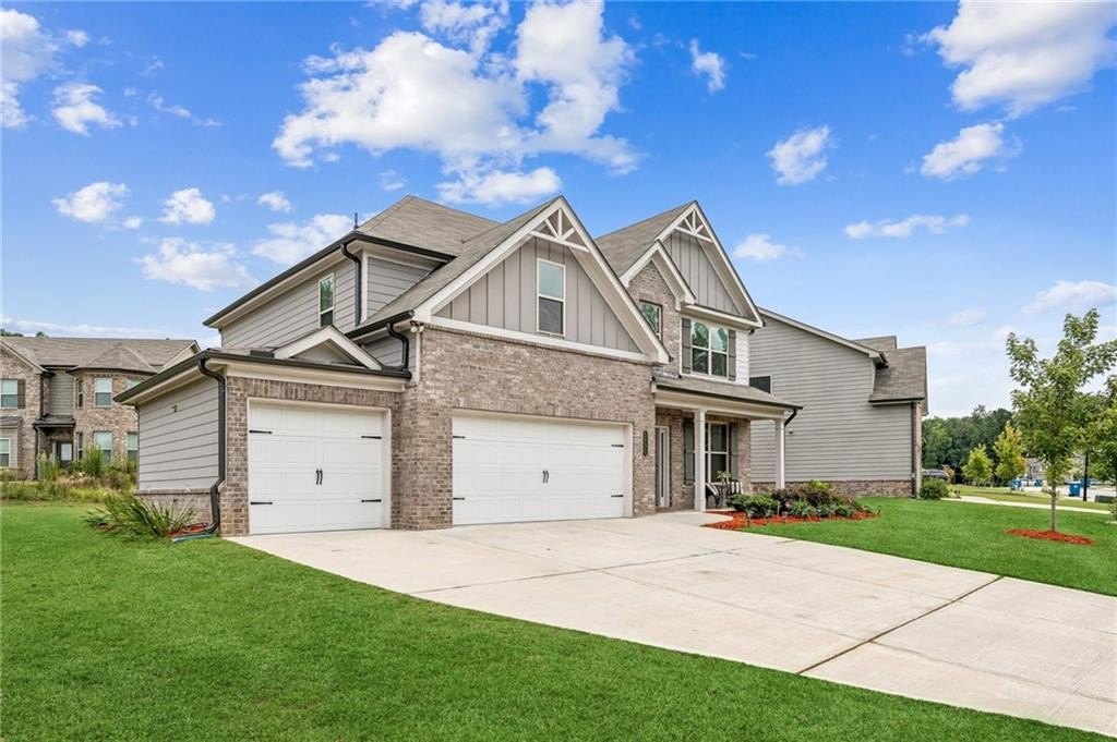 Welcome to this stunning 4-bedroom, 2.5-bath home that perfectly combines style and functionality. Located on a desirable corner lot with a brick and Shake-front exterior and a spacious 3-car garage, this home is just minutes from all the best that Lawrenceville has to offer. Step inside to discover LVP flooring flowing throughout most of the main level. A versatile dining or flex space greets you at the entrance, while a hallway leads to a convenient half bath before opening into the inviting main living area. The open floor plan features a cozy family room with a white fireplace flanked by two windows filling the space with natural light. and back stairs to access the upper level. Overlooking the family room, the beautifully appointed eat-in kitchen offers granite countertops, gray and white cabinetry, stainless steel appliances, a center island, and plenty of room for a breakfast table. A charming patio just off the kitchen makes outdoor dining or relaxing a breeze. Upstairs, the oversized primary suite is a true retreat, complete with two walk-in closets, dual vanities, and a spa-inspired bath with a soaking tub and separate shower. The laundry room is conveniently located just outside the primary suite, and three additional bedrooms share a full bath, offering plenty of space for family or guests.This hone is located in the Mountainview School district and offers easy access to I-85 and 316. It is located less than 10 minutes to the Gwinnett Stripers stadium, The Exchange, Mall of Georgia, and Downtown Lawrenceville, and less than 20 minutes to Chateau Elan and Lake Lanier. With simple elegance and tranquil living combined with Dining, Shopping, and Recreation, practically at your back door, you're not going to want to miss the opportunity to make this home your new reality!!