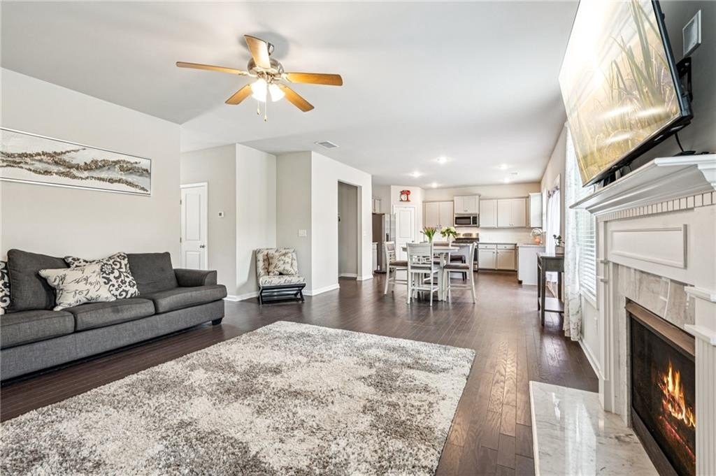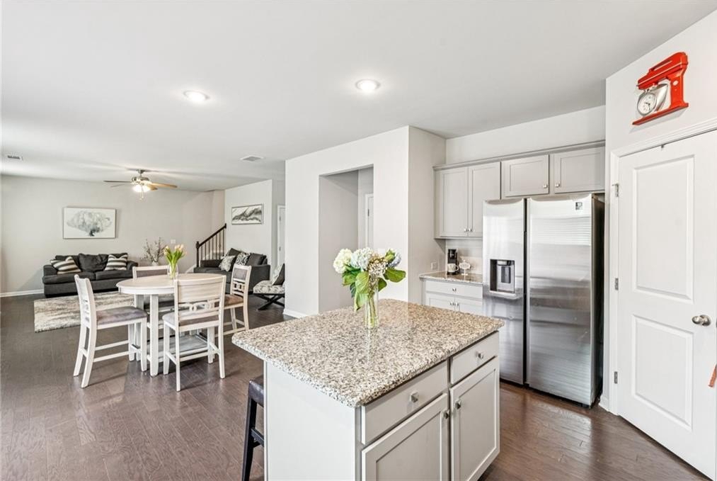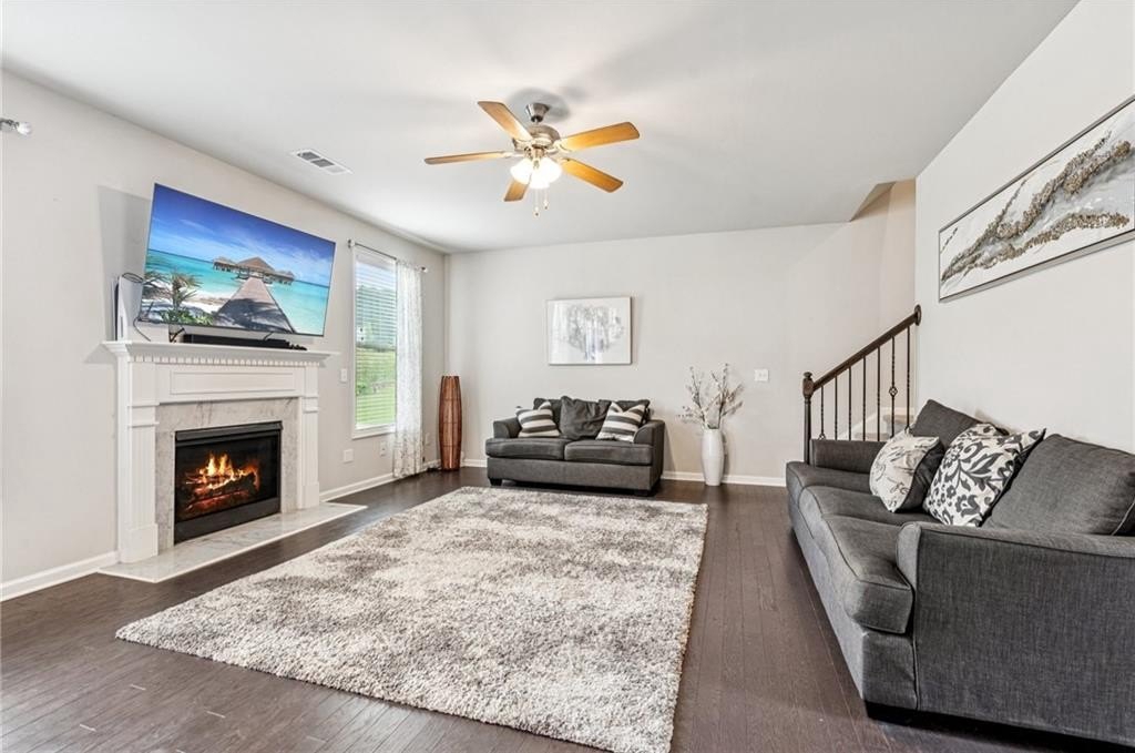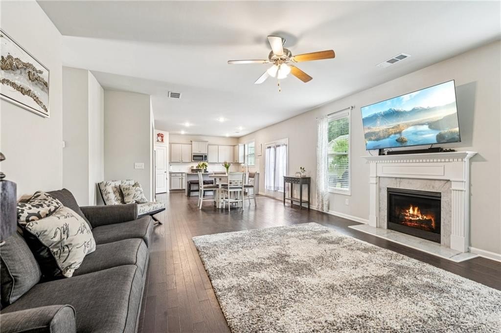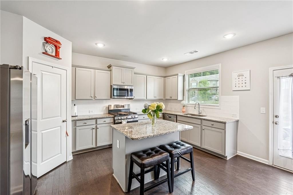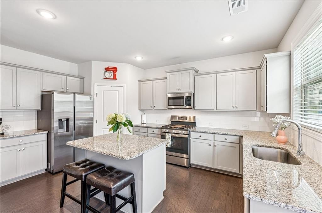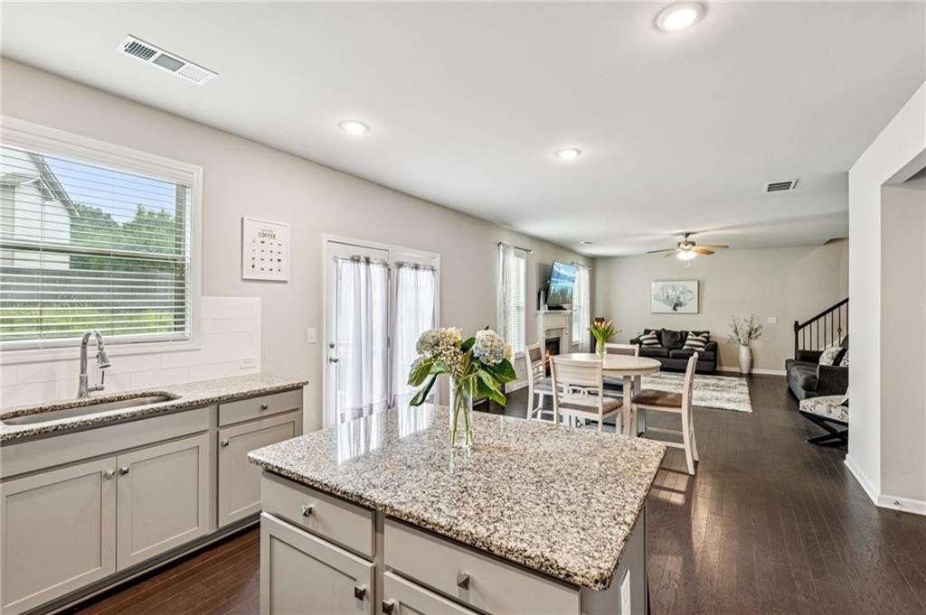 Welcome to this stunning 4-bedroom, 2.5-bath home that perfectly combines style and functionality. Located on a desirable corner lot with a brick and Shake-front exterior and a spacious 3-car garage, this home is just minutes from all the best that Lawrenceville has to offer. Step inside to discover LVP flooring flowing throughout most of the main level. A versatile dining or flex space greets you at the entrance, while a hallway leads to a convenient half bath before opening into the inviting main living area. The open floor plan features a cozy family room with a white fireplace flanked by two windows filling the space with natural light. and back stairs to access the upper level. Overlooking the family room, the beautifully appointed eat-in kitchen offers granite countertops, gray and white cabinetry, stainless steel appliances, a center island, and plenty of room for a breakfast table. A charming patio just off the kitchen makes outdoor dining or relaxing a breeze. Upstairs, the oversized primary suite is a true retreat, complete with two walk-in closets, dual vanities, and a spa-inspired bath with a soaking tub and separate shower. The laundry room is conveniently located just outside the primary suite, and three additional bedrooms share a full bath, offering plenty of space for family or guests.This hone is located in the Mountainview School district and offers easy access to I-85 and 316. It is located less than 10 minutes to the Gwinnett Stripers stadium, The Exchange, Mall of Georgia, and Downtown Lawrenceville, and less than 20 minutes to Chateau Elan and Lake Lanier. With simple elegance and tranquil living combined with Dining, Shopping, and Recreation, practically at your back door, you're not going to want to miss the opportunity to make this home your new reality!!