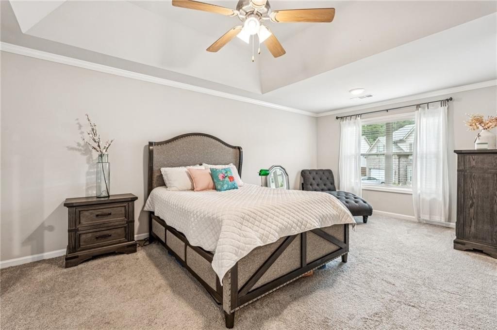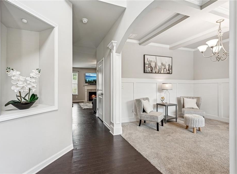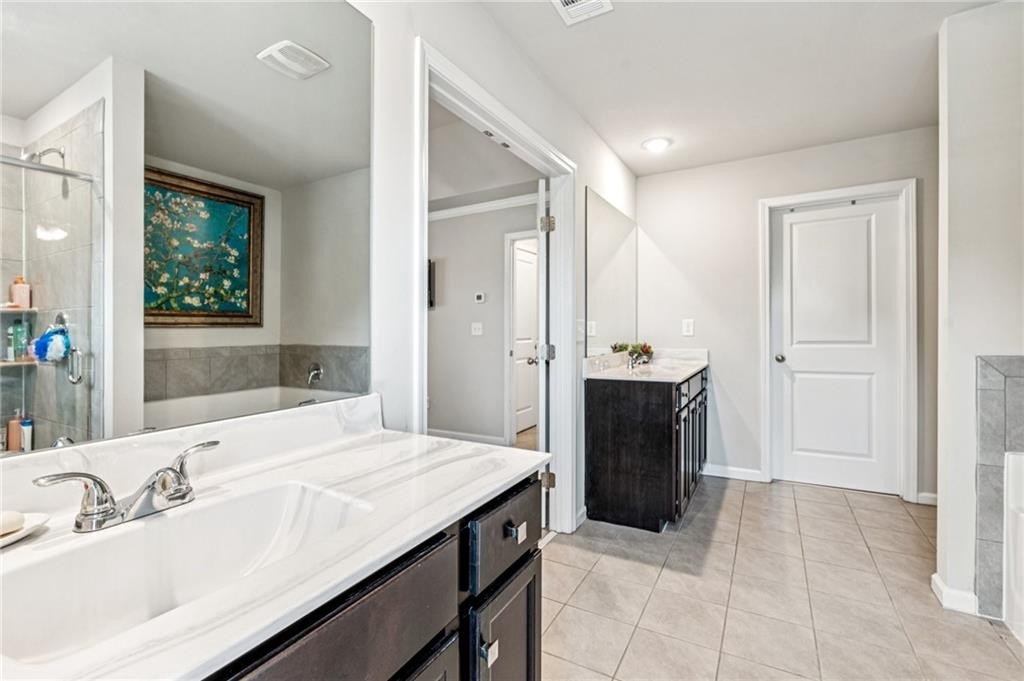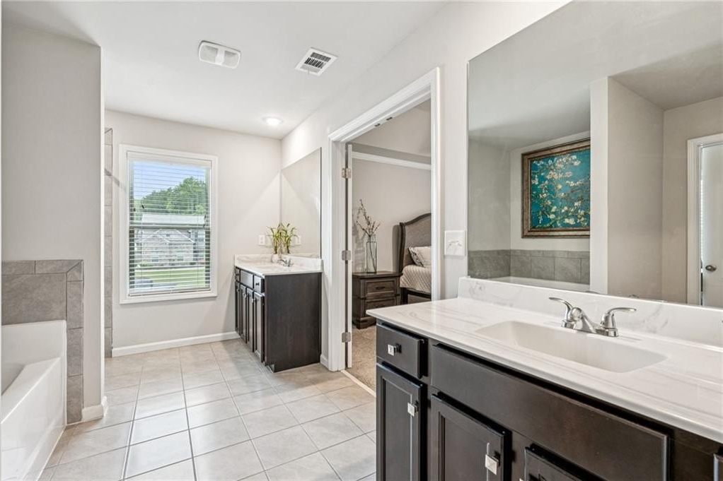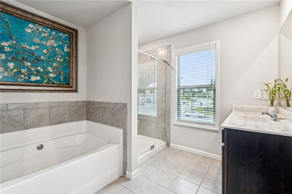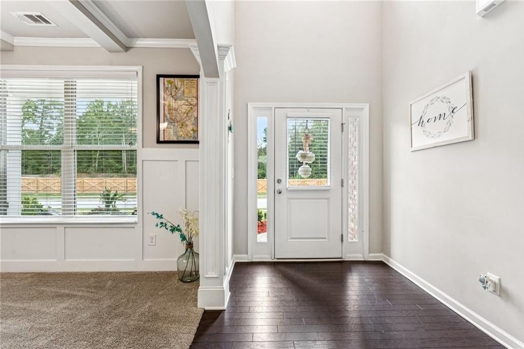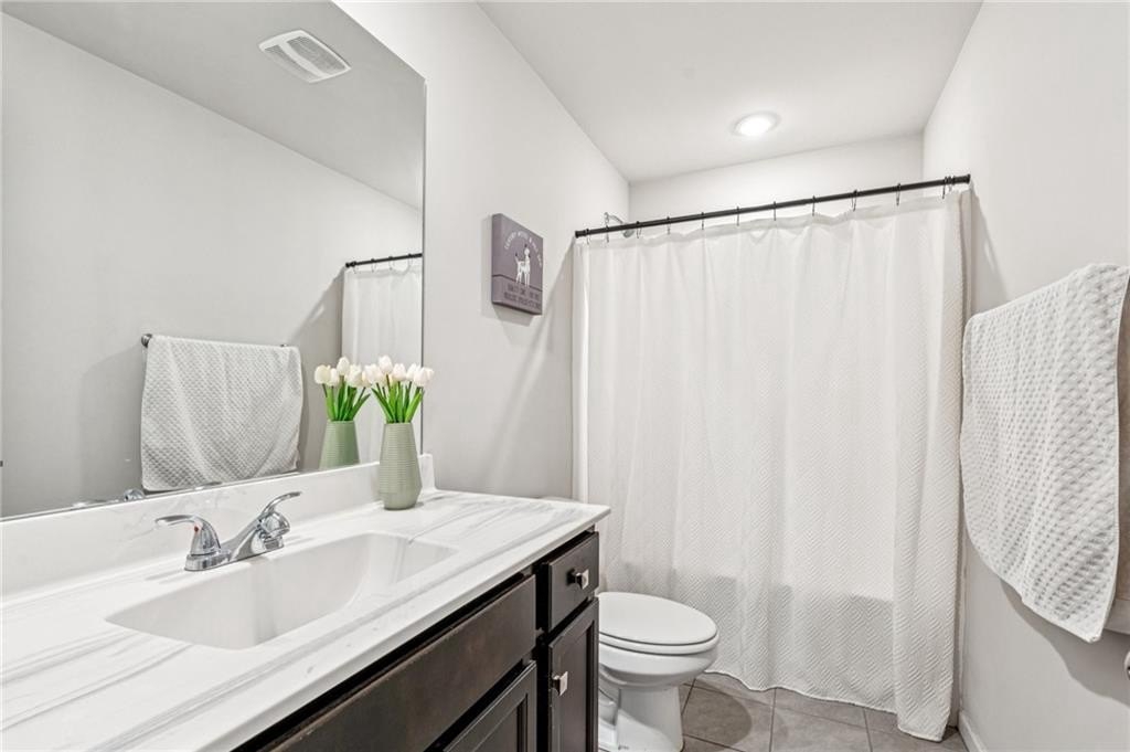 Welcome to this stunning 4-bedroom, 2.5-bath home that perfectly combines style and functionality. Located on a desirable corner lot with a brick and Shake-front exterior and a spacious 3-car garage, this home is just minutes from all the best that Lawrenceville has to offer. Step inside to discover LVP flooring flowing throughout most of the main level. A versatile dining or flex space greets you at the entrance, while a hallway leads to a convenient half bath before opening into the inviting main living area. The open floor plan features a cozy family room with a white fireplace flanked by two windows filling the space with natural light. and back stairs to access the upper level. Overlooking the family room, the beautifully appointed eat-in kitchen offers granite countertops, gray and white cabinetry, stainless steel appliances, a center island, and plenty of room for a breakfast table. A charming patio just off the kitchen makes outdoor dining or relaxing a breeze. Upstairs, the oversized primary suite is a true retreat, complete with two walk-in closets, dual vanities, and a spa-inspired bath with a soaking tub and separate shower. The laundry room is conveniently located just outside the primary suite, and three additional bedrooms share a full bath, offering plenty of space for family or guests.This hone is located in the Mountainview School district and offers easy access to I-85 and 316. It is located less than 10 minutes to the Gwinnett Stripers stadium, The Exchange, Mall of Georgia, and Downtown Lawrenceville, and less than 20 minutes to Chateau Elan and Lake Lanier. With simple elegance and tranquil living combined with Dining, Shopping, and Recreation, practically at your back door, you're not going to want to miss the opportunity to make this home your new reality!!