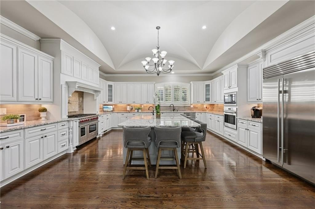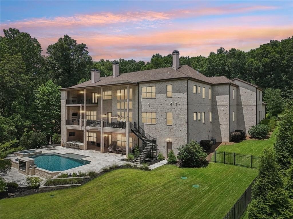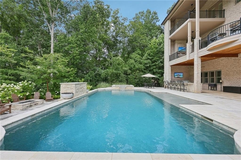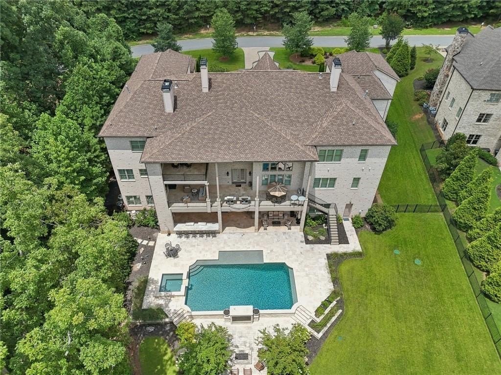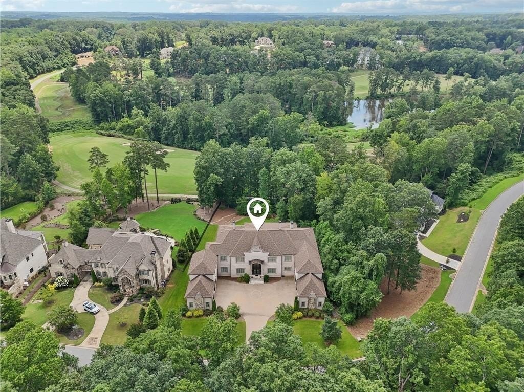 An architectural masterpiece in a gated community, on the 5th hole of Echelon Golf Club, this custom estate delivers approximately 17,000 square feet of elevated living with 7 bedrooms, 8 full baths, and 3 half baths. Highlights include: elevator access to all three levels, whole-home generator, whole-house water filtrations system, multiple laundry rooms, his and hers garages with parking for six vehicles, Integrated Sonos smart system for lighting, climate, sound, and security. Every detail in this home has been thoughtfully curated from the soaring ceilings to the intricate architectural elements found in each room. No two ceilings are the same, with custom designs that elevate the home's aesthetic and create a sense of grandeur in every space. The main level boasts expansive living and dining areas, a stunning chef's kitchen with premium appliances, and a catering kitchen/scullery with walk-in pantry for seamless entertaining. All seven bedrooms are private retreats, each with its own en-suite bath and walk-in closet. The luxurious primary suite features a spa-like bath, oversized custom closet, and a private covered terrace with a fireplace and serene golf course views. The terrace level is a destination of its own, designed for entertaining and relaxation. Highlights include a state-of-the-art GolfZON golf simulator, dedicated home theater with Atmos professional grade audio system, sports bar, pool table area, sauna, steam room, and a quiet guest suite with private access to the pool. Step outside to your resort-style oasis featuring a saltwater pool with waterfall features, fire bowls, a Baja sun shelf, and a fully equipped outdoor kitchen and grilling area all overlooking the fairway. This is more than a home, it's an experience. With unmatched attention to detail, an ideal golf course location, and proximity to top-rated schools, fine dining, and amenities, this is truly one of North Atlanta's most extraordinary offerings. Echelon is an exclusive golf community home to one of Georgia's top-rated courses designed by Rees Jones. Spanning 600 acres of picturesque rolling hills, Echelon features a premier 32-acre practice facility and offers breathtaking views throughout. Ideally situated near Avalon, Halcyon, Vickery, Crabapple, Downtown Roswell, Hwy 9, and GA 400-this location blends privacy with convenience. Benefit from Cherokee County taxes.