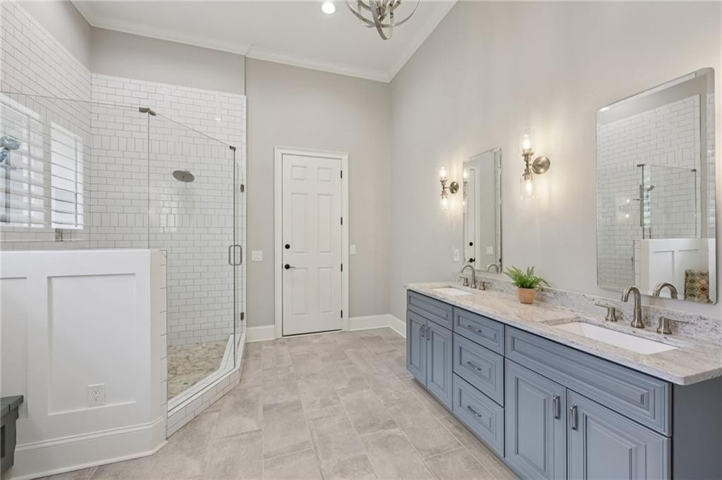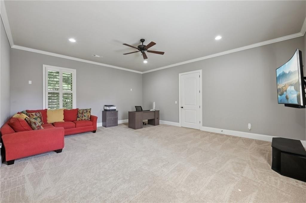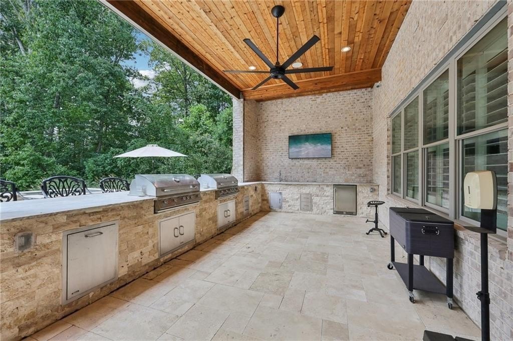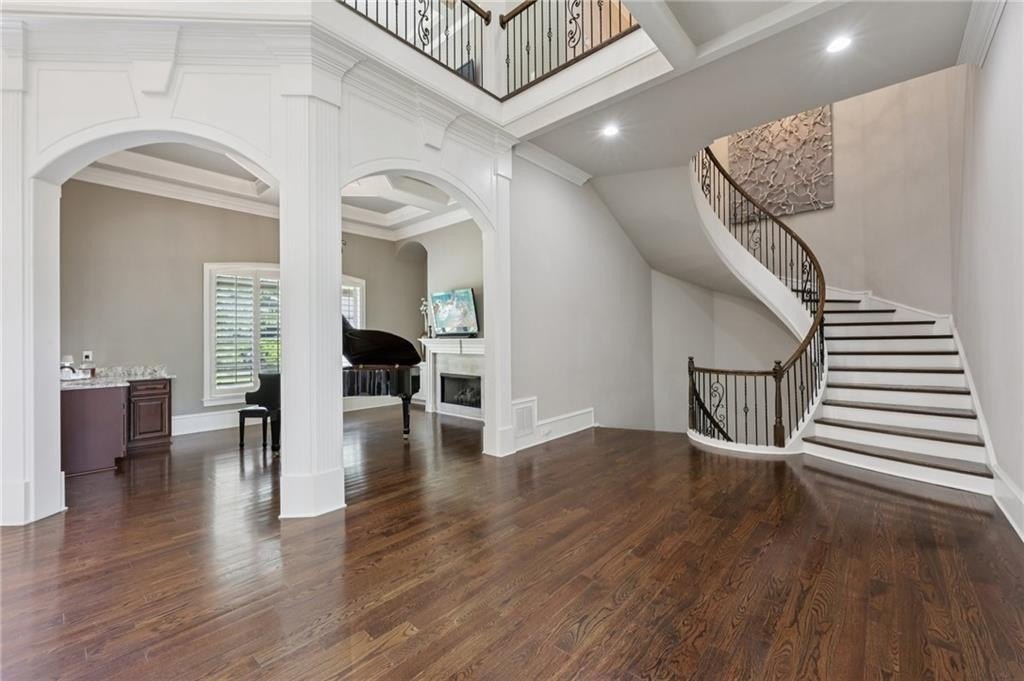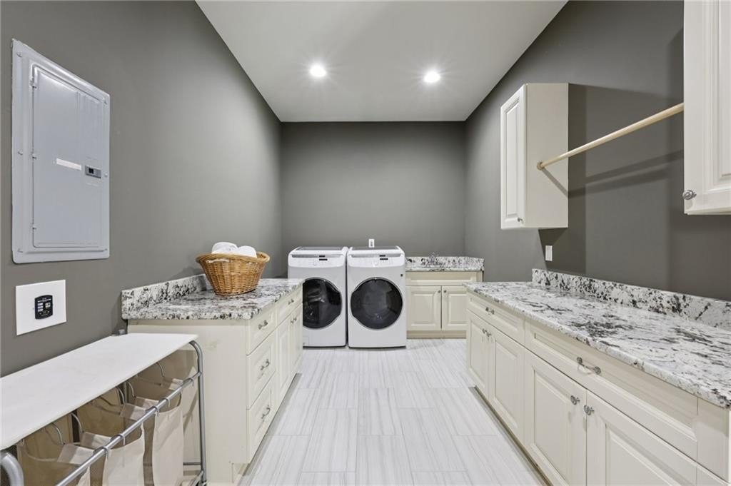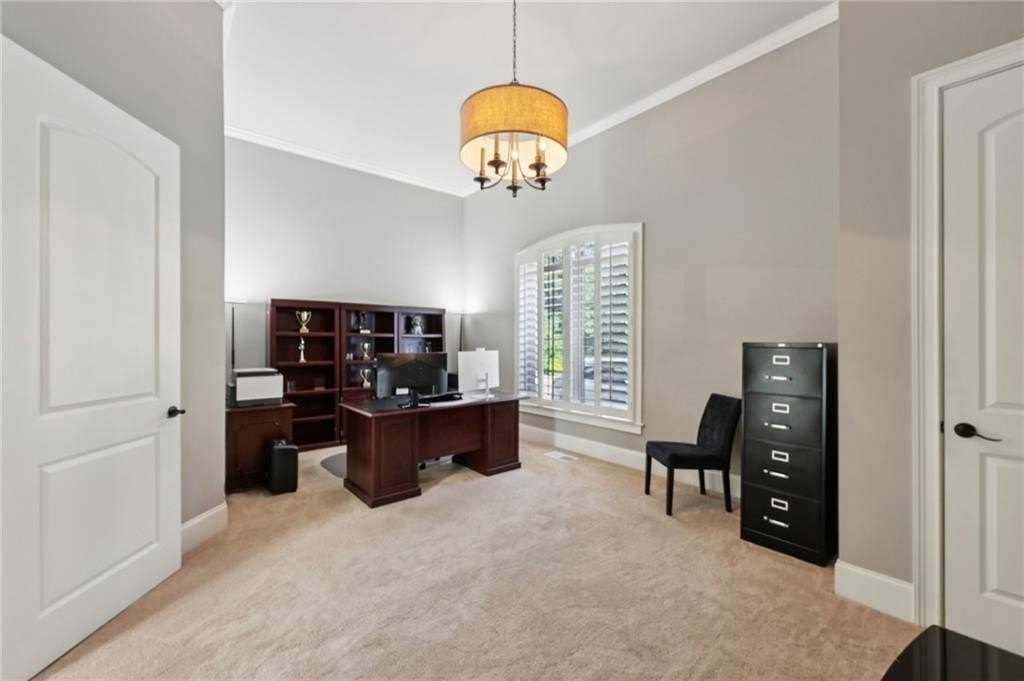 An architectural masterpiece in a gated community, on the 5th hole of Echelon Golf Club, this custom estate delivers approximately 17,000 square feet of elevated living with 7 bedrooms, 8 full baths, and 3 half baths. Highlights include: elevator access to all three levels, whole-home generator, whole-house water filtrations system, multiple laundry rooms, his and hers garages with parking for six vehicles, Integrated Sonos smart system for lighting, climate, sound, and security. Every detail in this home has been thoughtfully curated from the soaring ceilings to the intricate architectural elements found in each room. No two ceilings are the same, with custom designs that elevate the home's aesthetic and create a sense of grandeur in every space. The main level boasts expansive living and dining areas, a stunning chef's kitchen with premium appliances, and a catering kitchen/scullery with walk-in pantry for seamless entertaining. All seven bedrooms are private retreats, each with its own en-suite bath and walk-in closet. The luxurious primary suite features a spa-like bath, oversized custom closet, and a private covered terrace with a fireplace and serene golf course views. The terrace level is a destination of its own, designed for entertaining and relaxation. Highlights include a state-of-the-art GolfZON golf simulator, dedicated home theater with Atmos professional grade audio system, sports bar, pool table area, sauna, steam room, and a quiet guest suite with private access to the pool. Step outside to your resort-style oasis featuring a saltwater pool with waterfall features, fire bowls, a Baja sun shelf, and a fully equipped outdoor kitchen and grilling area all overlooking the fairway. This is more than a home, it's an experience. With unmatched attention to detail, an ideal golf course location, and proximity to top-rated schools, fine dining, and amenities, this is truly one of North Atlanta's most extraordinary offerings. Echelon is an exclusive golf community home to one of Georgia's top-rated courses designed by Rees Jones. Spanning 600 acres of picturesque rolling hills, Echelon features a premier 32-acre practice facility and offers breathtaking views throughout. Ideally situated near Avalon, Halcyon, Vickery, Crabapple, Downtown Roswell, Hwy 9, and GA 400-this location blends privacy with convenience. Benefit from Cherokee County taxes.