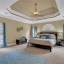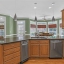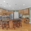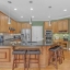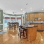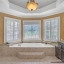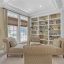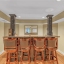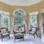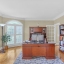 Inside, warm, naturally lit spaces feature hardwood floors, custom wood trim, and coffered and tray ceilings. The two-story foyer opens to a private office with French doors and a formal dining room. The kitchen boasts stone countertops, a spacious island, and an open layout overlooking the fireside family room. A sunroom and wet bar adjacent to the living area provide additional space for entertaining or relaxing.