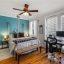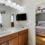 Two upper-level suites feature spa-style baths with double vanities, walk-in showers, and a jetted tub. A third bedroom on the lower level includes a full bath and overhead speakers great for guests, a home office, or media lounge.