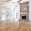 A two-story foyer with hardwood floors and a chandelier welcomes you inside. The updated kitchen includes quartz countertops, stainless steel appliances, white cabinetry, a walk-in pantry, and a breakfast nook. It opens to the living room with a stone fireplace and access to the newly re-planked deck overlooking the backyard—an ideal space for entertaining.