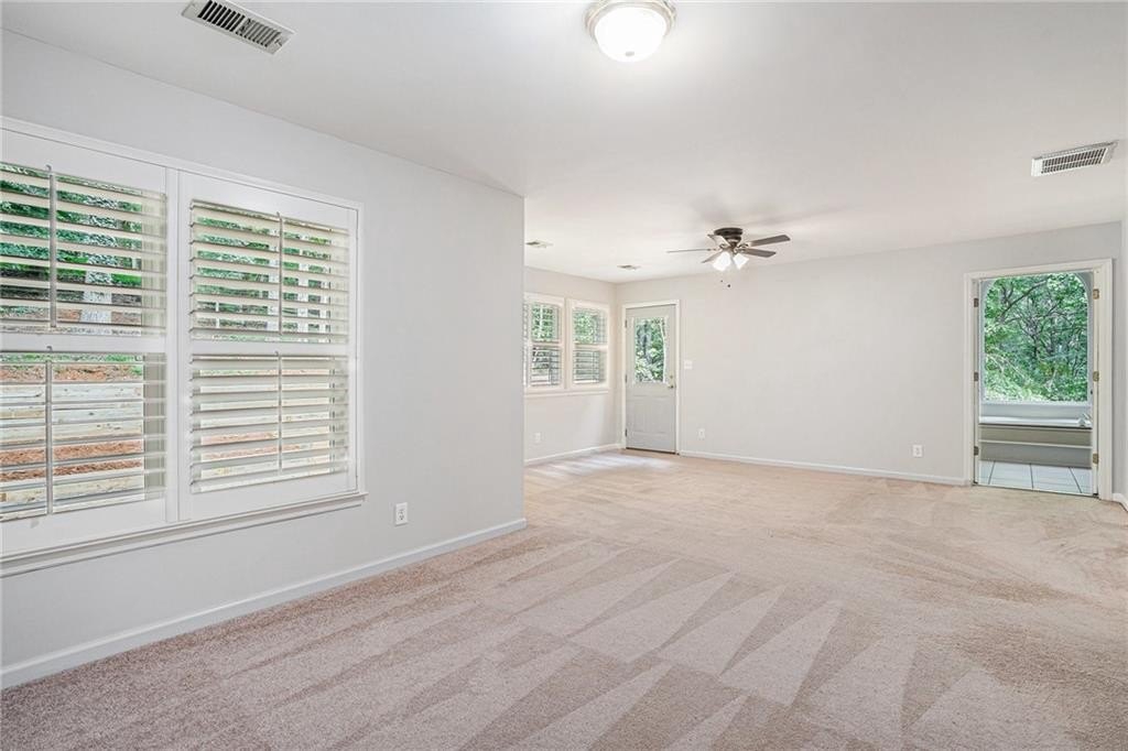 This spacious home offers a thoughtful layout and plenty of versatile living space. The main level features a welcoming living room, separate dining room, and a cozy family room with a fireplace. The eat-in kitchen boasts solid surface countertops and opens to both a deck and a screened-in porch—perfect for outdoor dining and relaxation. A two-car garage with a dedicated storage area provides added convenience. The finished basement includes a laundry area, full bathroom, and a versatile bonus room ideal for a media space, gym, or guest suite. Upstairs, the primary suite is a true retreat with its own fireplace, sitting area, private deck, walk-in closet, and spa-like ensuite with dual vanities, a whirlpool tub, and a separate shower. Two additional bedrooms and a flexible room—perfect for a home office or nursery—complete the upper level.