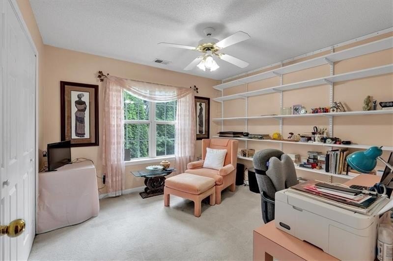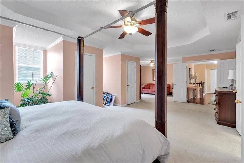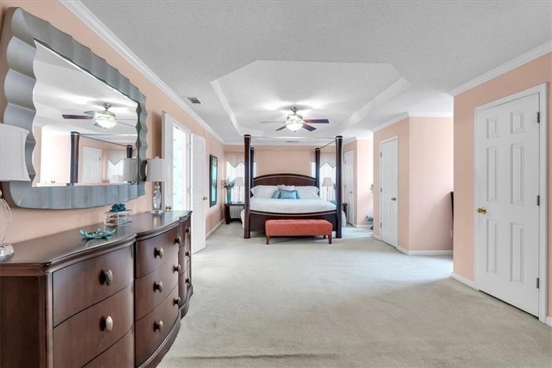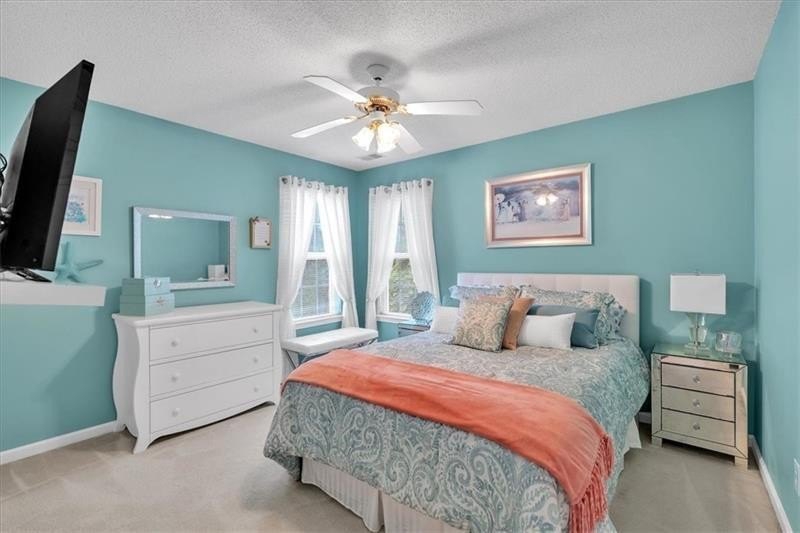 Upstairs, retreat to the OVERSIZED PRIMARY SUITE, complete with a spacious SITTING ROOM, a WALK-IN CLOSET, and TWO ADDITIONAL CLOSETS—just part of the ABUNDANT STORAGE found throughout the home. The secondary bedrooms are ROOMY AND FILLED WITH NATURAL LIGHT, with PLUSH CARPETING underfoot.