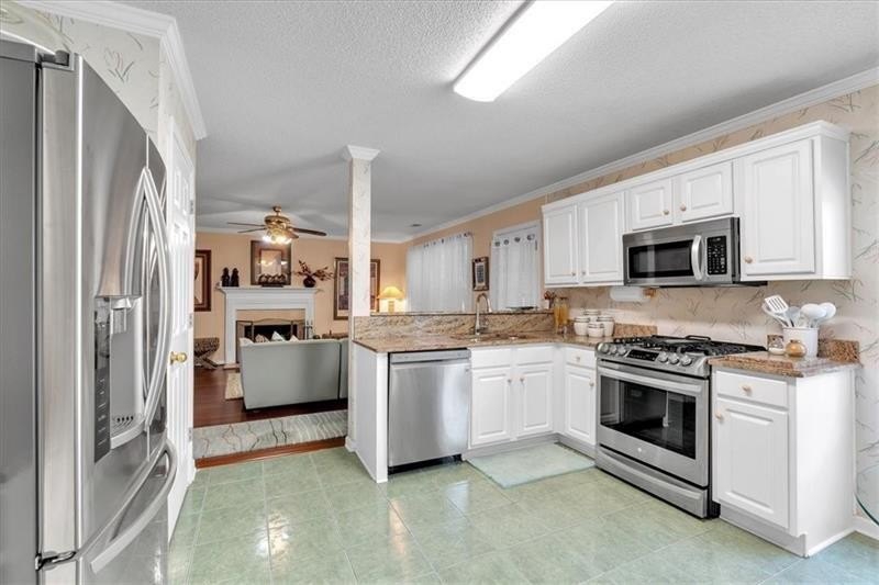 The heart of the home is the EAT-IN KITCHEN, featuring STAINLESS STEEL APPLIANCES and direct access to both the FORMAL DINING ROOM and a COZY SUNROOM, perfect for casual mornings or evening relaxation. A SEPARATE SITTING AREA near the entryway makes an ideal HOME OFFICE or peaceful reading nook.