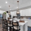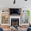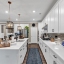 The Open kitchen features bright white shaker style cabinets with white quartz countertops,herringbone tile backsplash, stainless steel vent hood, wall oven and microwave, gas cooktop, a HUGE Island with bar seating and a large walk-in pantry. The Kitchen is open to the dining and living areas. The owners have added extensive customer trim work throughout the entire main living area. The Living Room features a gas fireplace open to morning room which is filled with light.
