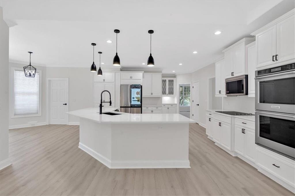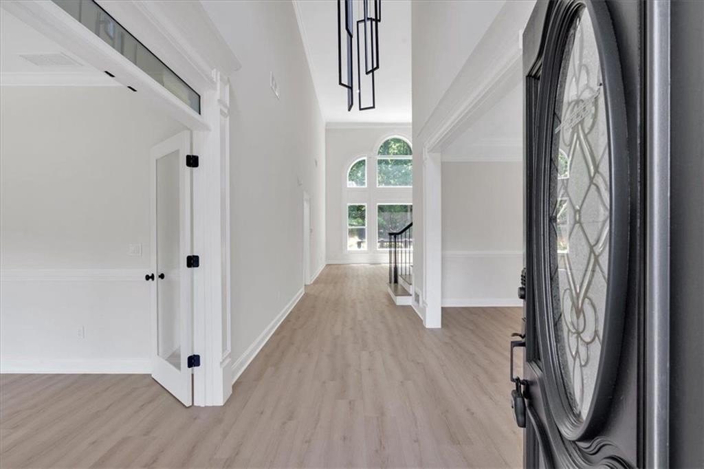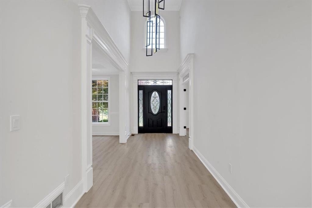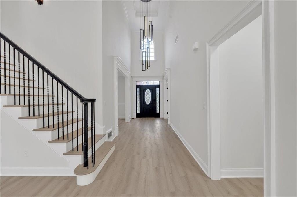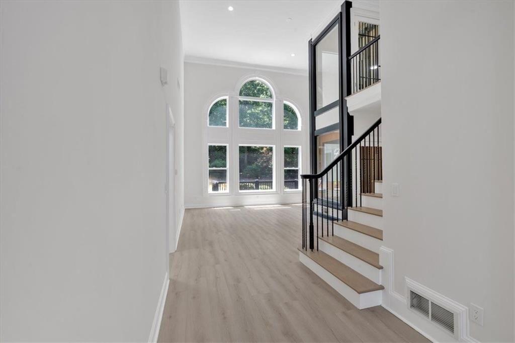 WOW... This is the one you’ve been waiting for! Nestled in the prestigious and private enclave of Stratford Estates, this show-stopping residence has been completely transformed with high-end designer finishes and thoughtful upgrades throughout. From the moment you step inside, you’ll be captivated by soaring ceilings, a dazzling chandelier, and a dramatic three-story all-glass elevator — the ultimate statement of modern luxury. To your left, a sophisticated office; to your right, an elegant dining room perfect for entertaining. The heart of the home is the fully reimagined chef’s kitchen, featuring premium stainless steel appliances, white cabinetry, custom backsplash, designer pendant lighting, a massive center island, hidden walk-in pantry, eat-in breakfast area, and an abundance of natural light. The main level also features a spacious fireside family room, guest powder room, oversized laundry room, and a luxurious primary suite. The primary bedroom offers generous closet space and a spa-like en-suite bathroom complete with a freestanding soaking tub, frameless glass shower, dual vanities, private water closet, and sleek, modern finishes. Upstairs you'll find three generously sized bedrooms and a full, beautifully updated bathroom. The fully finished lower level is an entertainer’s dream — featuring multiple flex spaces including a game room, movie/media room, bonus living room, optional bedrooms, and a large den perfect for multigenerational living or hosting guests. The exterior is equally impressive — situated on a quiet cul-de-sac lot with a brick façade, professional landscaping, a sprawling backyard, oversized deck for entertaining, and breathtaking views. The expansive driveway and epoxy-finished 3-car garage add even more appeal. Designer upgrades include: all new flooring, custom accent walls, upgraded lighting and trim, fully renovated bathrooms and kitchen, fresh interior and exterior paint, new roof and more. Ideally located just minutes from Northside Cherokee Hospital, I-575, historic downtown Canton, shopping, dining, and top-rated schools. This one-of-a-kind home blends timeless elegance with today’s most desired upgrades. Schedule your private showing today — luxury living awaits at 402 Stratford Estates.
