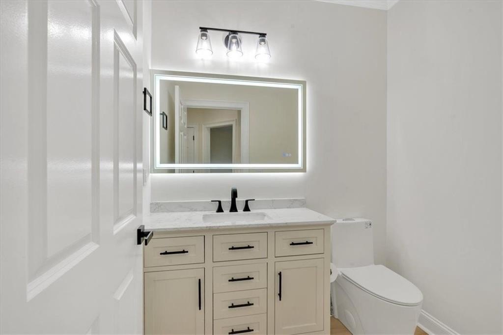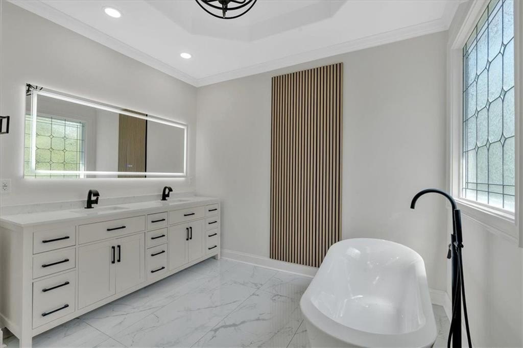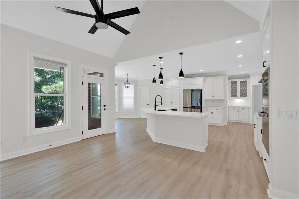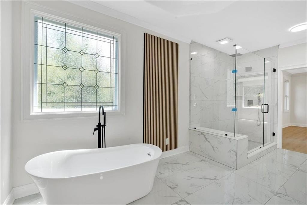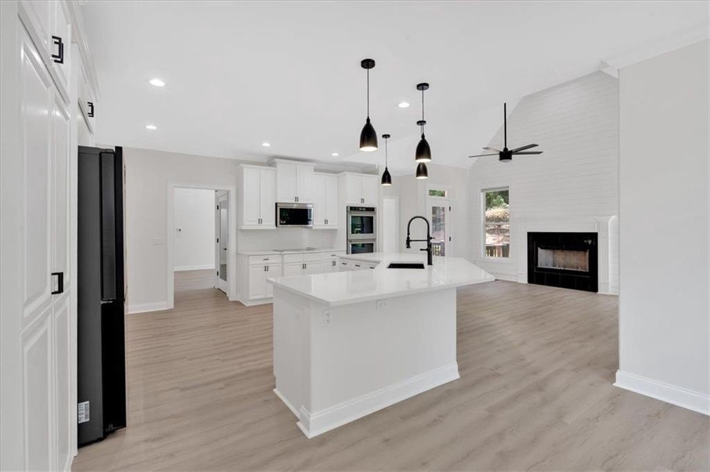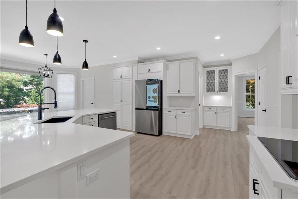WOW... This is the one you’ve been waiting for! Nestled in the prestigious and private enclave of Stratford Estates, this show-stopping residence has been completely transformed with high-end designer finishes and thoughtful upgrades throughout. From the moment you step inside, you’ll be captivated by soaring ceilings, a dazzling chandelier, and a dramatic three-story all-glass elevator — the ultimate statement of modern luxury. To your left, a sophisticated office; to your right, an elegant dining room perfect for entertaining. The heart of the home is the fully reimagined chef’s kitchen, featuring premium stainless steel appliances, white cabinetry, custom backsplash, designer pendant lighting, a massive center island, hidden walk-in pantry, eat-in breakfast area, and an abundance of natural light. The main level also features a spacious fireside family room, guest powder room, oversized laundry room, and a luxurious primary suite. The primary bedroom offers generous closet space and a spa-like en-suite bathroom complete with a freestanding soaking tub, frameless glass shower, dual vanities, private water closet, and sleek, modern finishes. Upstairs you'll find three generously sized bedrooms and a full, beautifully updated bathroom. The fully finished lower level is an entertainer’s dream — featuring multiple flex spaces including a game room, movie/media room, bonus living room, optional bedrooms, and a large den perfect for multigenerational living or hosting guests. The exterior is equally impressive — situated on a quiet cul-de-sac lot with a brick façade, professional landscaping, a sprawling backyard, oversized deck for entertaining, and breathtaking views. The expansive driveway and epoxy-finished 3-car garage add even more appeal. Designer upgrades include: all new flooring, custom accent walls, upgraded lighting and trim, fully renovated bathrooms and kitchen, fresh interior and exterior paint, new roof and more. Ideally located just minutes from Northside Cherokee Hospital, I-575, historic downtown Canton, shopping, dining, and top-rated schools. This one-of-a-kind home blends timeless elegance with today’s most desired upgrades. Schedule your private showing today — luxury living awaits at 402 Stratford Estates.