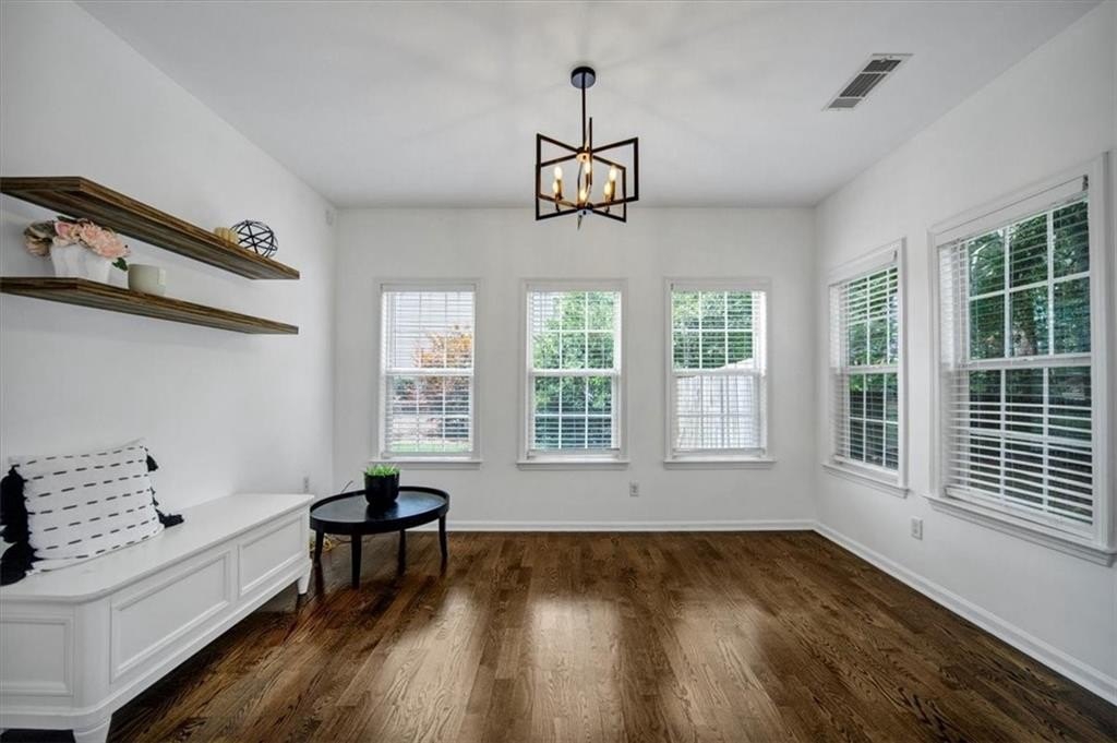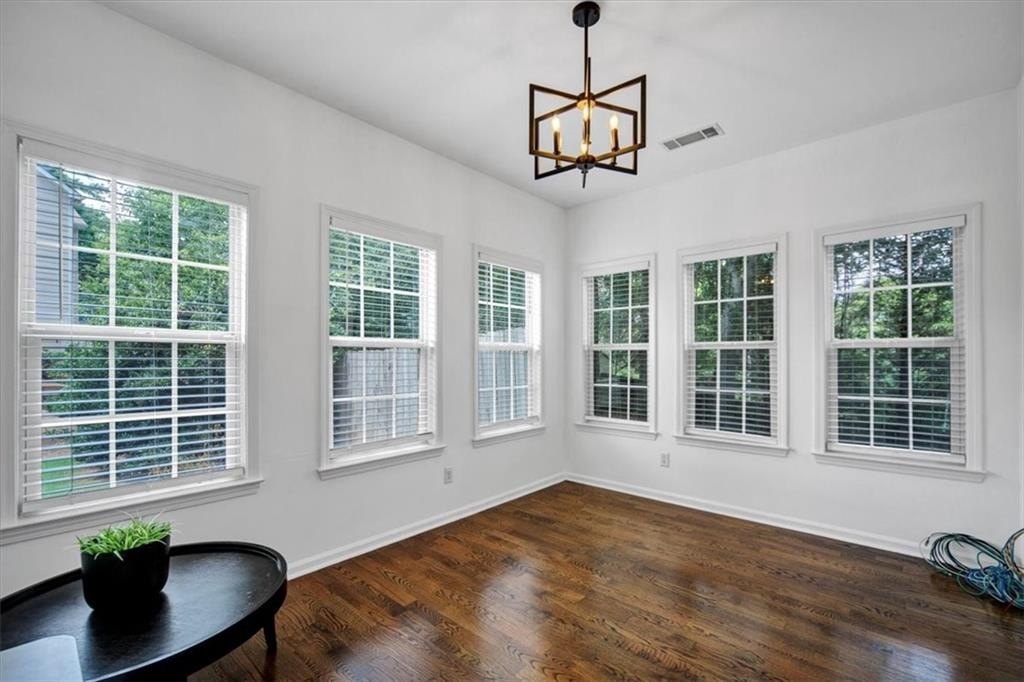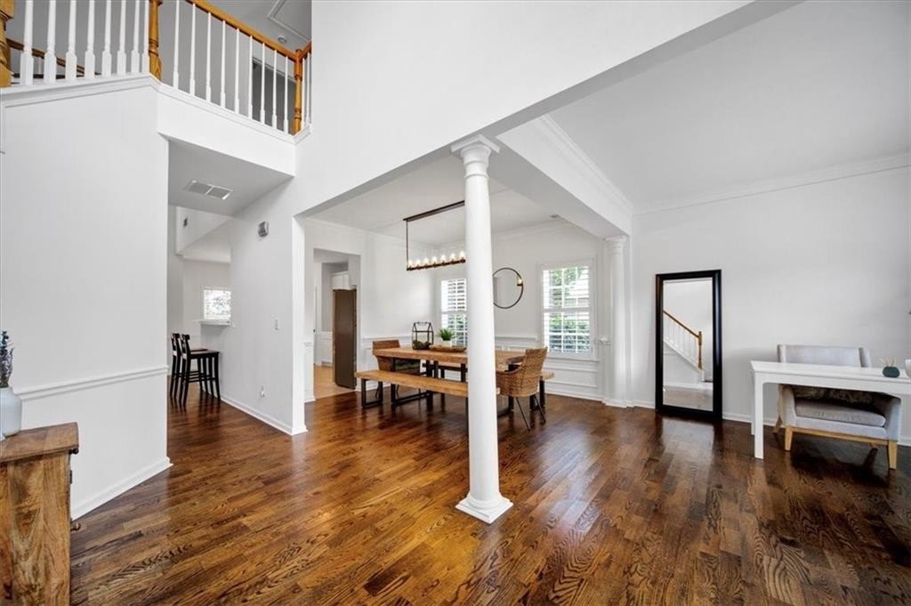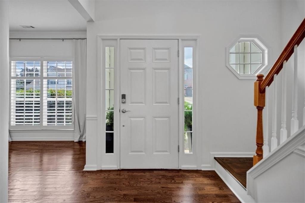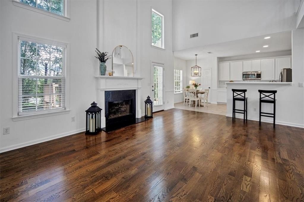 Introducing 5590 Kennemore Drive, an immaculate 3-bedroom, 2.5-bathroom home nestled on a peaceful lot in the sought-after Shepherds Pond neighborhood. Step into a world of elegance where custom WOOD FLOORS span the entire home, both upstairs and downstairs, offering a stunning look, easy maintenance, and no carpet. Upon entry, you are greeted by a 2-story foyer and office area or formal sitting space with windows adorned with plantation shutters. Enjoy the warmth and comfort of the generous living space, bathed in natural light, complemented by new lighting fixtures and a palette of neutral colors throughout.