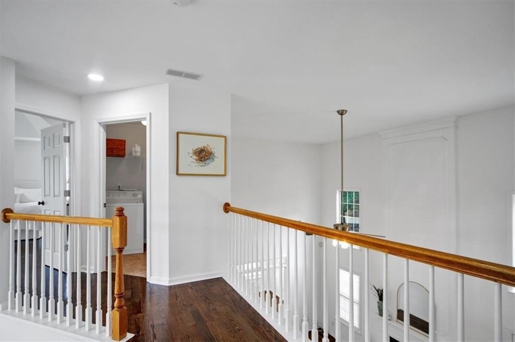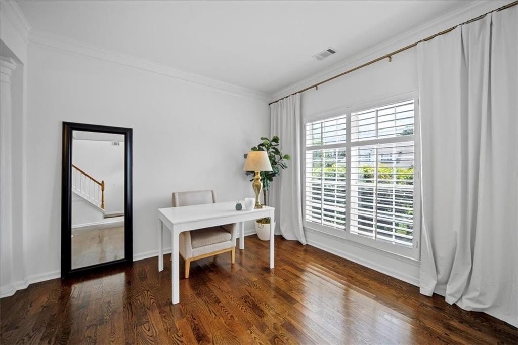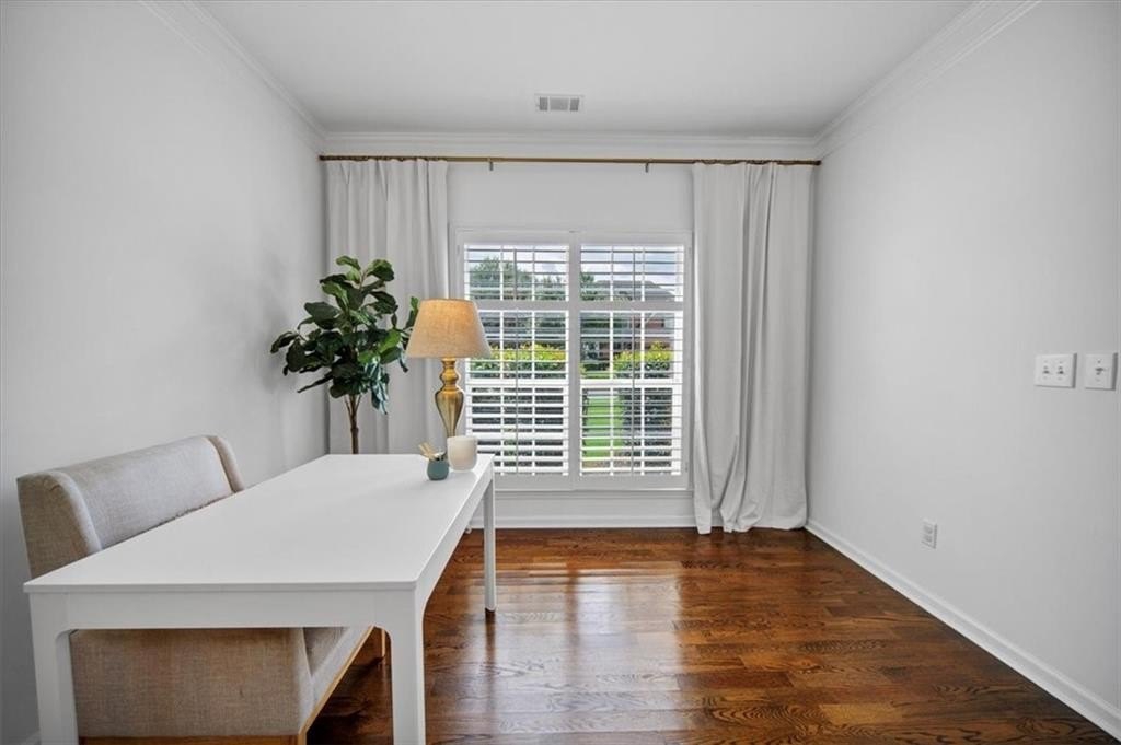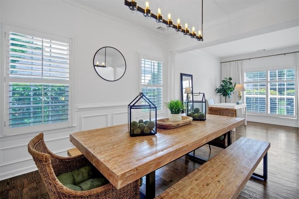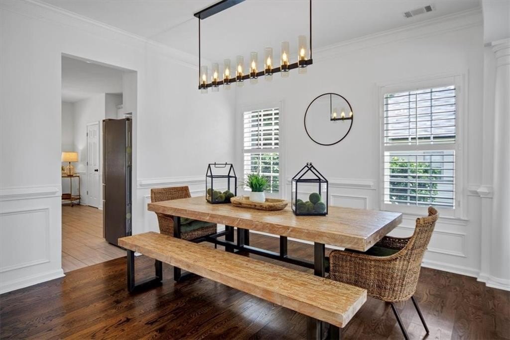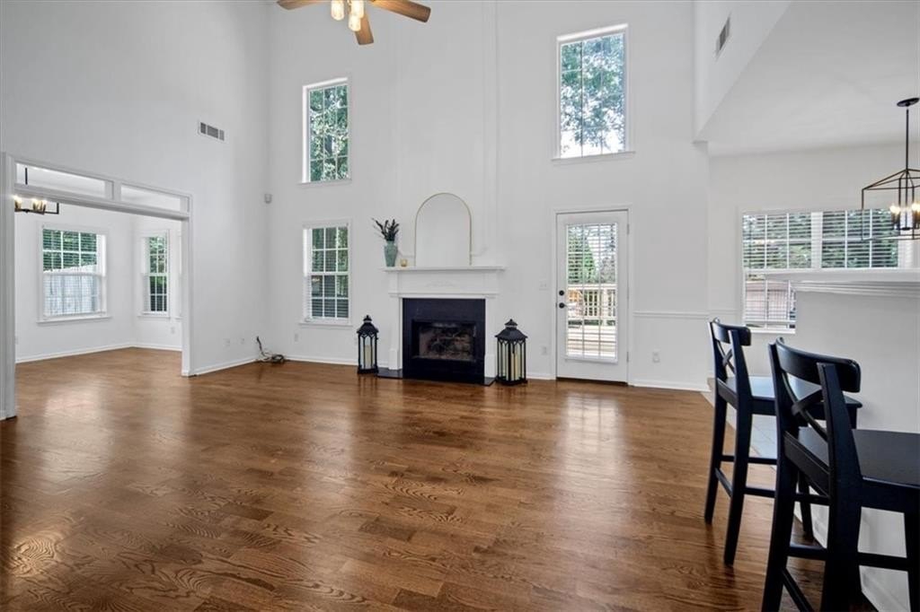 Introducing 5590 Kennemore Drive, an immaculate 3-bedroom, 2.5-bathroom home nestled on a peaceful lot in the sought-after Shepherds Pond neighborhood. Step into a world of elegance where custom WOOD FLOORS span the entire home, both upstairs and downstairs, offering a stunning look, easy maintenance, and no carpet. Upon entry, you are greeted by a 2-story foyer and office area or formal sitting space with windows adorned with plantation shutters. Enjoy the warmth and comfort of the generous living space, bathed in natural light, complemented by new lighting fixtures and a palette of neutral colors throughout.