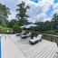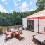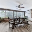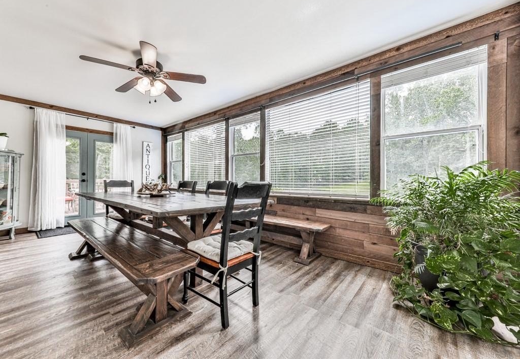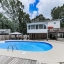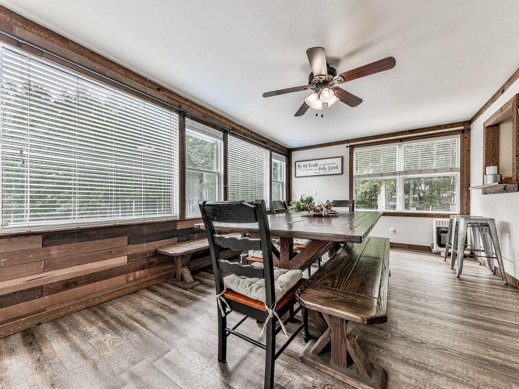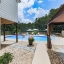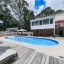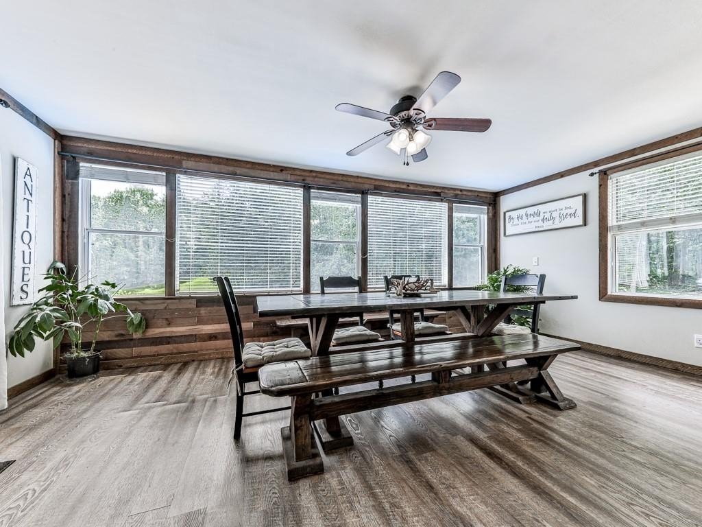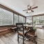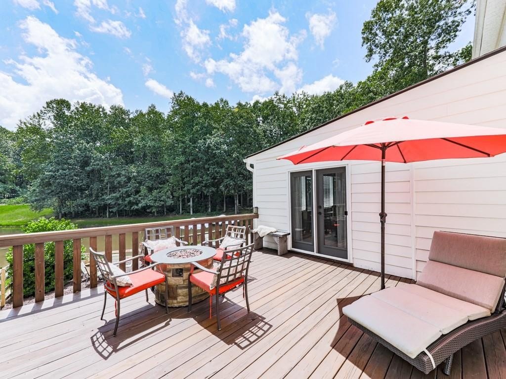 The bright and airy dining area is surrounded by large windows that flood the space with natural light and offer direct access to the rear deck overlooking the picturesque pond and pool. Upstairs, you'll find two generously sized bedrooms and a full bathroom.