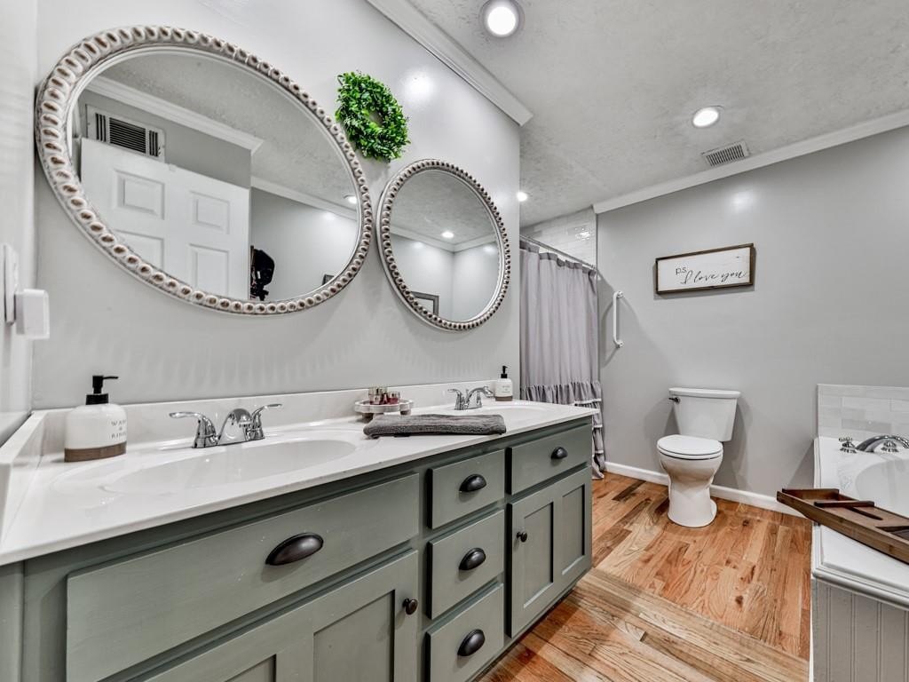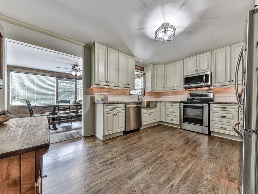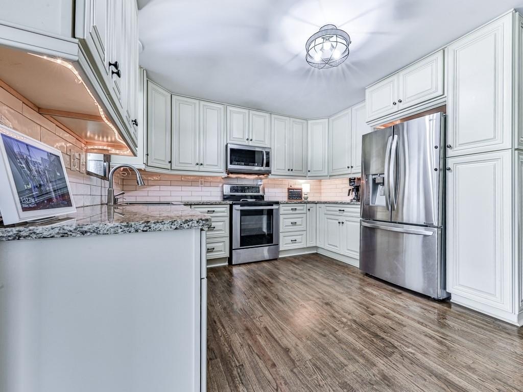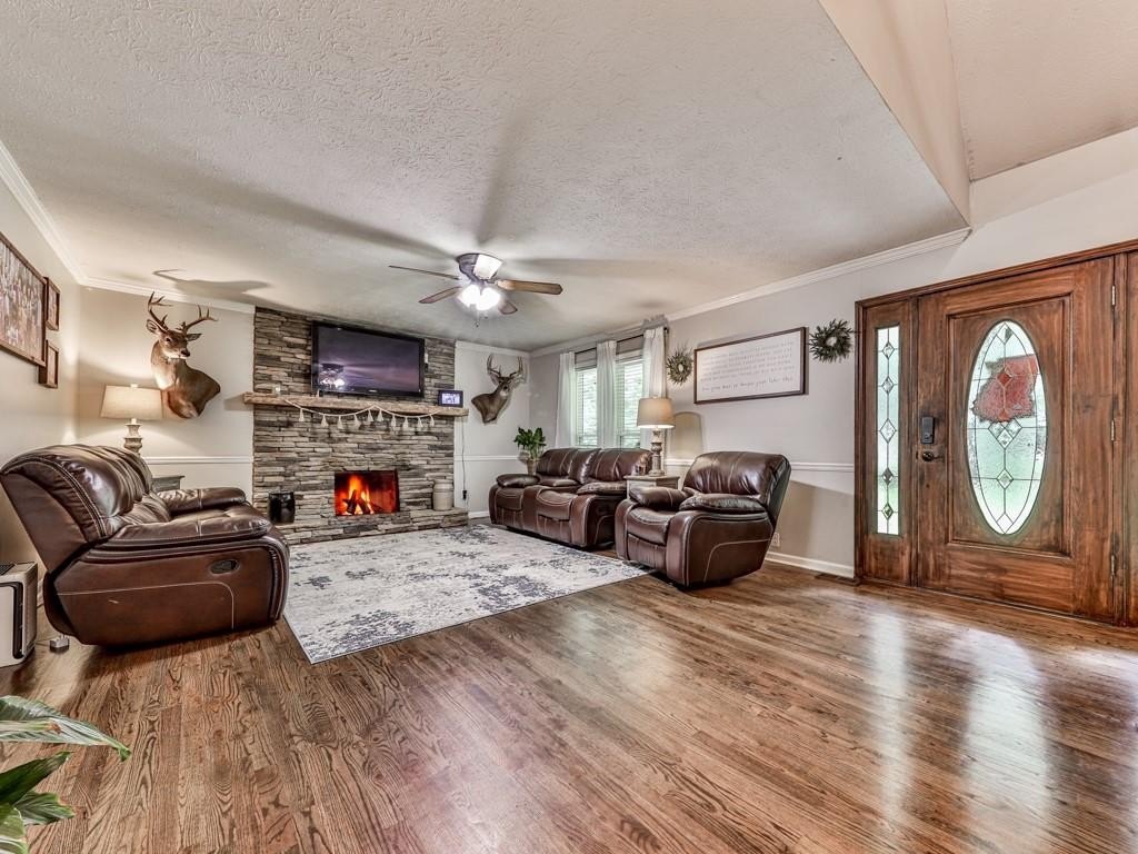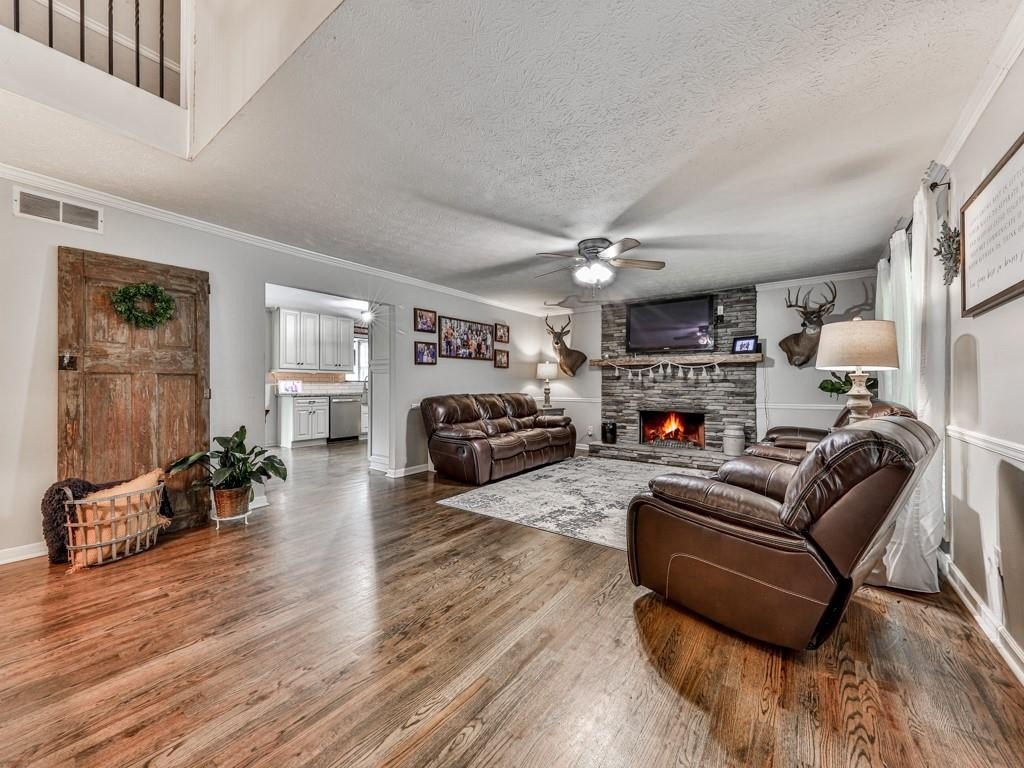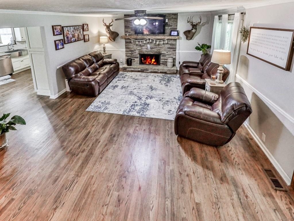 Step inside and be welcomed by a spacious family room adorned with gleaming hardwood floors and a stacked stone, wood-burning fireplace. The oversized primary suite is conveniently located on the main level and showcases a completely renovated en-suite bath (2024) with sleek, modern finishes. The main level also includes a laundry room and a stylish kitchen updated in 2020, featuring stainless steel appliances and plenty of cabinet space.