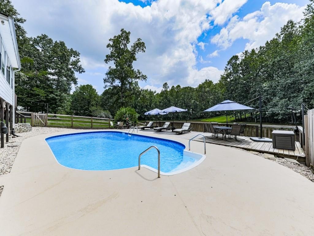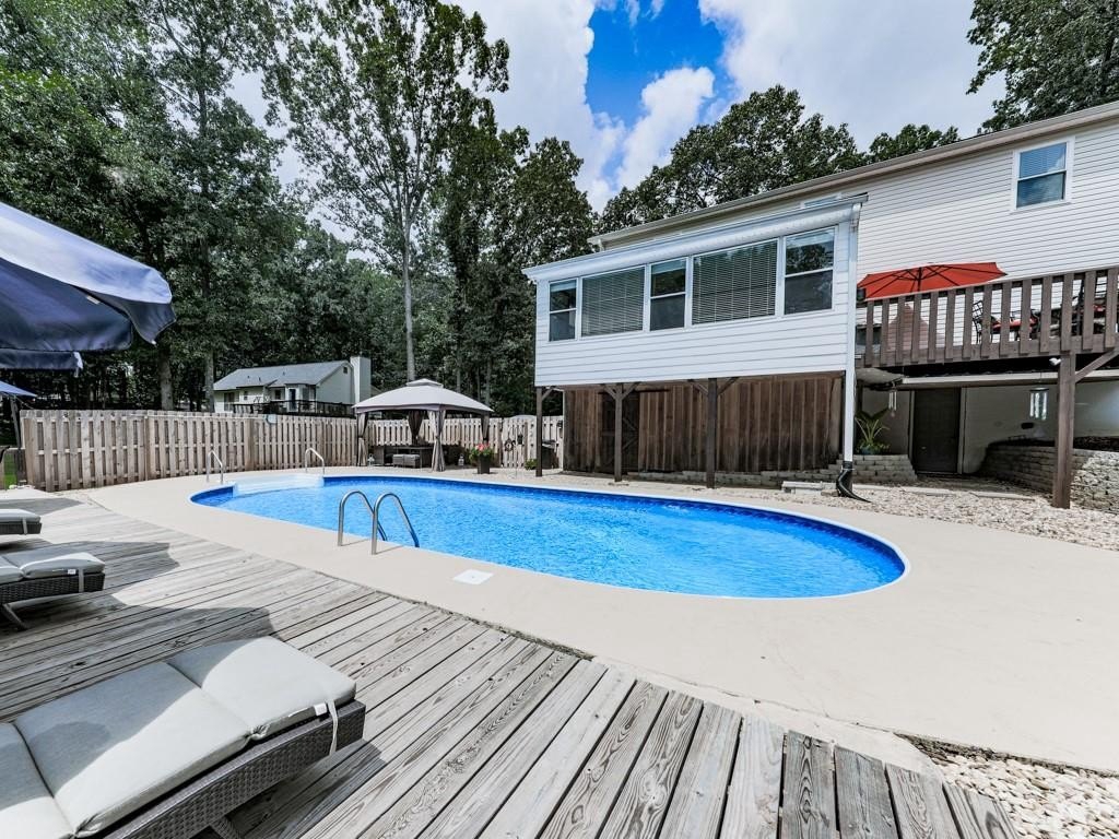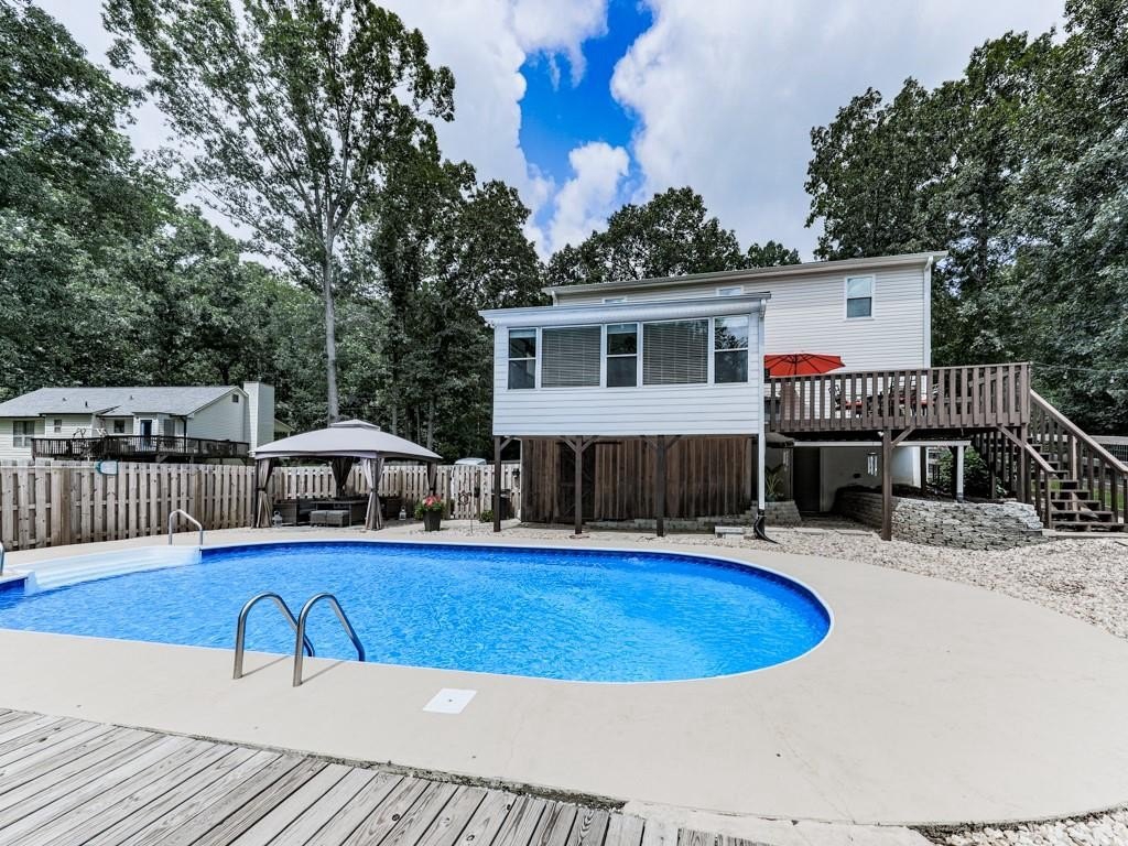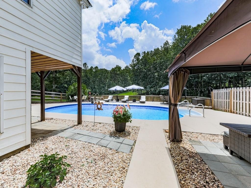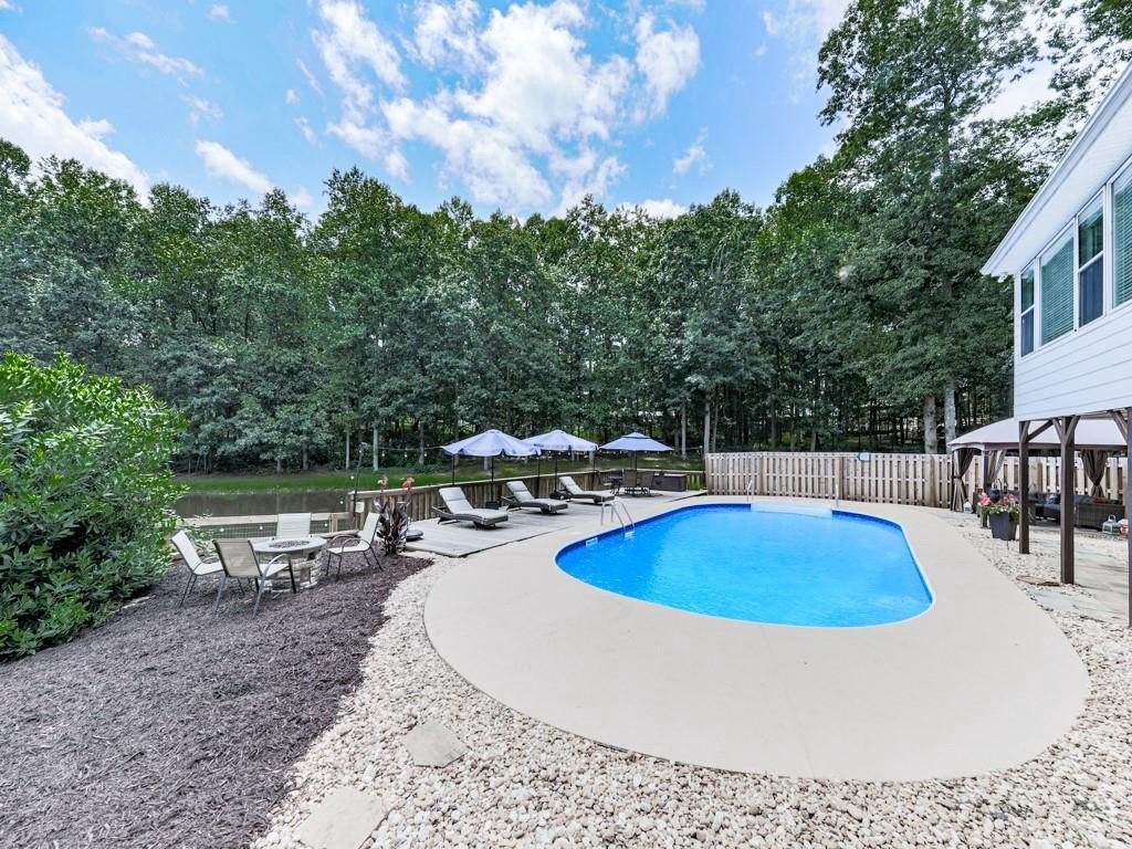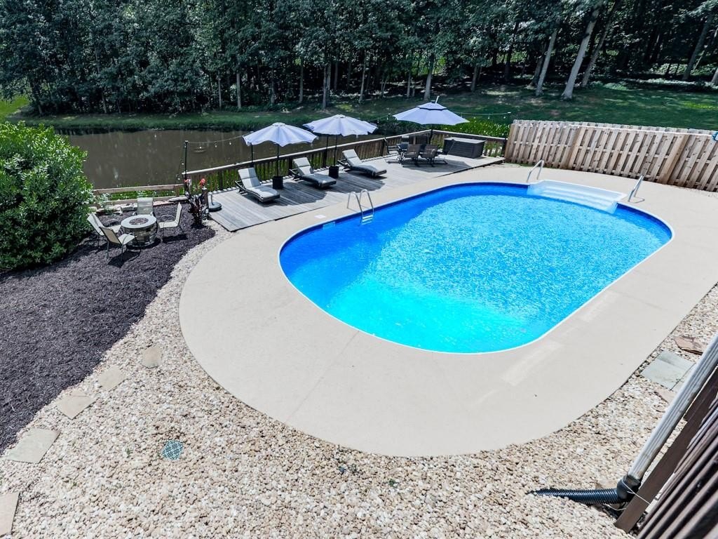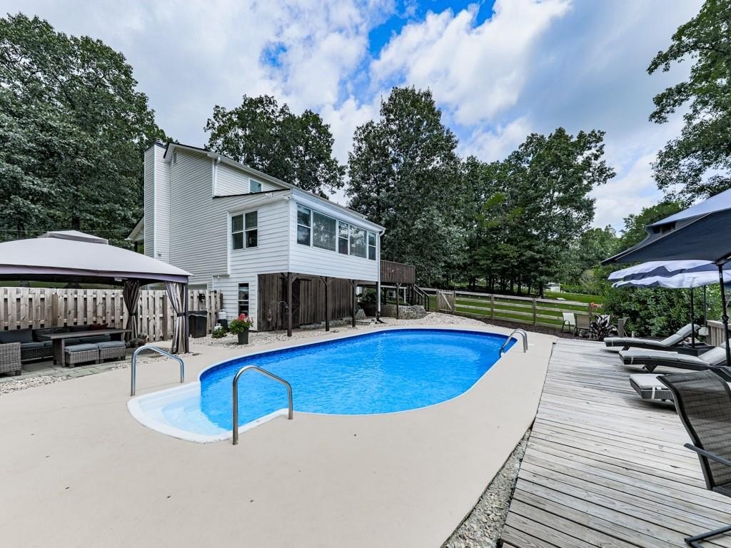 Exterior updates completed in 2020 include new windows, siding, garage doors, and an expansive deck. The pool liner was replaced in 2022, and the roof and water heater were both replaced just five years ago. HVAC was replaced in 2015, offering added peace of mind.