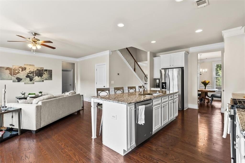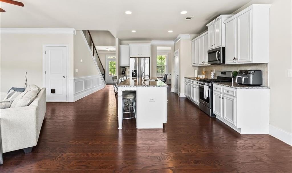 This picture perfect home is ready for you, come see it. So close to the new Holly Spring downtown under construction. Close to the heart of Woodstock and the Outlet Shopping. Easy access to I-575 and express lane. Additional 1,289 sq ft in the unfinished basement that is stubbed for a bathroom allows for your customized expansion. Guest bedroom and bath are located on the main. Large open kitchen with a beautiful island is open to the family room, perfect for entertaining and comfort.Hardwoods throughout main living area and primary bedroom.The spacious primary suite upstairs has tray ceilings, and primary bath offering a bath and shower,and spacious walk-in closet. A spacious laundry room with closet, and three additional good size bedrooms with closets are located upstairs, two of them with bathroom. Additional the garage is equipped a level 2 EV charger. Don't miss this one!