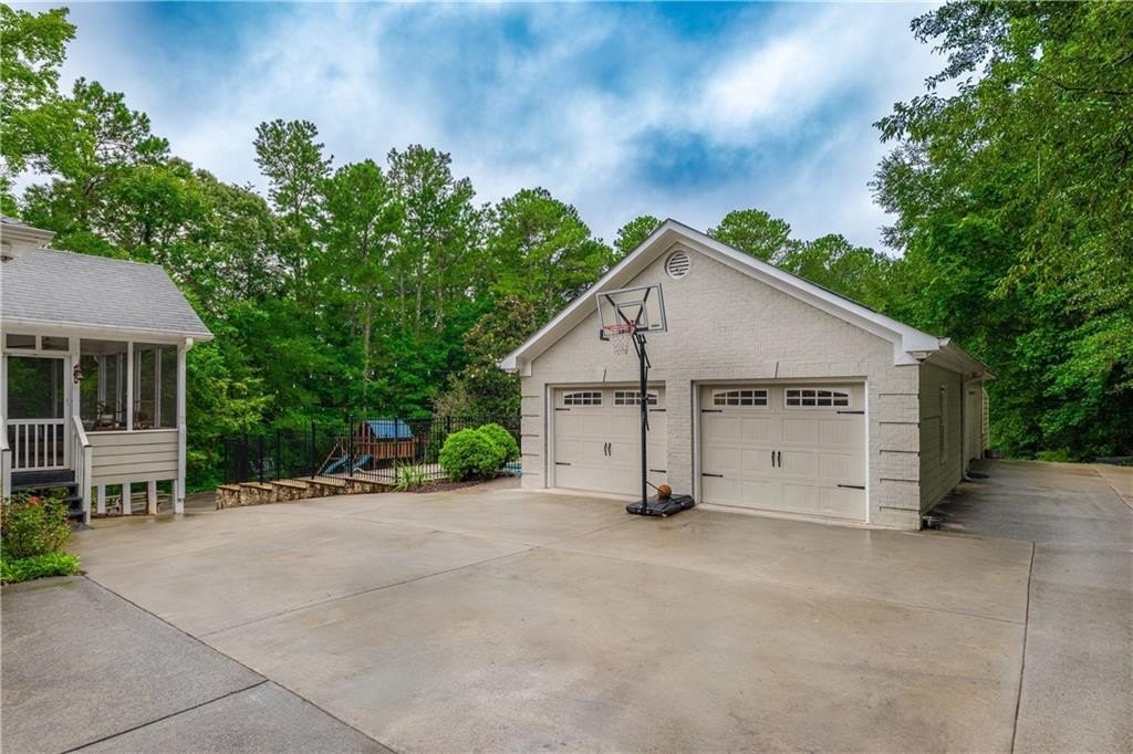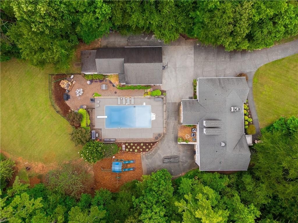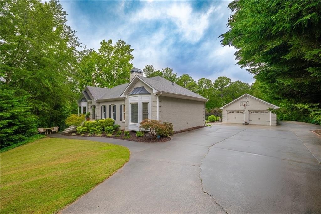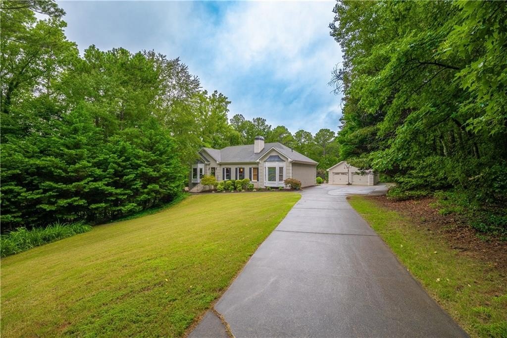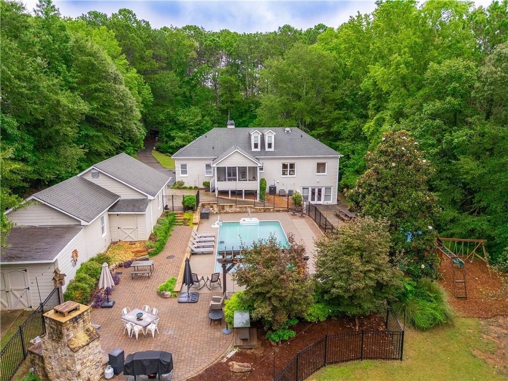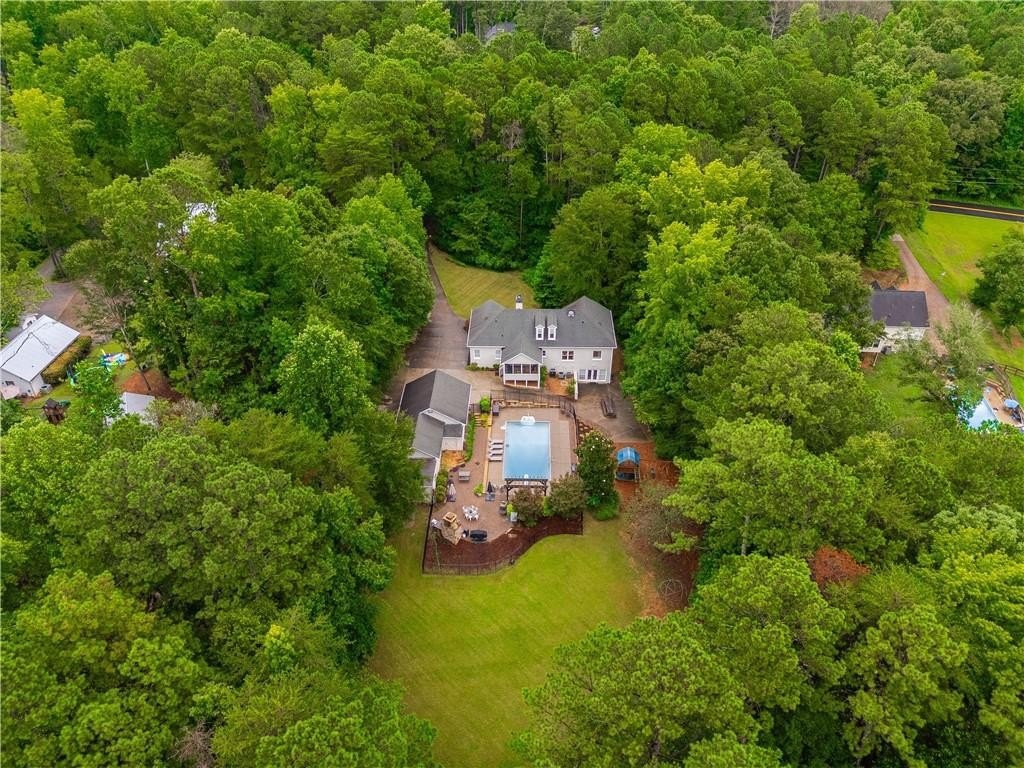 Welcome to 1514 Palm Street — a rare multigenerational home on 2 acres, just minutes from the heart of Holly Springs and Downtown Woodstock! This unique property delivers resort-style living with spacious in-ground pool, a custom stone poolside fireplace and multiple living spaces designed to perfectly accommodate for extended or guests. The main level features an inviting owner’s suite, along with two additional bedrooms. Light filled rooms and calming colors make the living spaces inviting and engaging. Spacious living room, dining room and kitchen, perfect for family gatherings. Enjoy quiet and peaceful moments on the screened porch off the kitchen. Upstairs, you’ll find a spacious bedroom with its own full bath, ideal for guests or teen suite. The finished terrace level offers its own separate entrance, parking, laundry, full kitchen, and living room. It also includes an expansive private suite with closets and full bath — perfect for extended stays or in-law accommodations. Outside, enjoy a large detached two-car garage with a workshop and extra storage space. All of this is located less than 1.5 miles from the Holly Springs Town Center, with shopping, dining, and community events at your fingertips! Beautifully positioned down a long and quiet driveway, you will feel tucked away, while being close to it all! Award winning school districts, and easy access to 575! This is a dream property and a wonderful home for generations to enjoy!