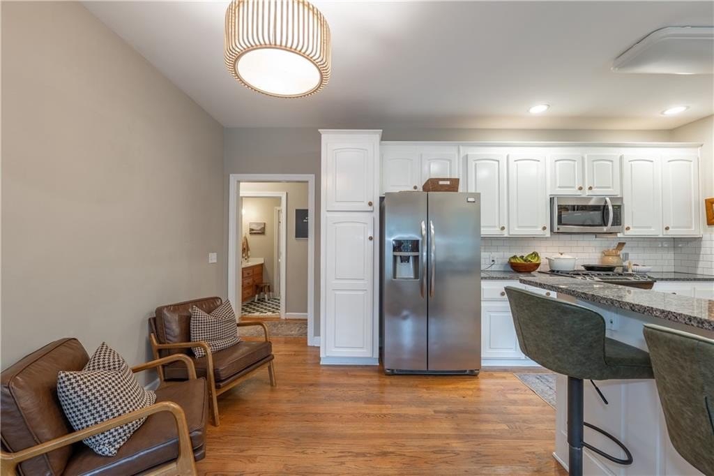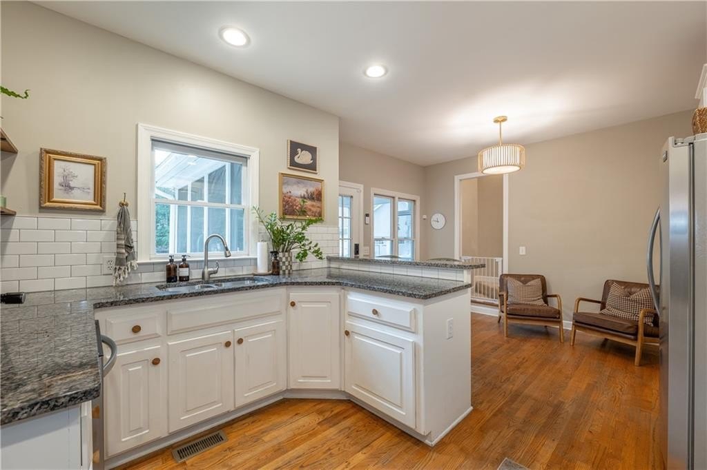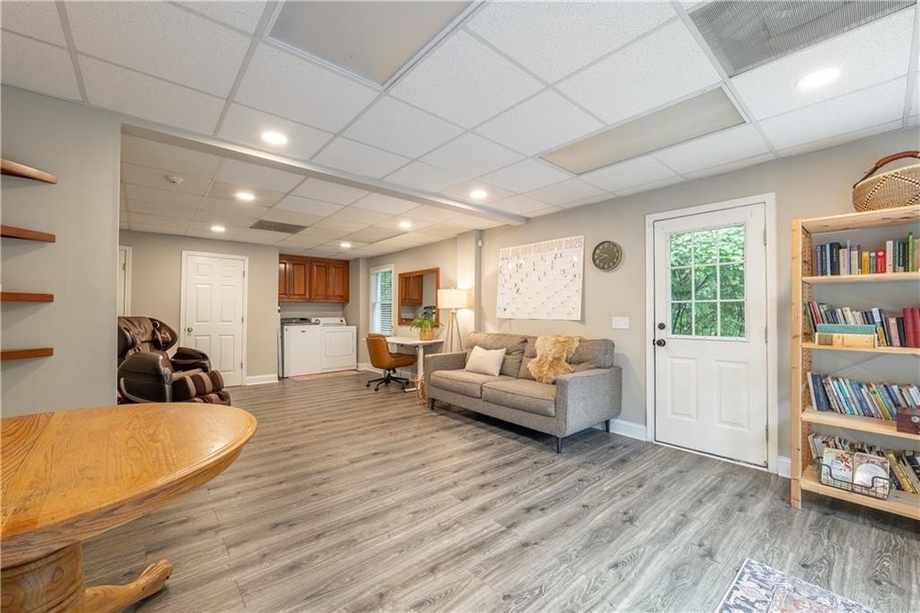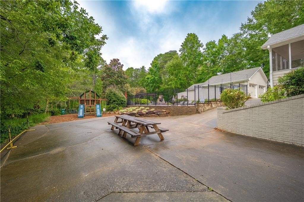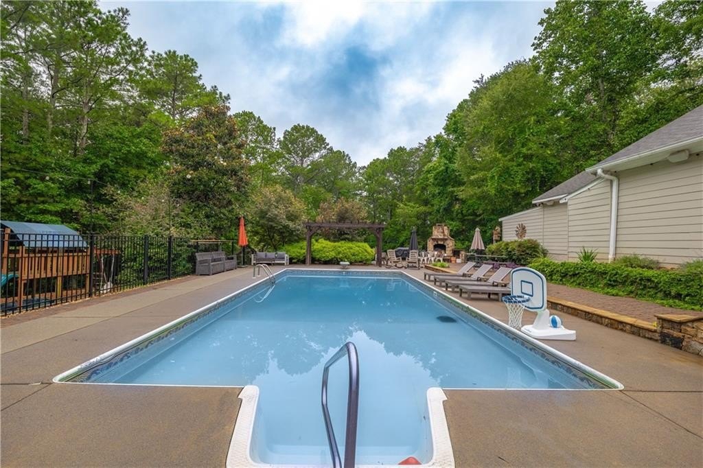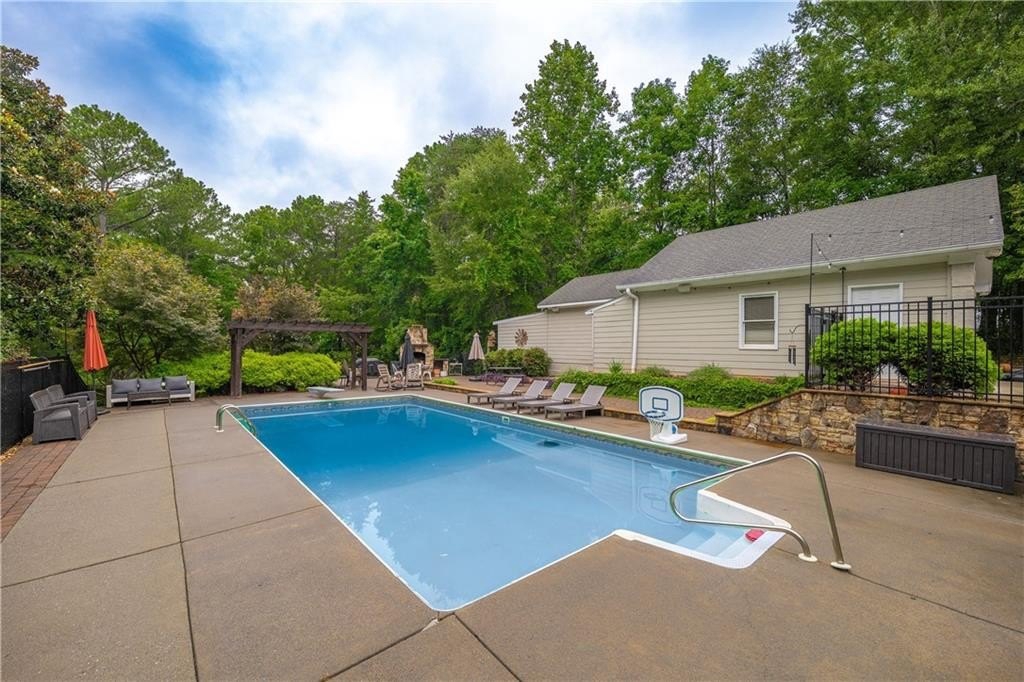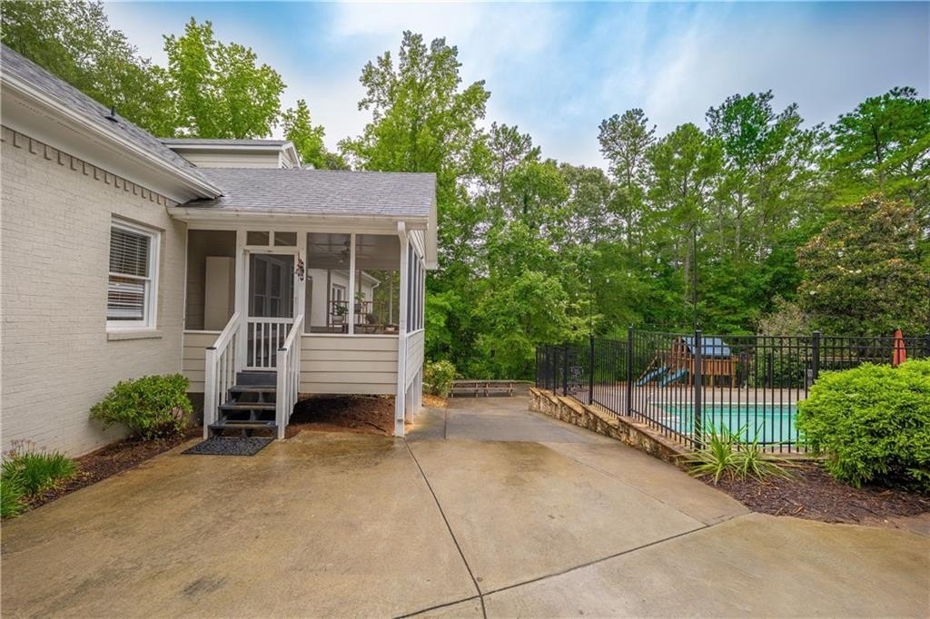 Welcome to 1514 Palm Street — a rare multigenerational home on 2 acres, just minutes from the heart of Holly Springs and Downtown Woodstock! This unique property delivers resort-style living with spacious in-ground pool, a custom stone poolside fireplace and multiple living spaces designed to perfectly accommodate for extended or guests. The main level features an inviting owner’s suite, along with two additional bedrooms. Light filled rooms and calming colors make the living spaces inviting and engaging. Spacious living room, dining room and kitchen, perfect for family gatherings. Enjoy quiet and peaceful moments on the screened porch off the kitchen. Upstairs, you’ll find a spacious bedroom with its own full bath, ideal for guests or teen suite. The finished terrace level offers its own separate entrance, parking, laundry, full kitchen, and living room. It also includes an expansive private suite with closets and full bath — perfect for extended stays or in-law accommodations. Outside, enjoy a large detached two-car garage with a workshop and extra storage space. All of this is located less than 1.5 miles from the Holly Springs Town Center, with shopping, dining, and community events at your fingertips! Beautifully positioned down a long and quiet driveway, you will feel tucked away, while being close to it all! Award winning school districts, and easy access to 575! This is a dream property and a wonderful home for generations to enjoy!
