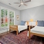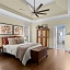 The oversized primary suite is a true retreat, tucked away for privacy, with tray ceilings, a spa-like bathroom with soaking tub, frameless glass shower, dual vanities, and a generous walk-in closet. Three additional bedrooms are thoughtfully laid out for optimal space and privacy—one even includes a cedar-lined closet.
