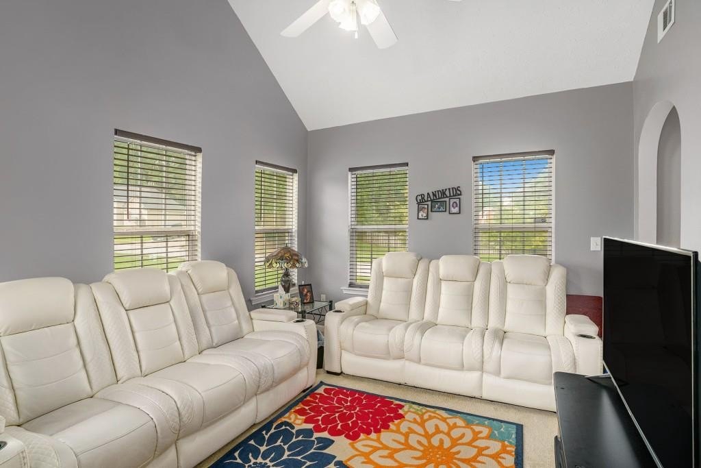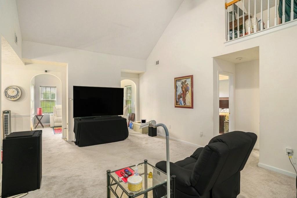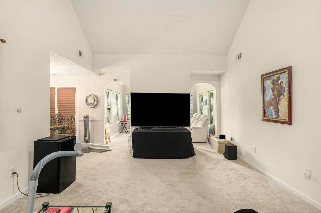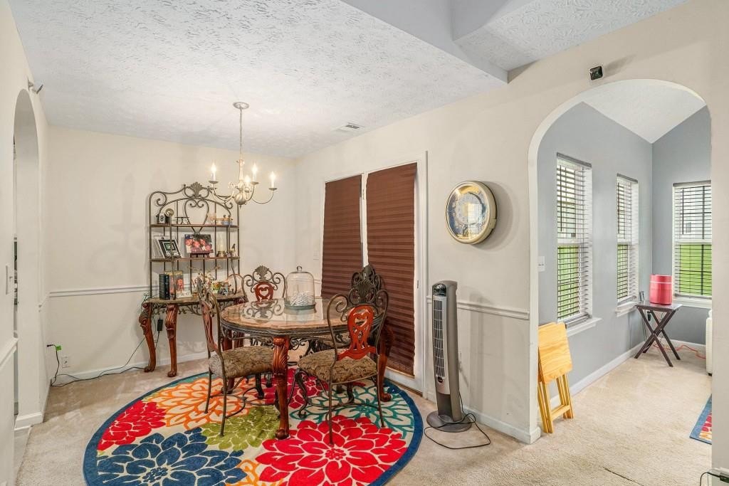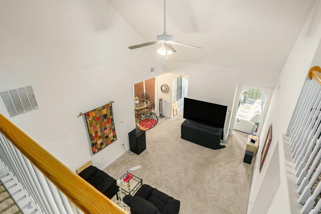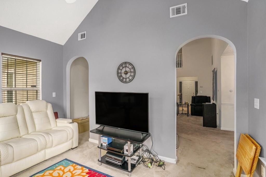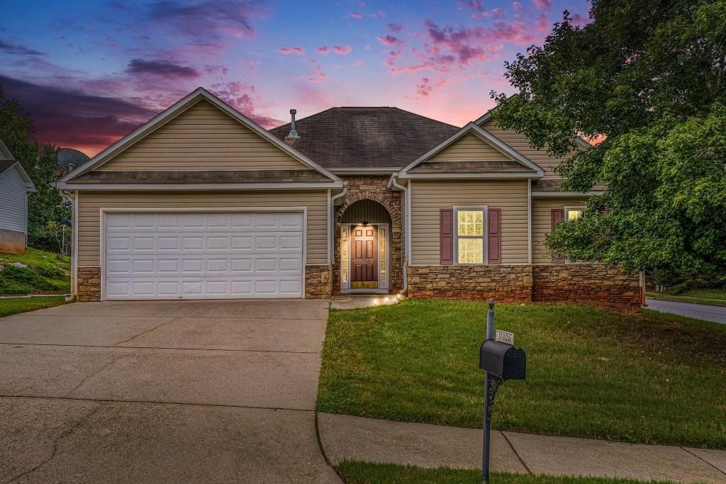ADORABLE RANCH HOME ON CORNER LOT! LOW MAINTENANCE VINYL SIDING WITH STONE ACCENTS! THE COVERED FRONT DOOR ENTRANCE LEADS YOU INTO THE FOYER WITH HARDWOOD FLOORS AND COAT CLOSET. UPON ENTERING, YOU IMMEDIATELY NOTICE THE HIGH CEILINGS IN THE FAMILY ROOM. THERE ARE 2 ARCHWAY OPENINGS CONNECTING THE FAMILY ROOM TO THE VAULTED SUNROOM OR DEN. FOR ENTERTAINING, THERE IS A SEPARATE DINING ROOM WITH CHAIR RAILING. THE KITCHEN IS LOCATED RIGHT OFF OF THE DINING ROOM FOR CONVENIENCE. THE KITCHEN HAS WHITE CABINETS, TILE FLOORS, BLACK APPLIANCES AND A PANTRY. ALL THE APPLIANCES INCLUDING THE WASHER AND DRYER WILL REMAIN WITH THE HOME. THERE IS A LAUNDRY CLOSET IN THE HALLWAY FROM THE KITCHEN TO THE GARAGE. IN THAT SAME HALLWAY, YOU WILL FIND A BACK STAIRWAY THAT LEADS YOU TO A LOFT THAT OVERLOOKS THE FAMILY ROOM. THE LOFT IS A PERFECT SPOT FOR AN OFFICE, MOVIE ROOM OR PLAYROOM. BACK ON THE MAIN LEVEL OFF THE FAMILY ROOM, IS THE MASTER SUITE. IT FEATURES A TREY CEILING WITH CROWN MOLDING AND A WALK-IN CLOSET. THE MASTER BATHROOM HAS A LARGE VANITY, SEPARATE SHOWER & A GARDEN TUB. THERE ARE TWO SPACIOUS SECONDARY BEDROOMS THAT SHARE A HALL BATHROOM FOR GUESTS. OUTSIDE IS A GREAT SIZE PATIO FOR GRILLING OUT WITH FRIENDS AND FAMILY. FOR CONVENIENCE, THERE IS AN ATTACHED 2 CAR GARAGE WITH AUTOMATIC OPENERS. SCHEDULE A SHOWING TODAY! THIS HOME WILL NOT LAST LONG AT THIS PRICE!