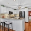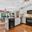 Inside, a tile-lined foyer opens into a spacious living room that flows effortlessly into the formal dining room, ideal for holiday gatherings. Gorgeous hardwood floors guide you into a timeless kitchen with white cabinetry, granite countertops, and a stone-accent backsplash. The adjoining breakfast nook keeps weekday mornings running smoothly.